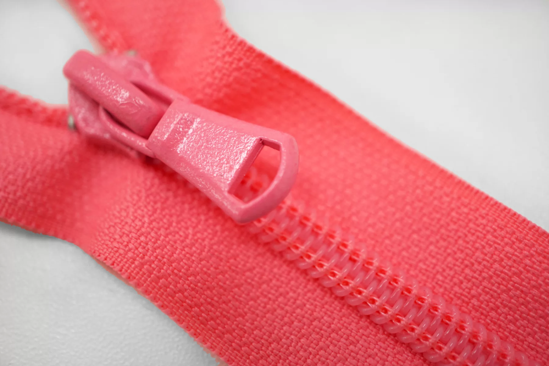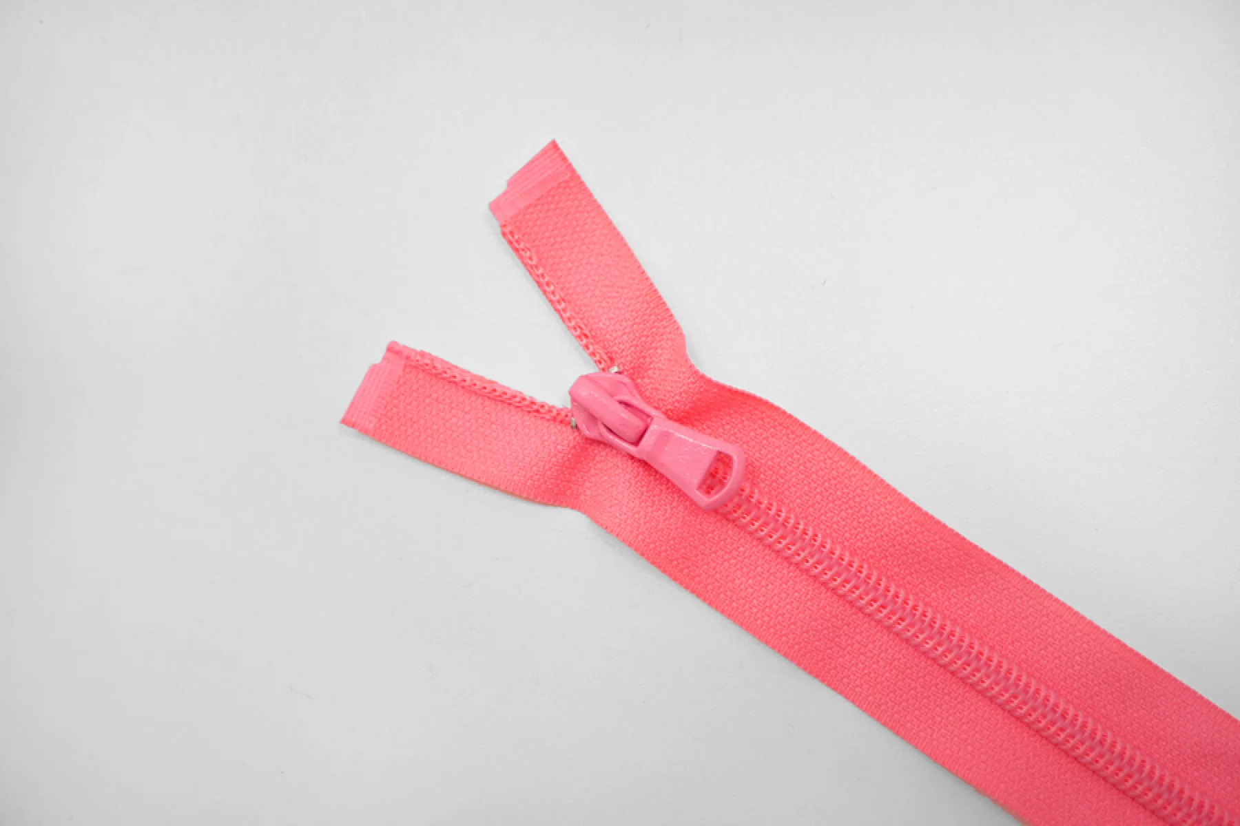 Молния спиральная разъёмная, однозамковая, неоново-розового цвета от UZ. Длина 55 см.