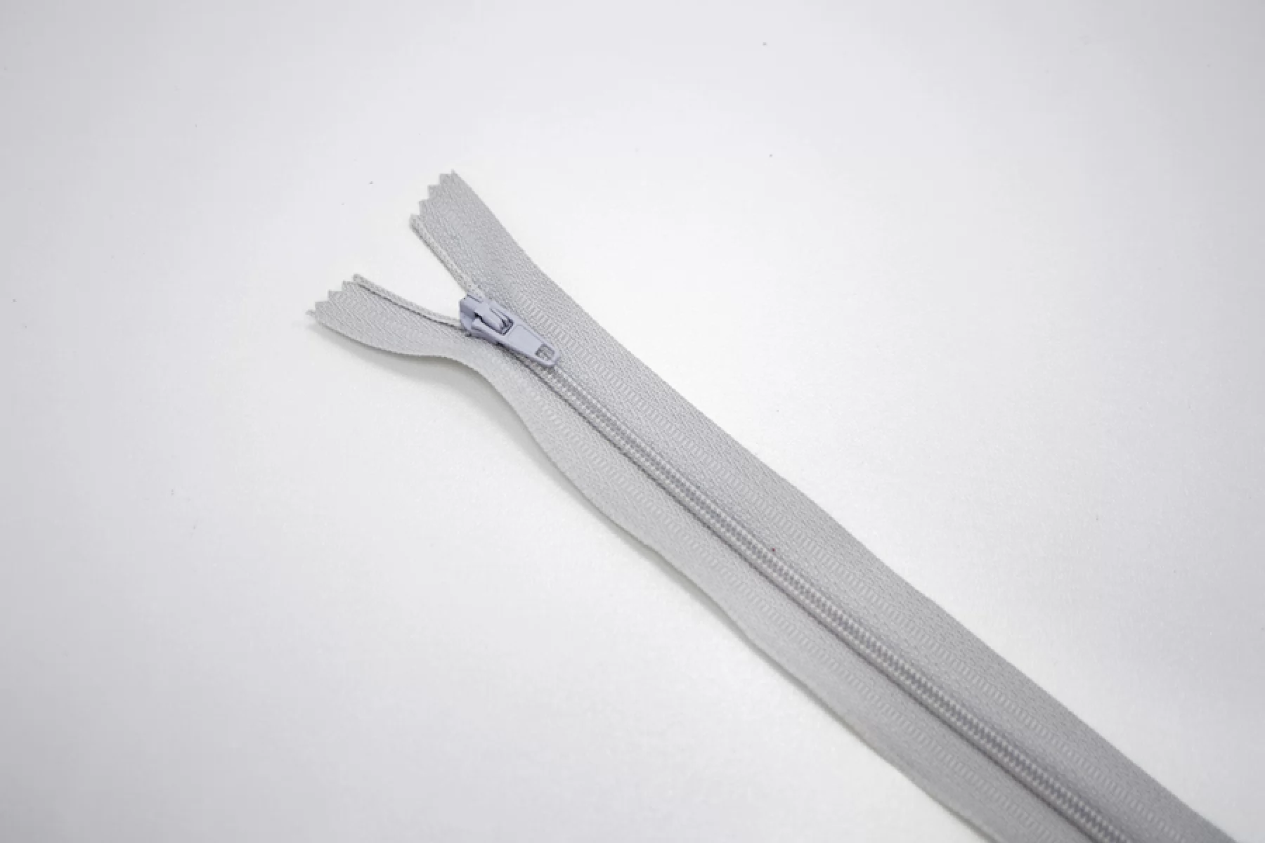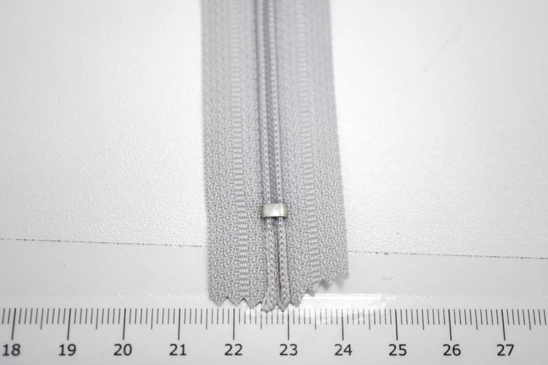 Молния спиральная однозамковая, неразъёмная, серовато-серого цвета. Длина 47 см.