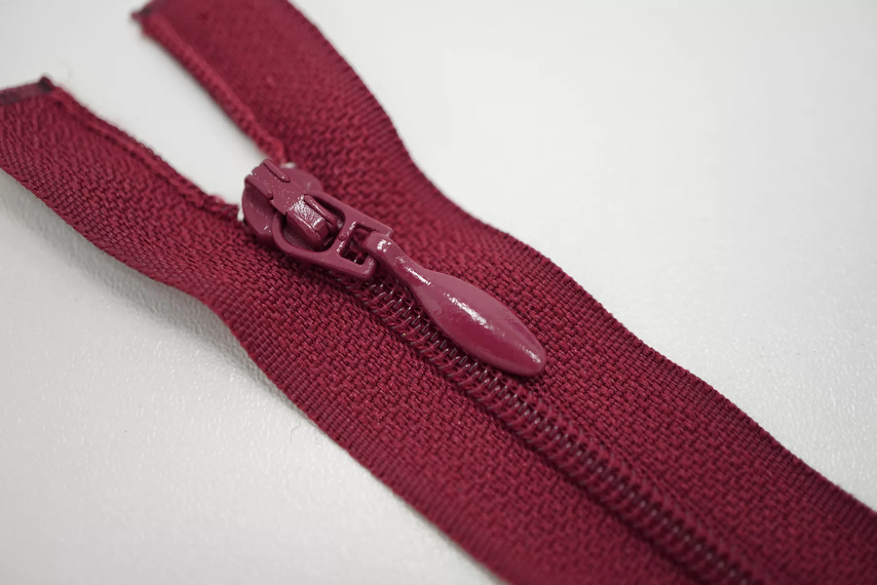 Молния спиральная однозамковая, разъёмная, цвета темных ягод. Длина 49 см.