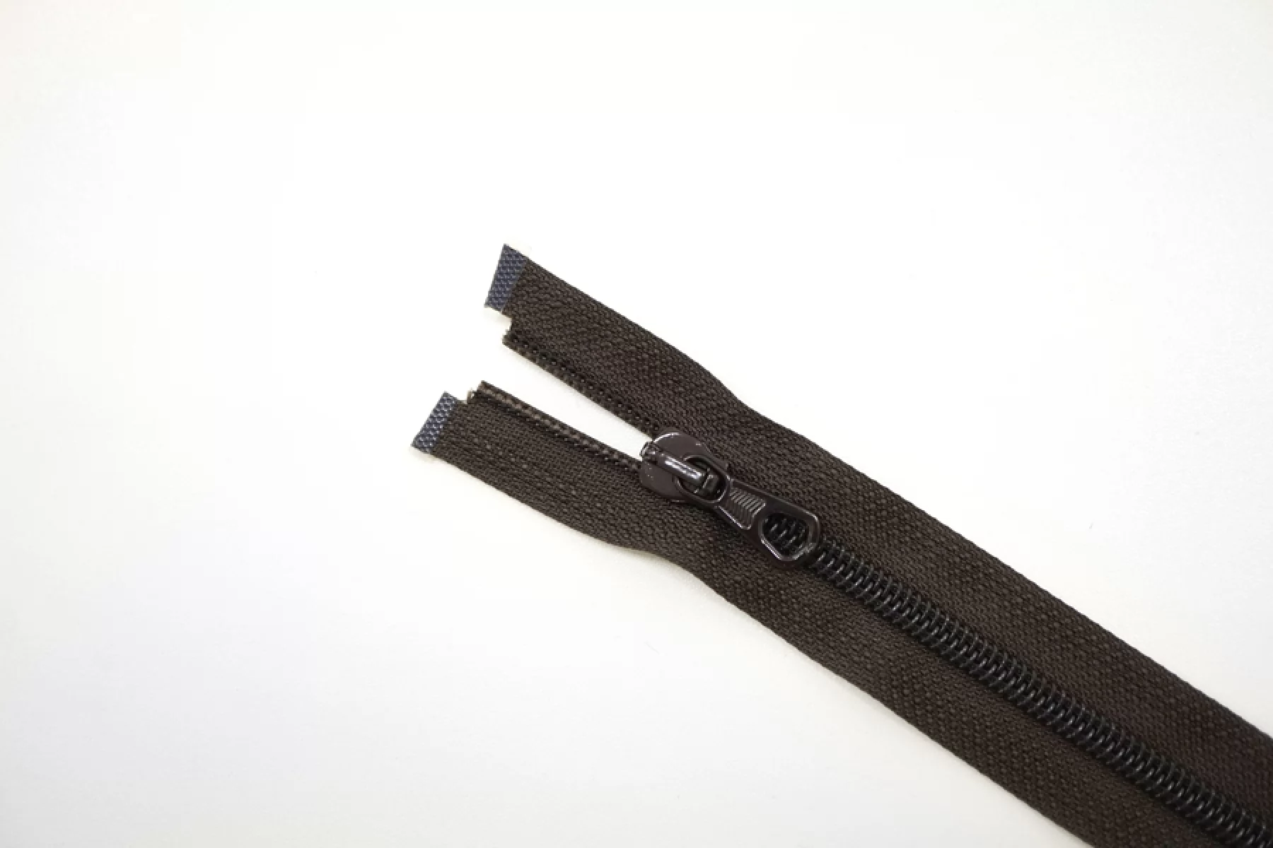 Молния спиральная разъёмная, однозамковая, очень темного коричневого цвета от Lampo. Длина 56 см.