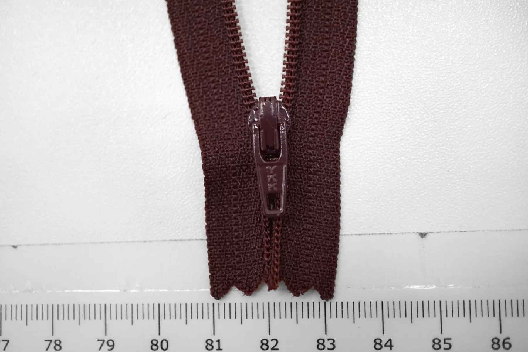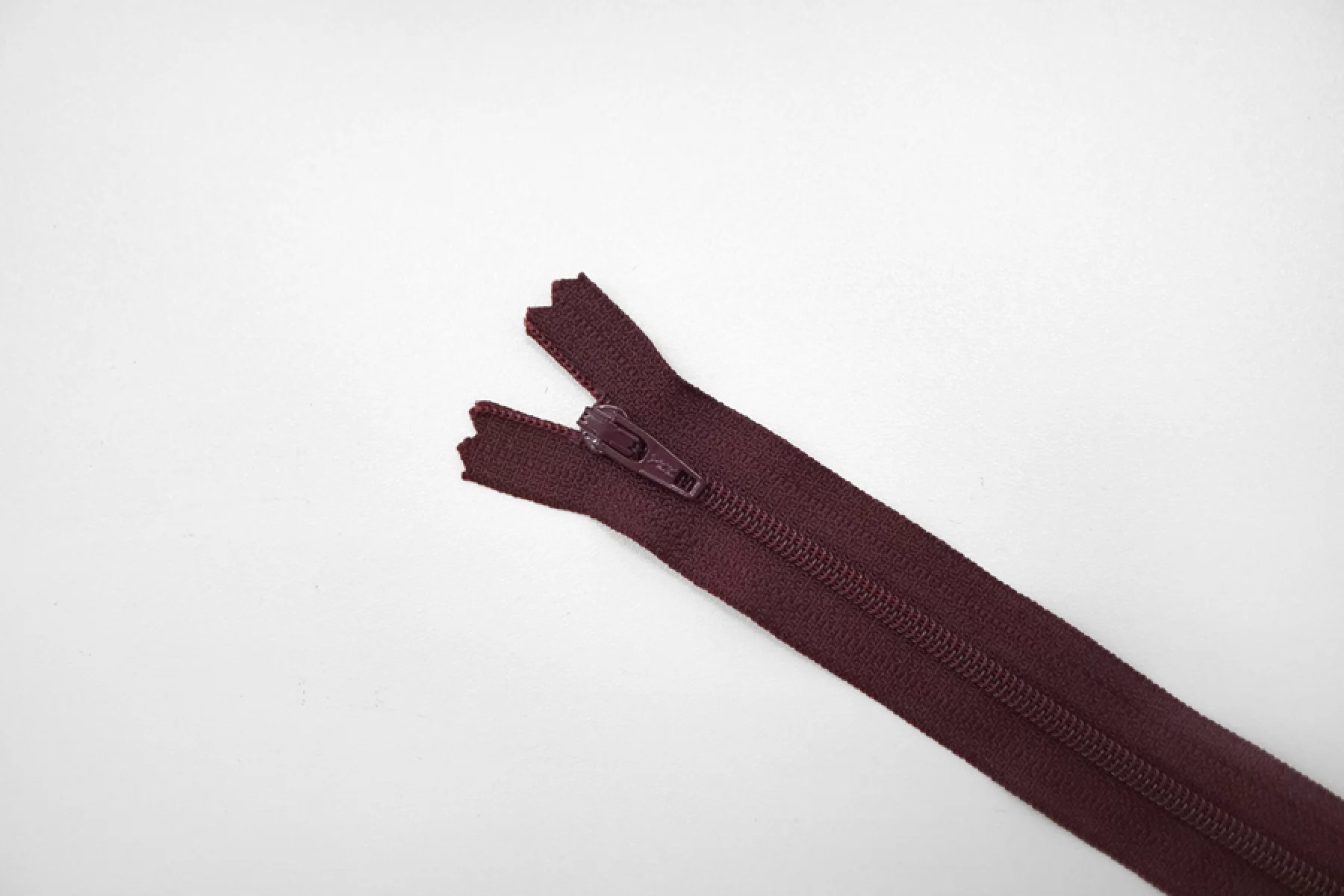 Молния брючная спиральная неразъёмная, однозамковая, темно-винного цвета, от YKK. Длина 34.5 см.