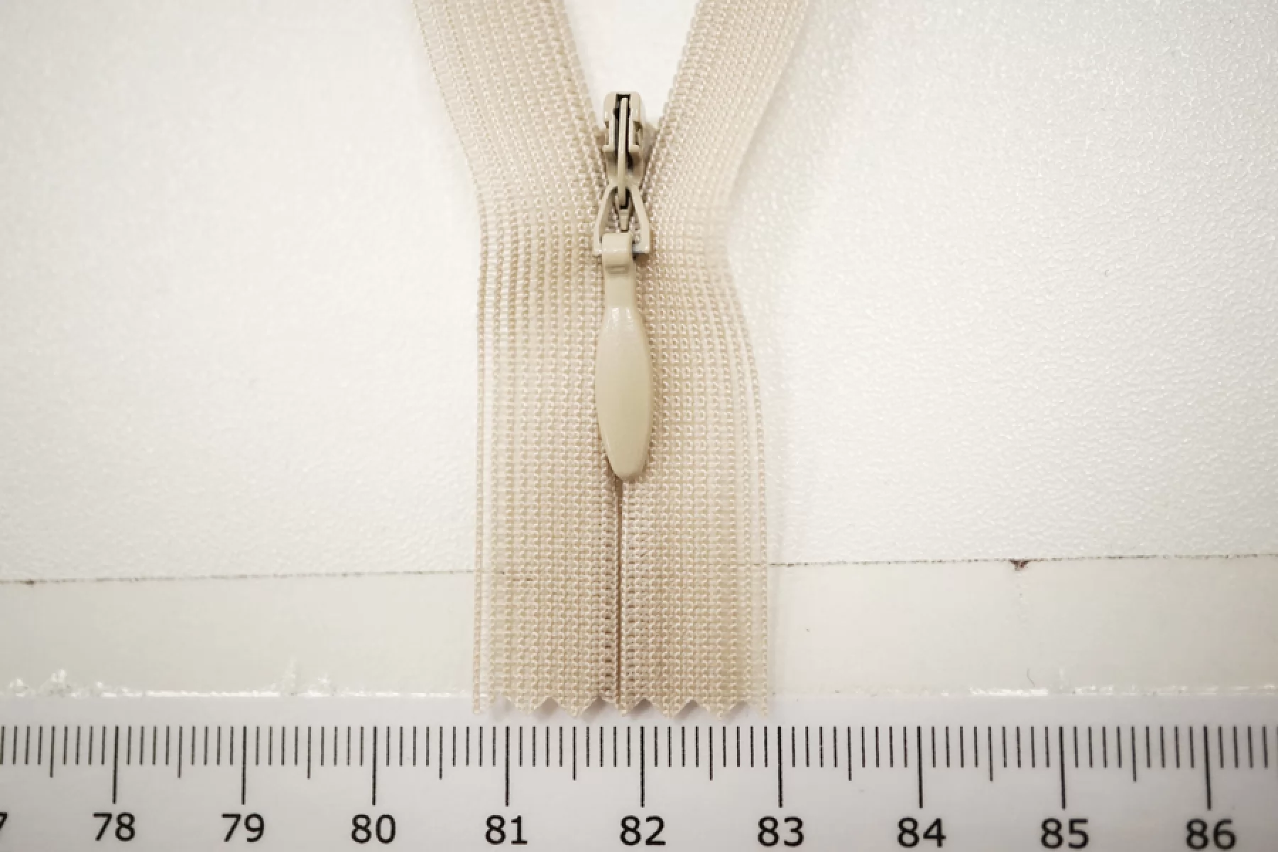 Потайная молния светлого серо-бежевого цвета от YKK, длина 10 см.
