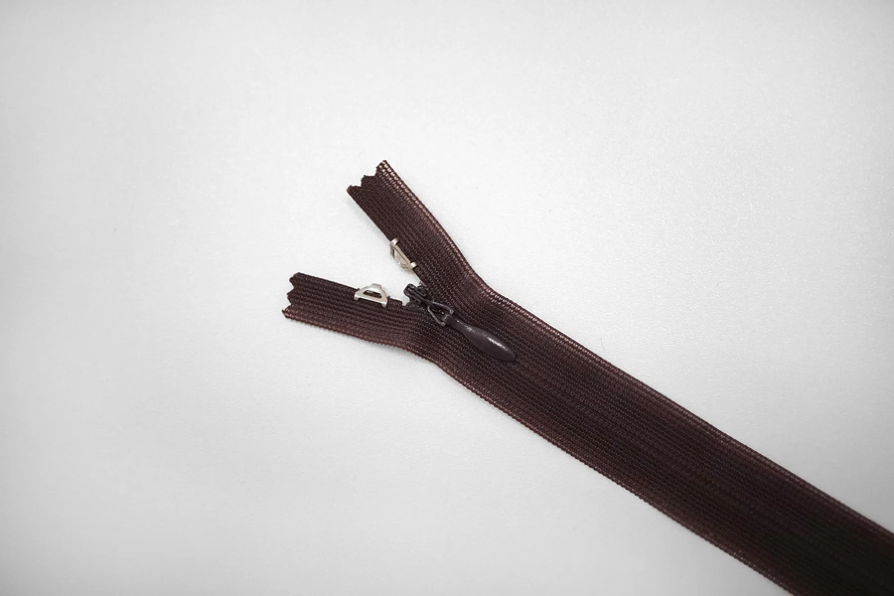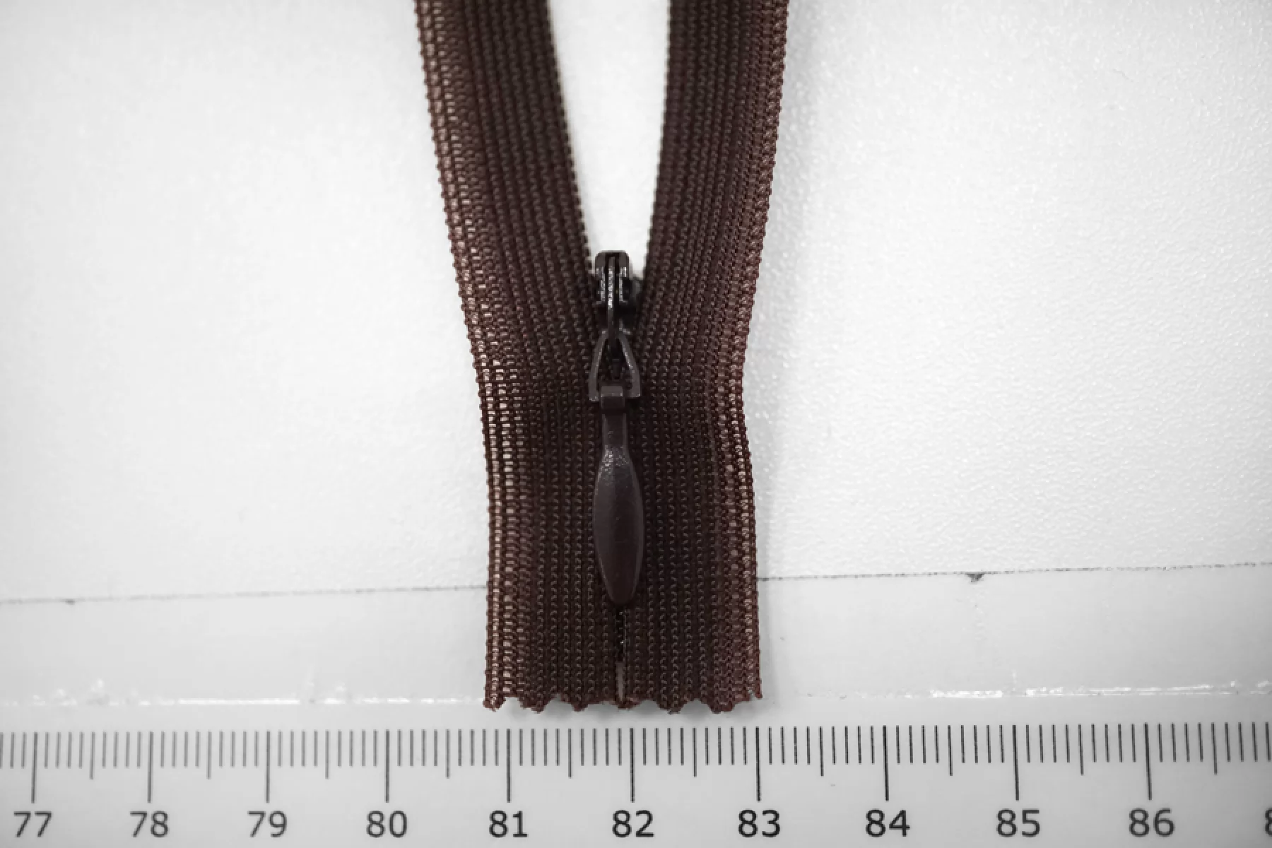 Потайная молния темно-коричневая цвета от YKK, длина 18 см. Есть дополнительный фиксатор-замочек сверху.