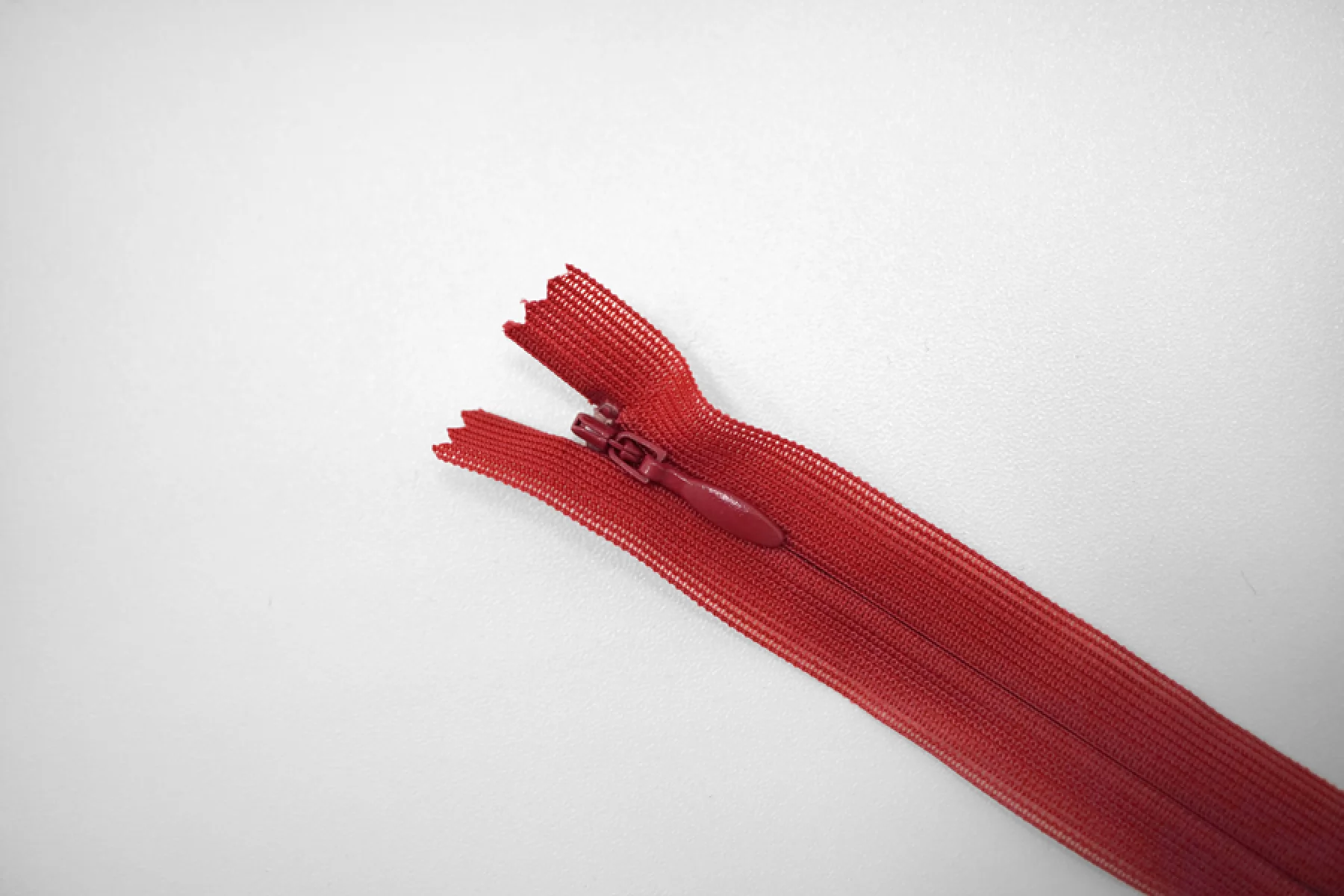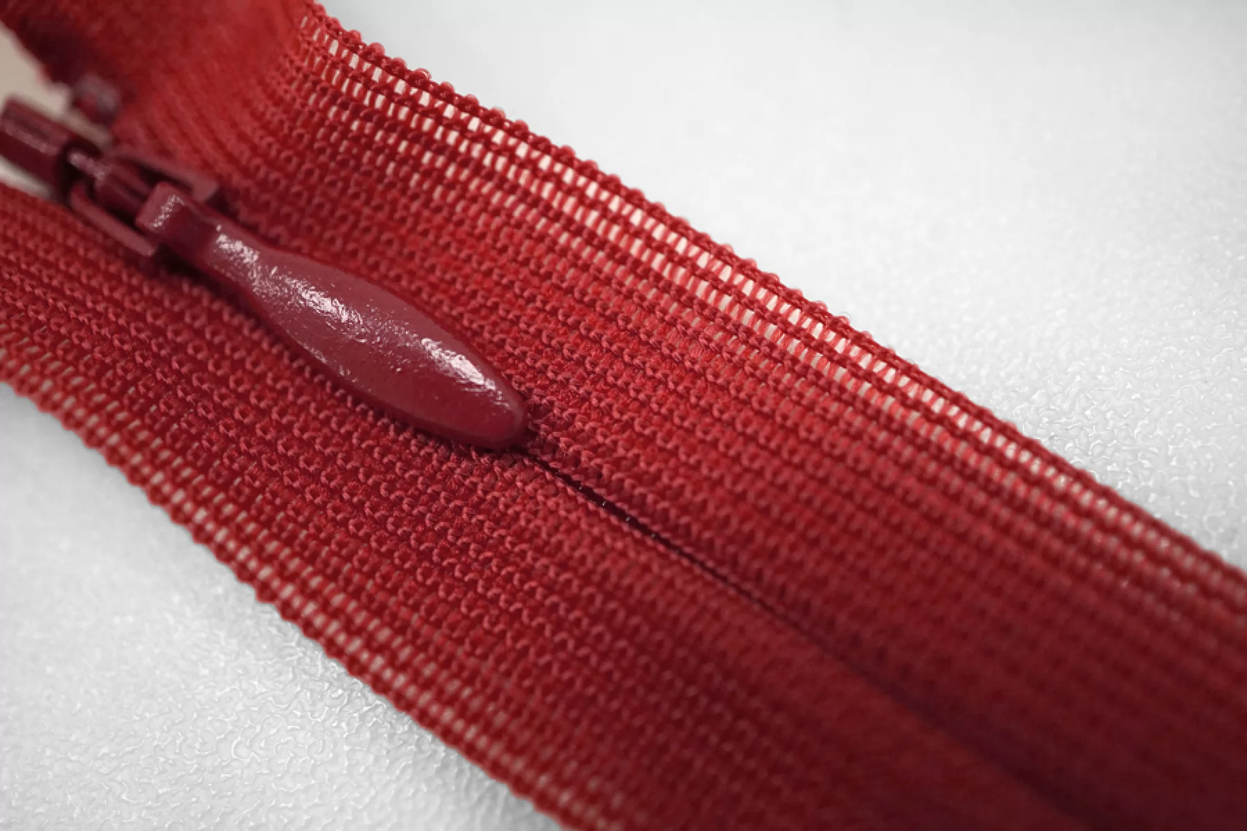 Потайная молния темно-красная цвета от YKK, длина 10 см.