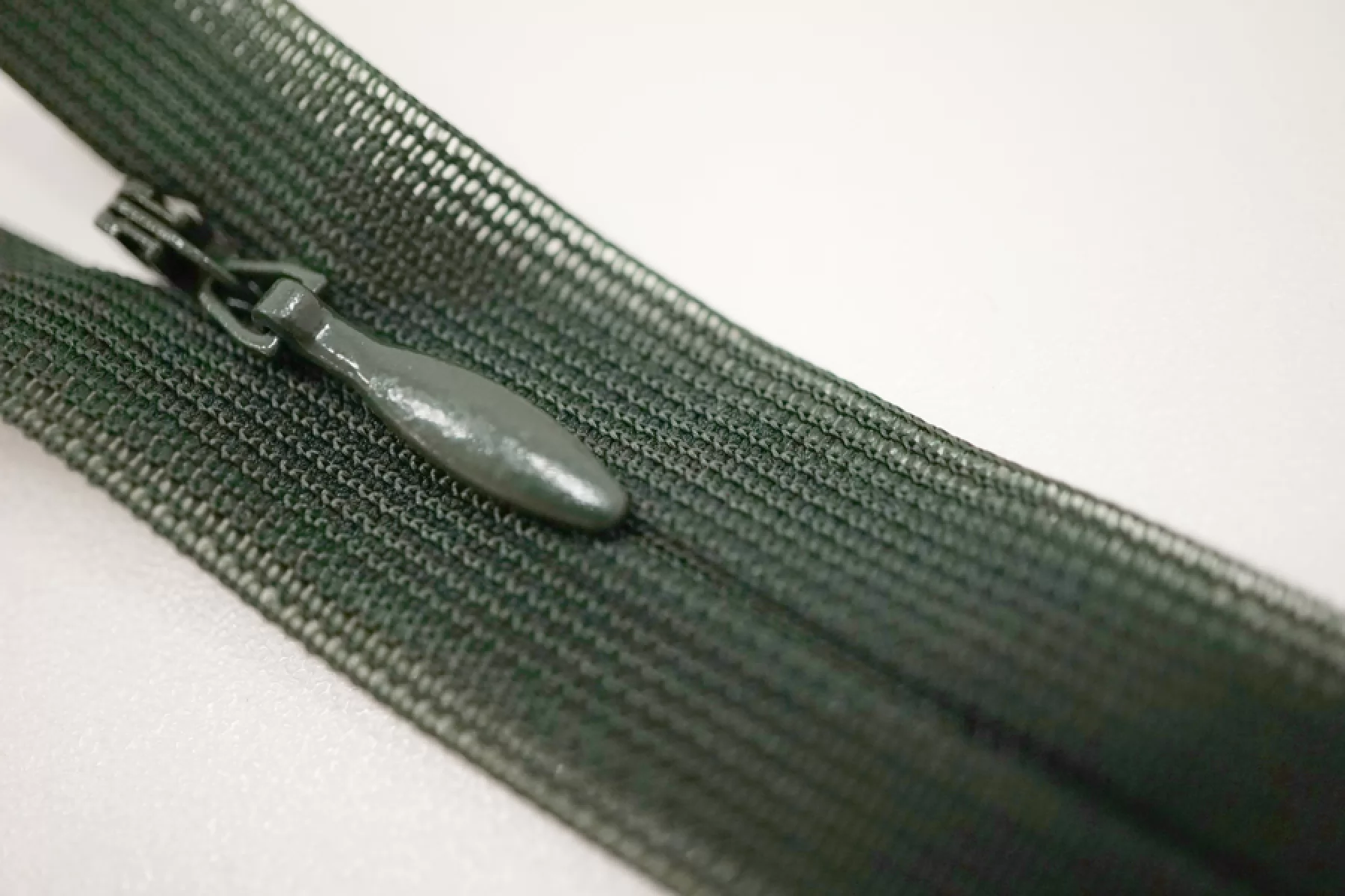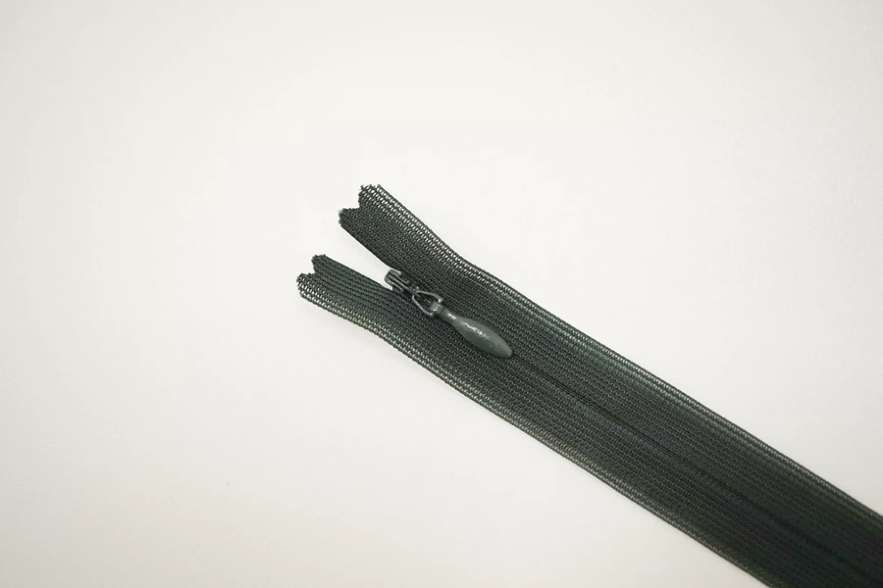 Потайная молния темно-зеленого цвета от YKK, длина 35 см.