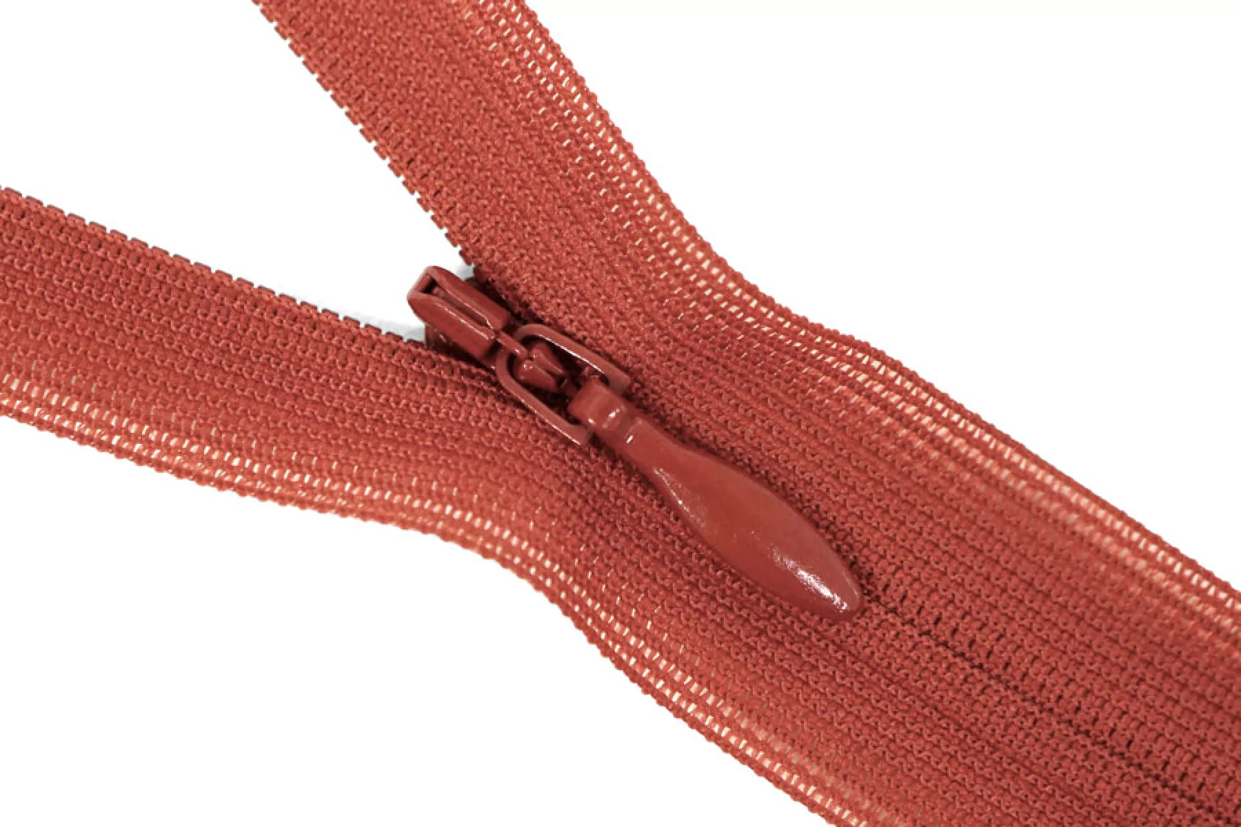 Потайная молния терракотового цвета от YKK, длина 64 см. Слайдер и пулер метал. в цвет молнии. Ширина молнии 2,3 см.