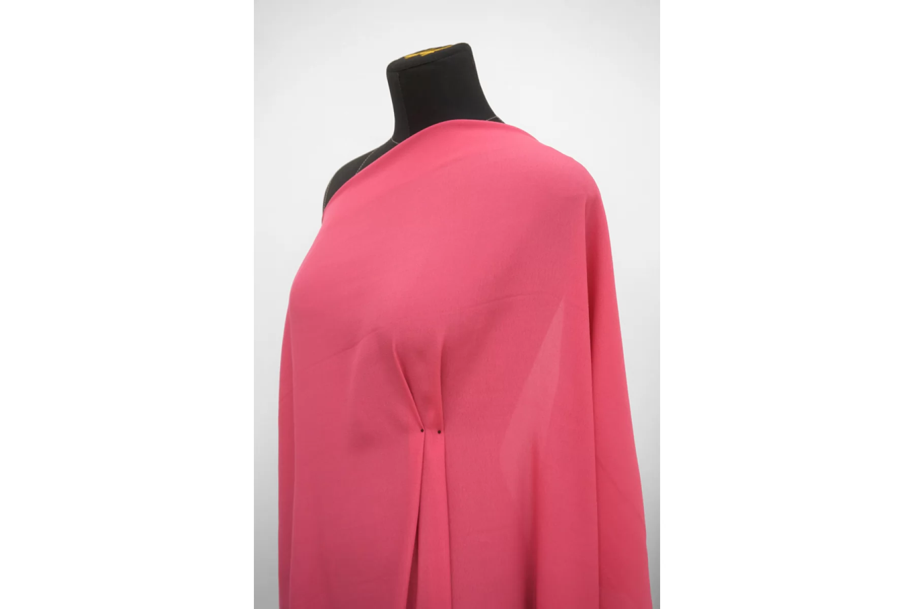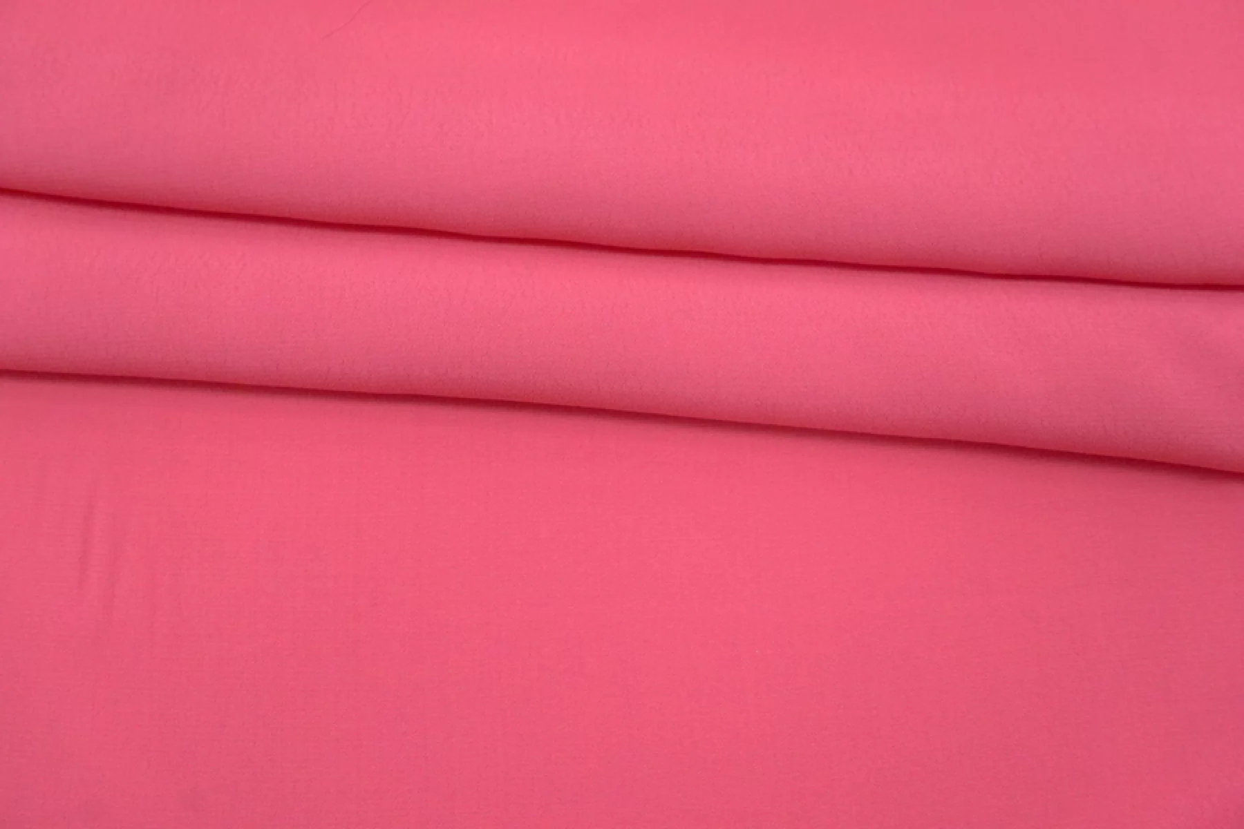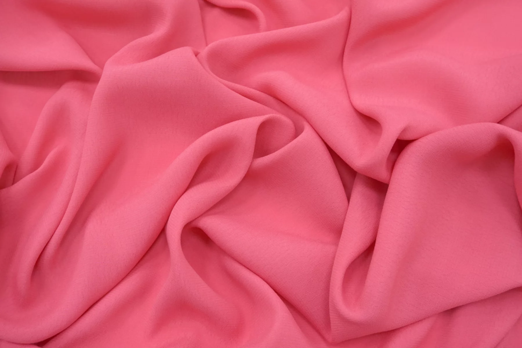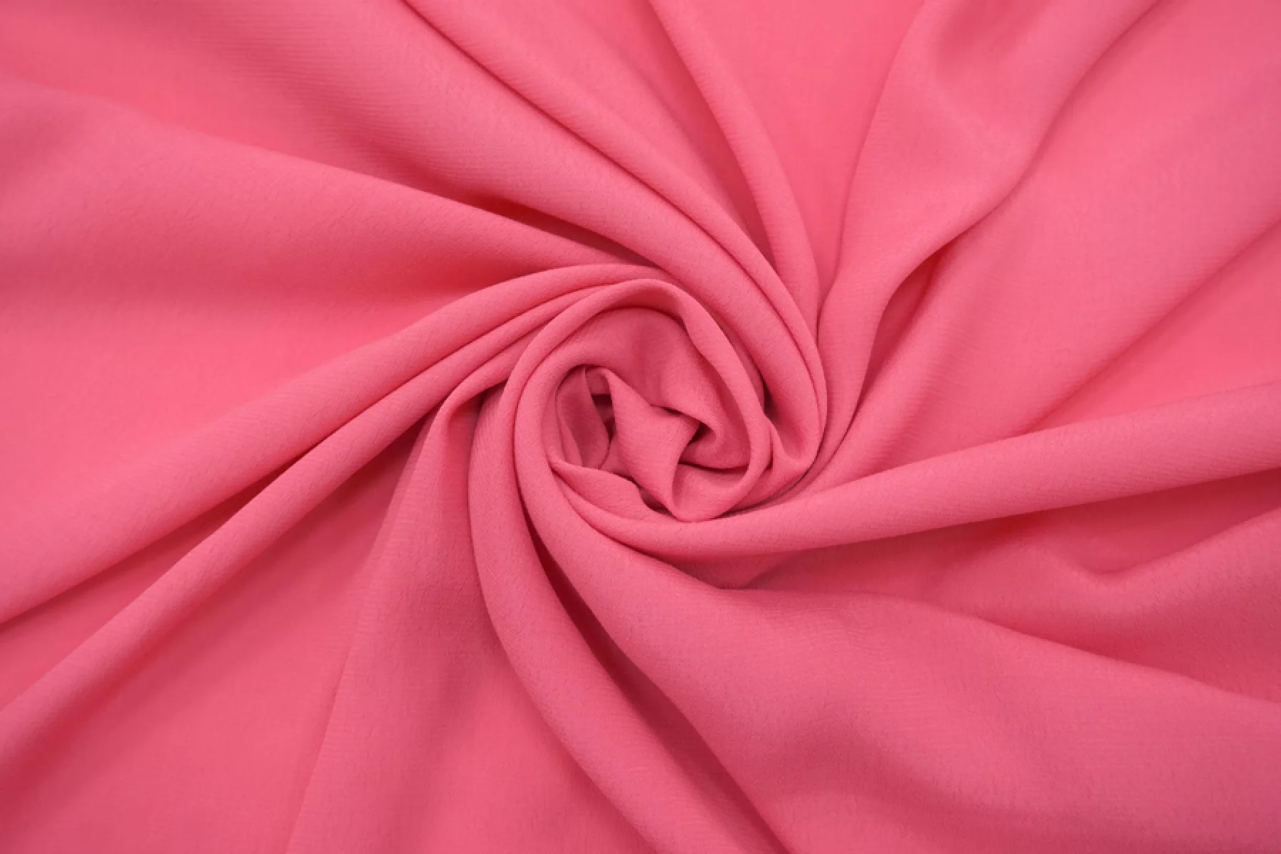 Плательная вискоза с креповой, мраморной поверхностью, слегка жатой. Цвет розовый. Шероховатый материал, струящийся, немного тянется. Подойдет для пошива платья, топа, блузки, юбки. Тонкий, пластичный, немного просвечивает (для юбки или платья советуем подклад, если это не юбка с множеством складочек:). При работе с этой тканью советуем использовать тонкие иглы и нитки.