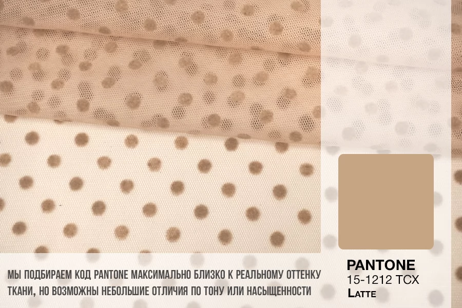 Мягкая итальянская сетка бежевого цвета в горошек. Тонкая, пластичная, тянется, приятная тактильно. Хорошо подойдет для пошива и декора одежды и белья.