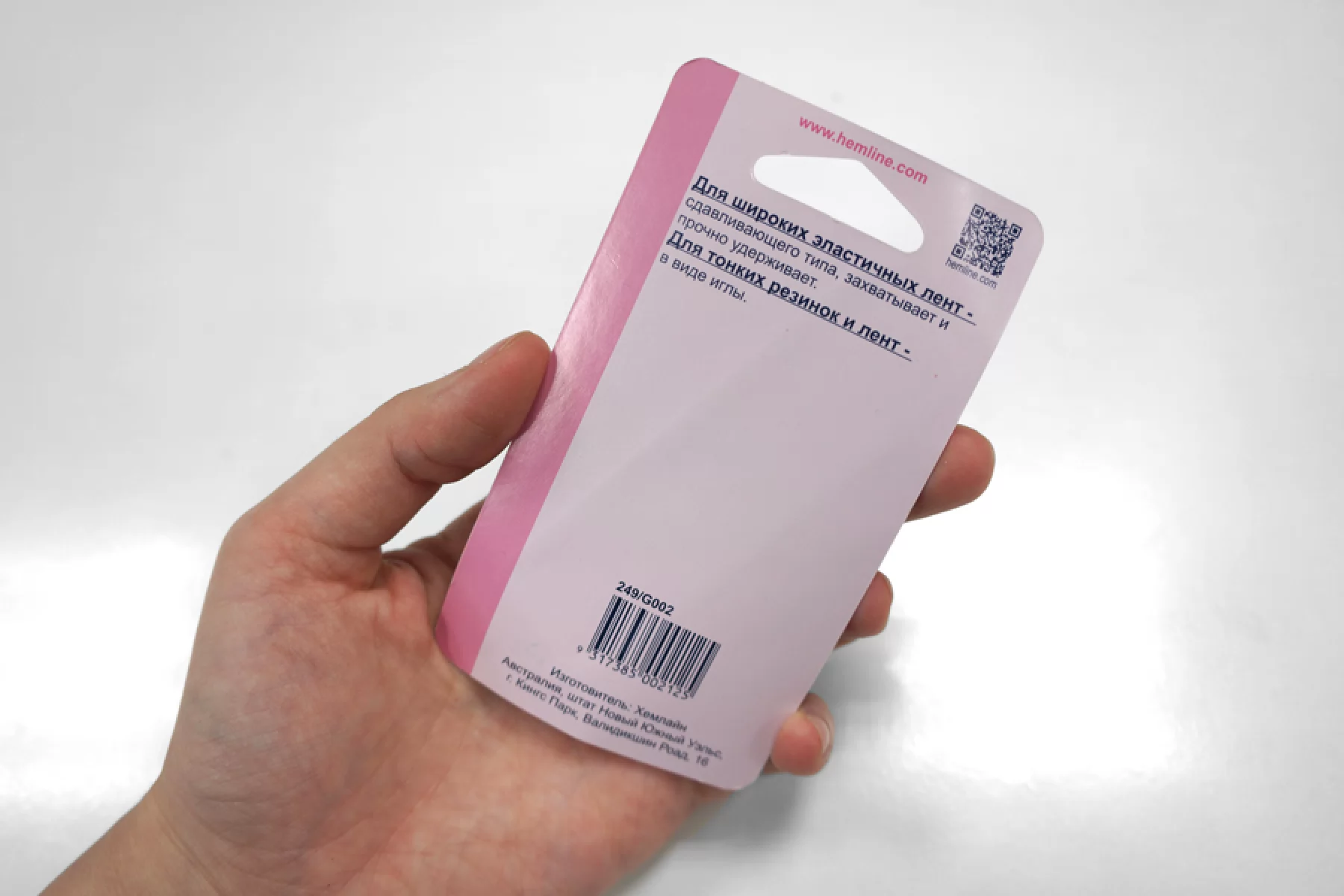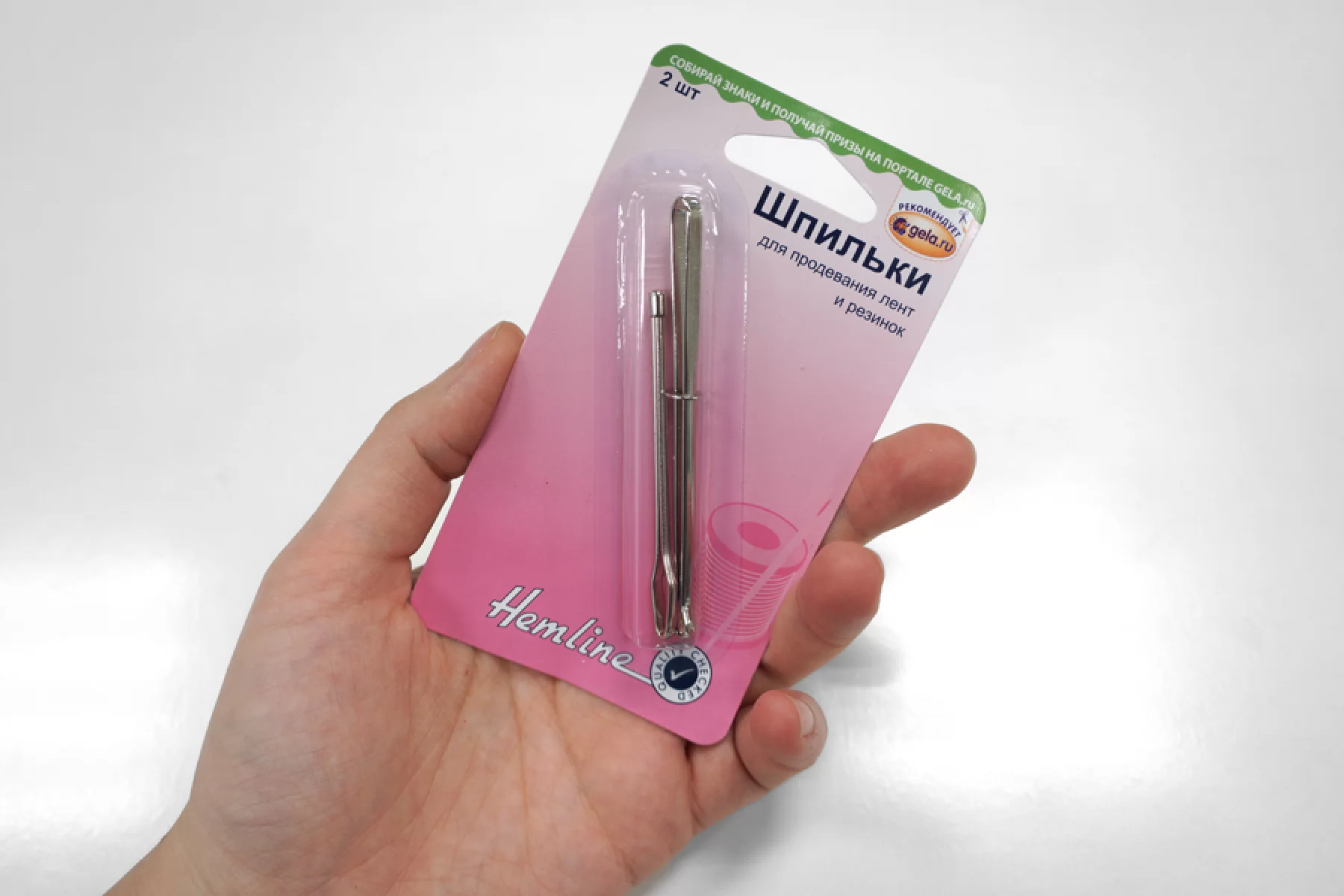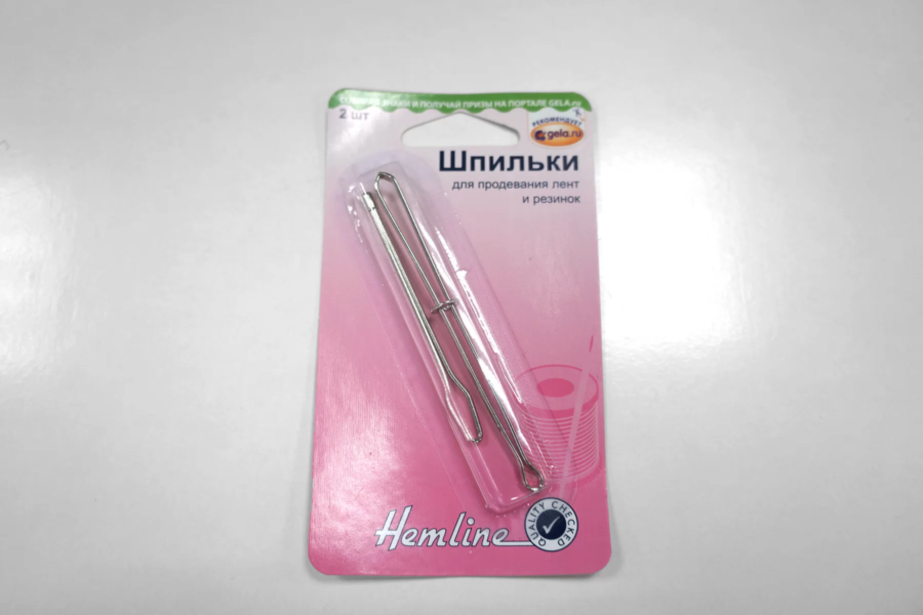 Сдавливающая шпилька предназначена для захватывания эластичной ленты, прочно удерживает ее. Шпилька в виде иглы удобна для продевания лент, резинок и многого другого.