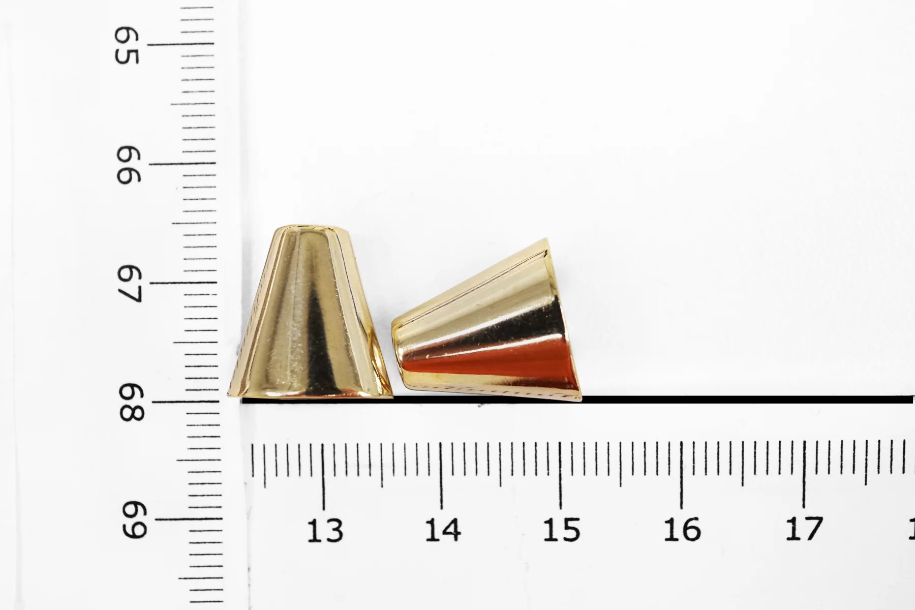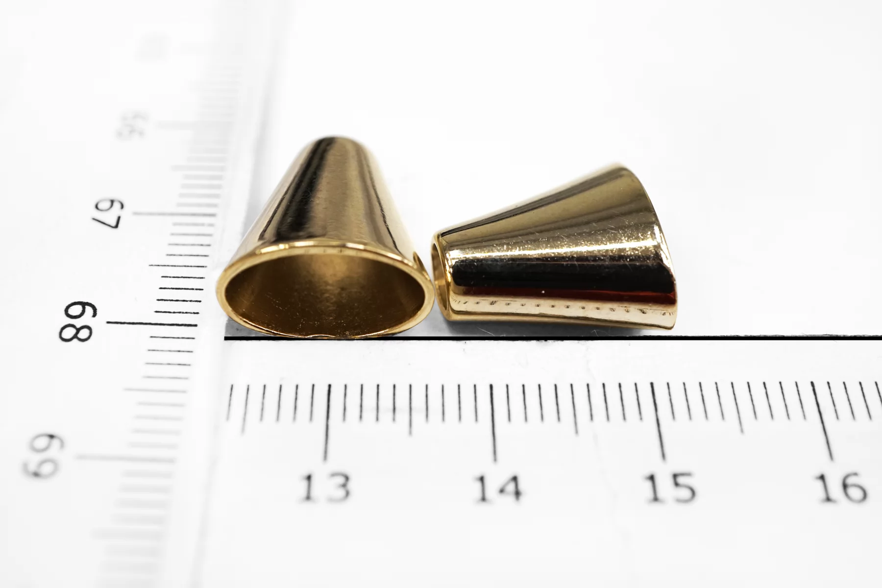 Наконечник металлический для шнурка, золотистого цвета . Диаметр узкой стороны 6мм , длина 14 мм.
