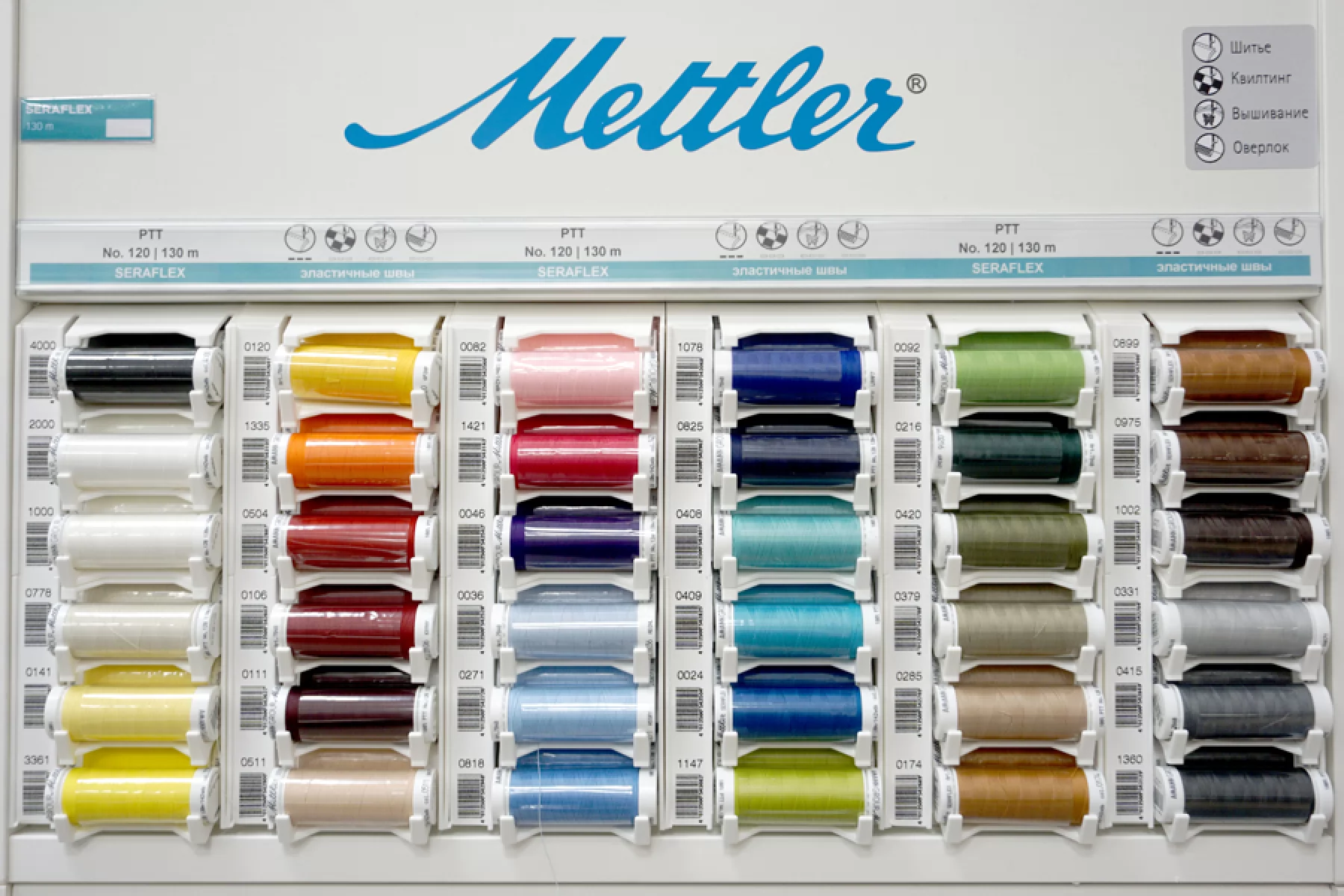 Нитки для эластичных тканей в ассортименте 130 метров Mettler Seraflex 120 1723