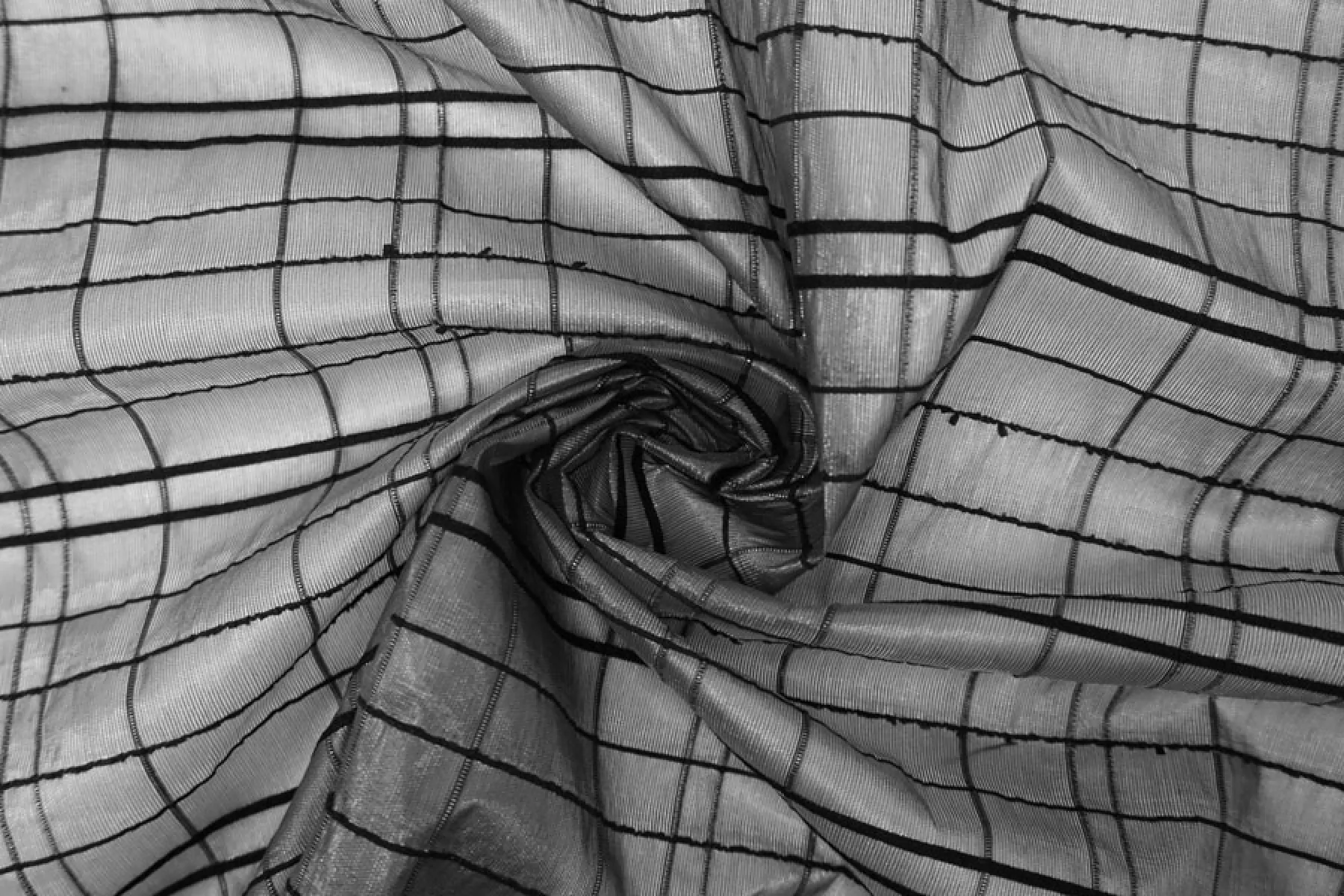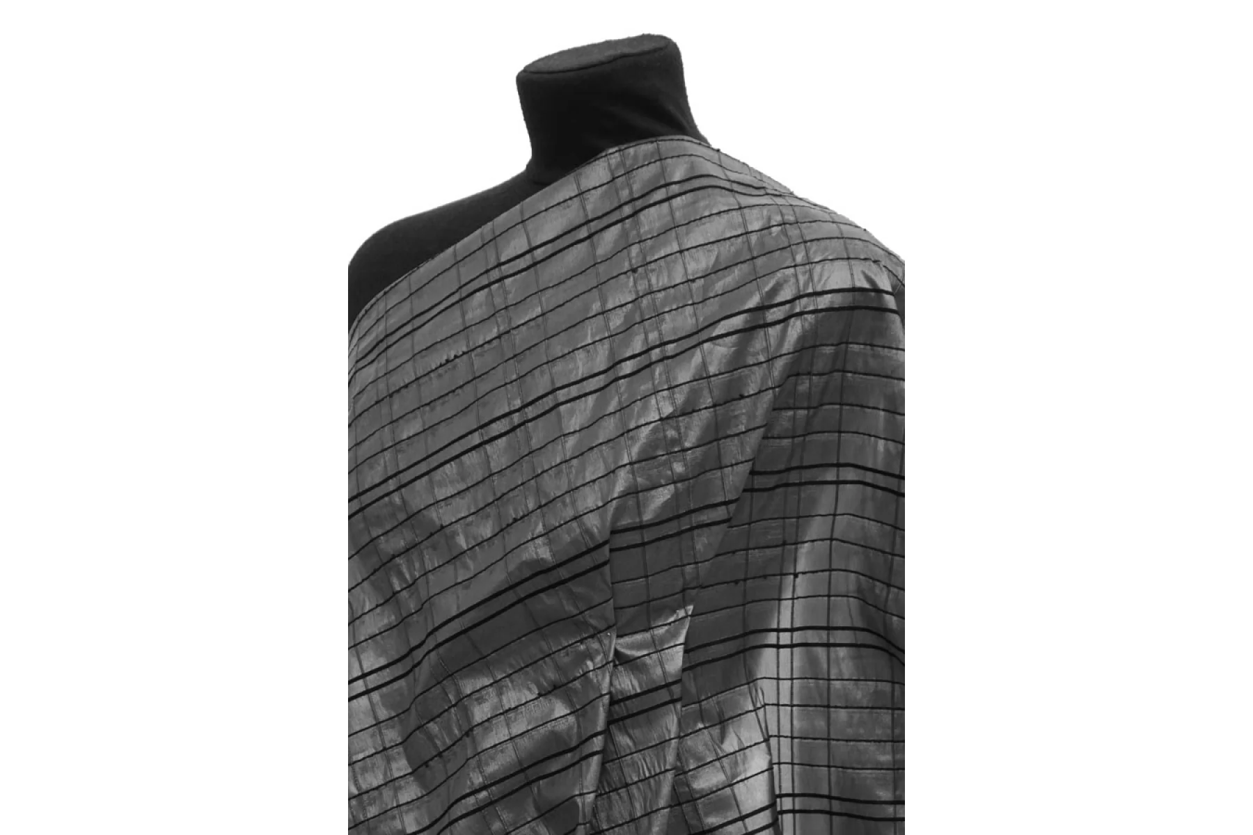 Чудесная дизайнерская органаза от DIOR в сером оттенке, напоминающем металл. Сам материал в классическом полотняном плетении сочетает нити шелка и полиэстера,дополнены фактурными хлопковыми нитями черного цвета. Помимо органзовой пластики. ткань красиво мнется и и сохраняет форму. Подойдет на шикарные плащи, объемные платья и юбки, а так же блузки с баской и рукавами-фонарик. Уход за материалом деликатный, стирка холодной водой без оборотов.