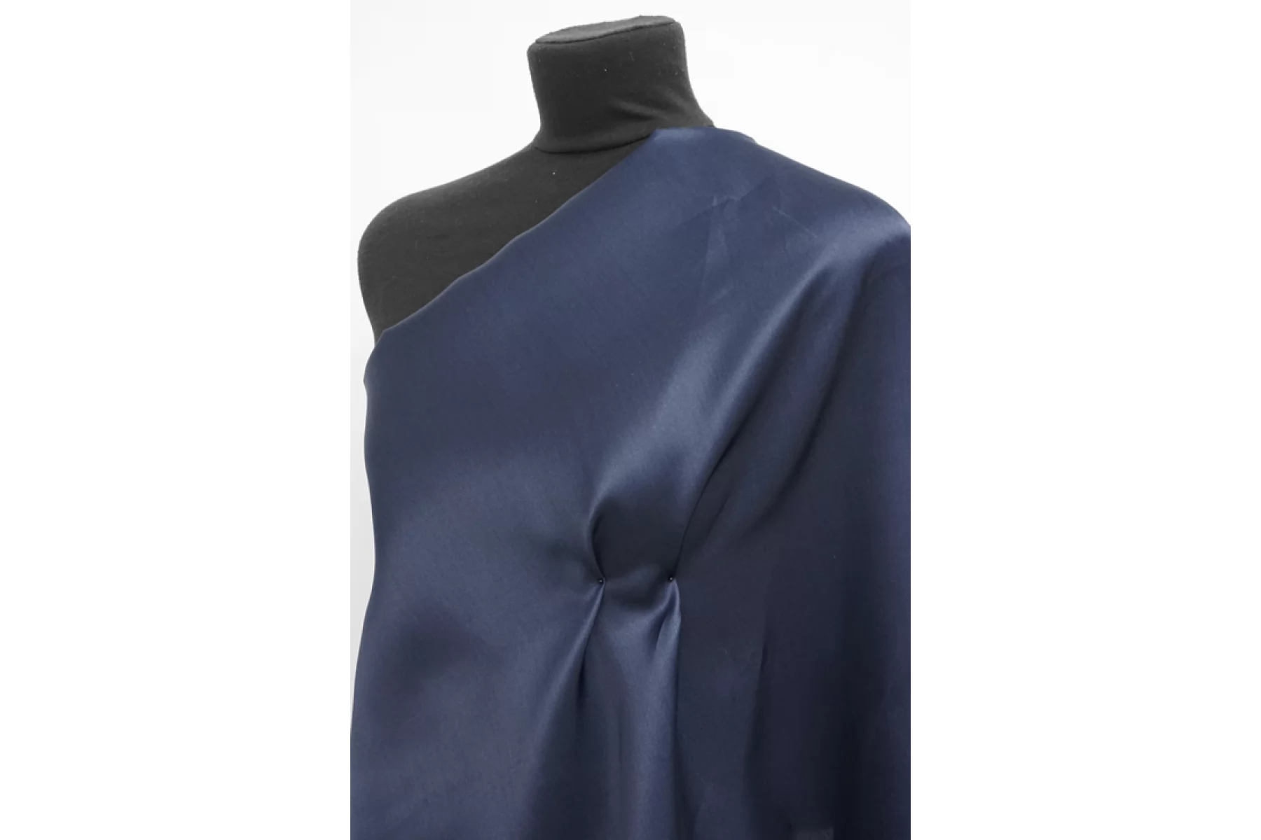 Сатиновая шелковая органза припыленного темно-синего оттенка со слегка заметным направленным окрасом. Тактильно плотная и достаточно толстенькая, гладкая, с несильной жесткостью, свойственной органзе. Отлично держит форму и округлые складки. Обладает красивым лоском. Просвечивает силуэт на просвет. Сминается и не тянется. Подойдет на платье, юбку, блузку, пальто халат, а также для отдельных элементов изделия. При необходимости используйте подкладочный материал. Уход, как и за любым шелком, деликатный.
