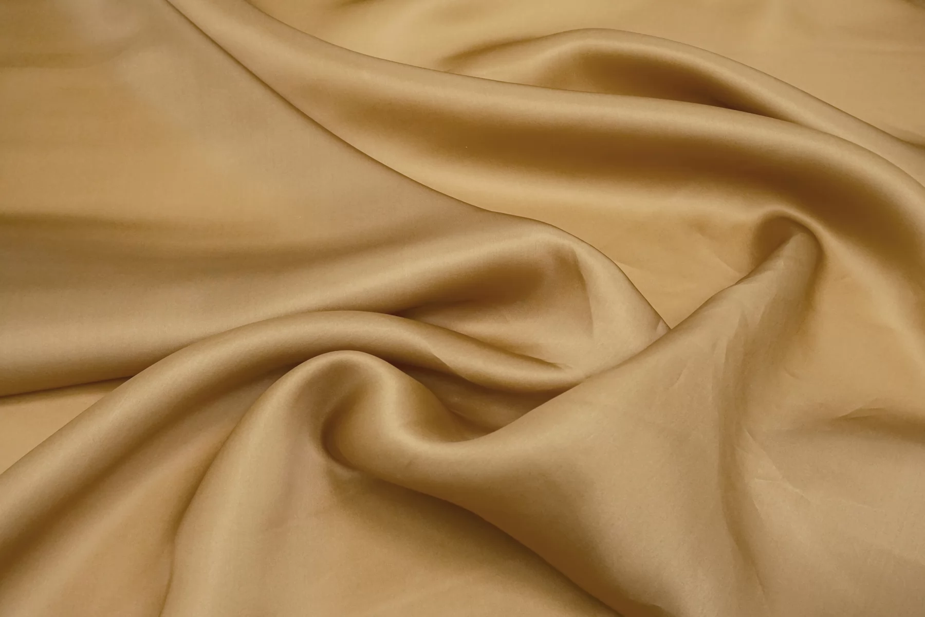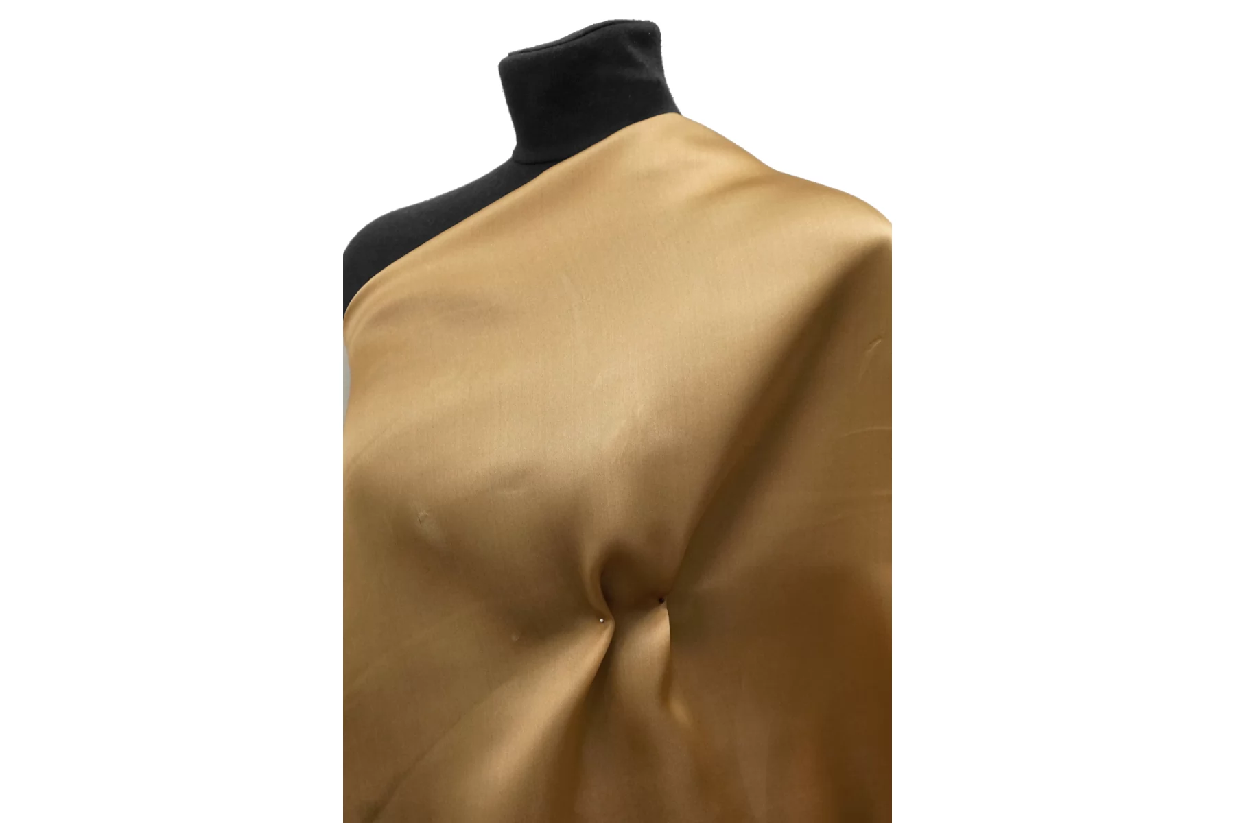 Сатиновая шёлковая органза от бренда Max Mara, в оттенка мокрого песка (тёмный песочно-бежевый). Тактильно плотная, гладкая, упругая. Отлично держит форму и округлые складки. Обладает красивым лоском. Просвечивает силуэт на просвет. Сминается и не тянется. Подойдет на платье, юбку, блузку, а также для отдельных элементов изделия. При необходимости используйте подкладочный материал. Уход, как и за любым шёлком, деликатный.