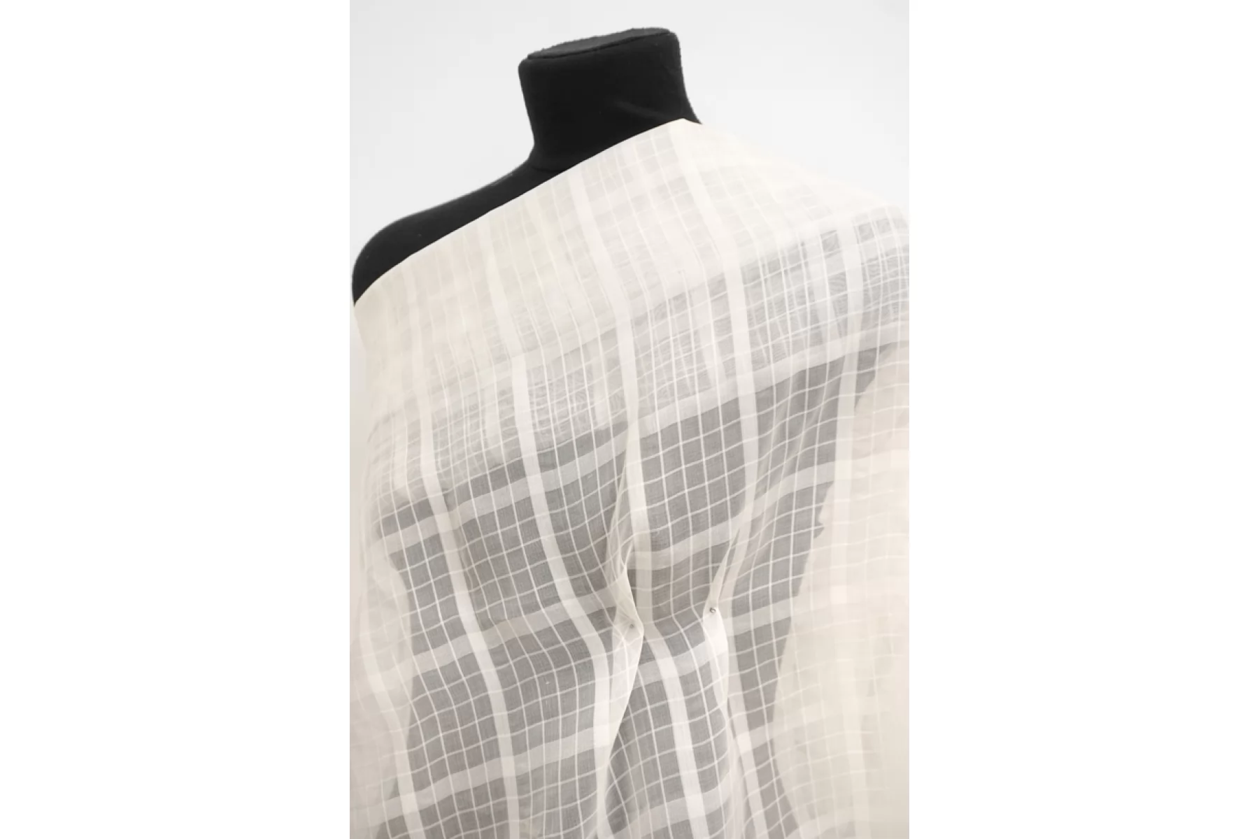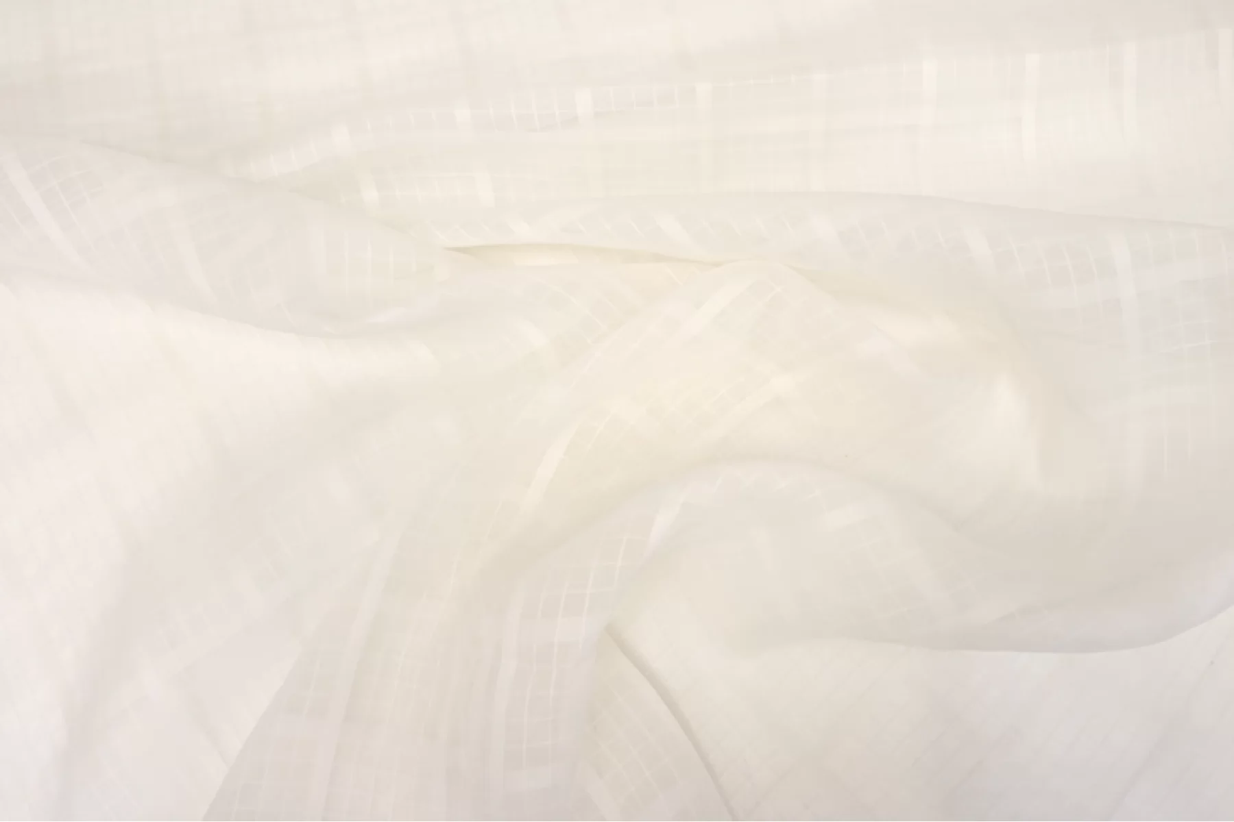 Шелковая органза молочного оттенка в клеточку от бренда Bureberry. Тонкая, обладает несильной жесткостью органзы, при этом мягкая, приятная, гладкая. Ощущается фактурность клетки. Прекрасно держит форму и округлые воздушные складки. Полупрозрачная. Немного мнется и не тянется. Прекрасный вариант на нарядные и повседневные платье, блузку и юбку. При необходимости используйте подкладочный материал. Уход, как и за любым шелком, деликатный.