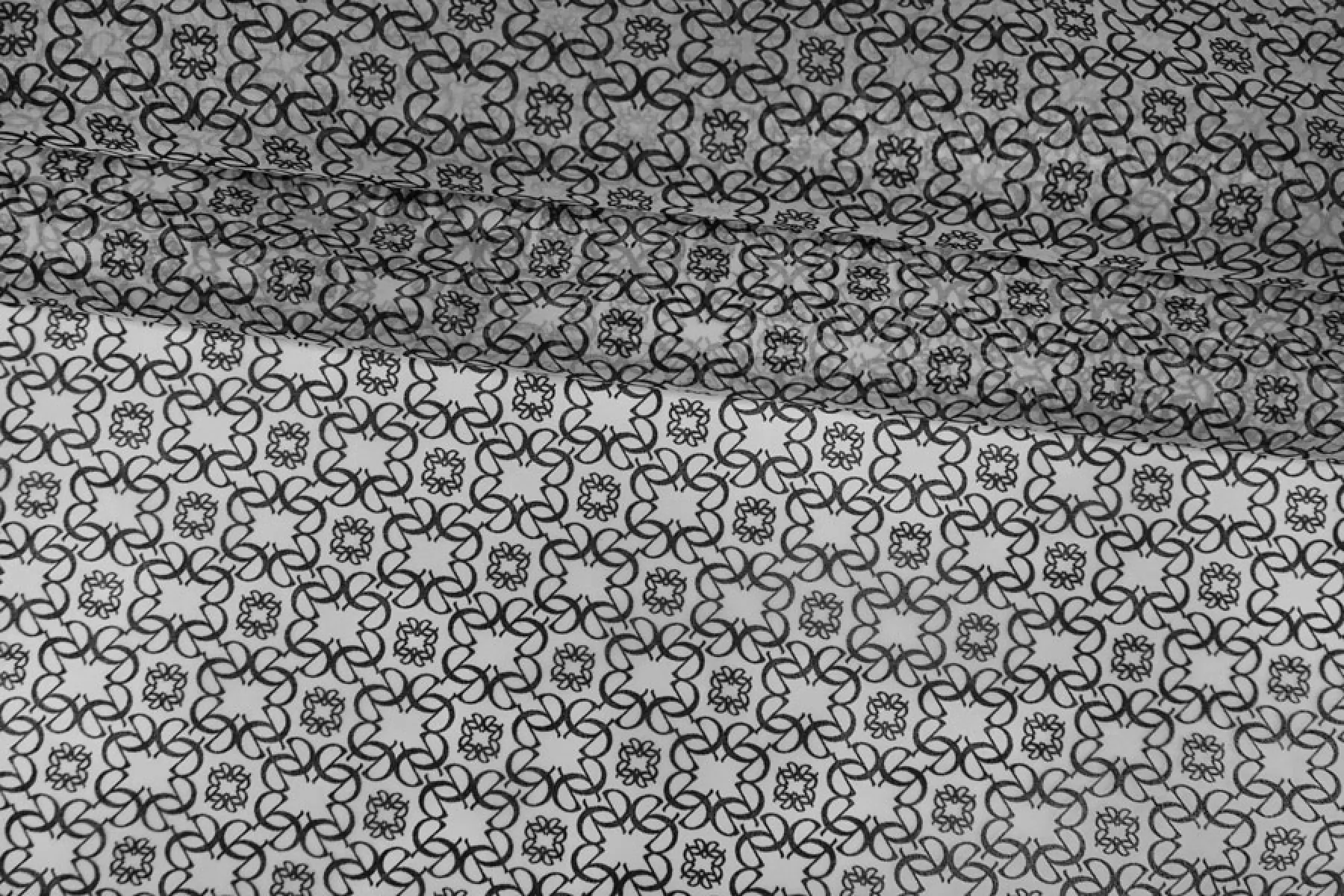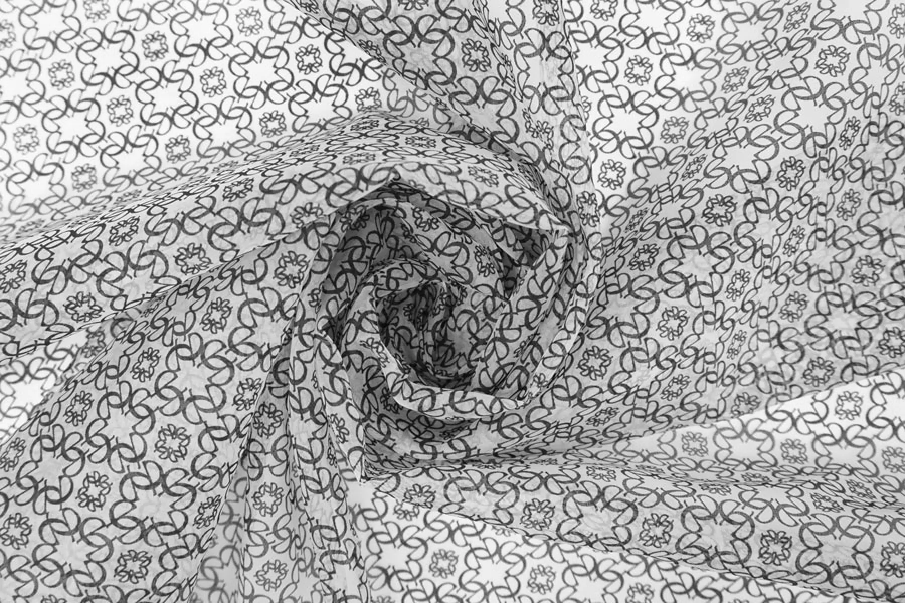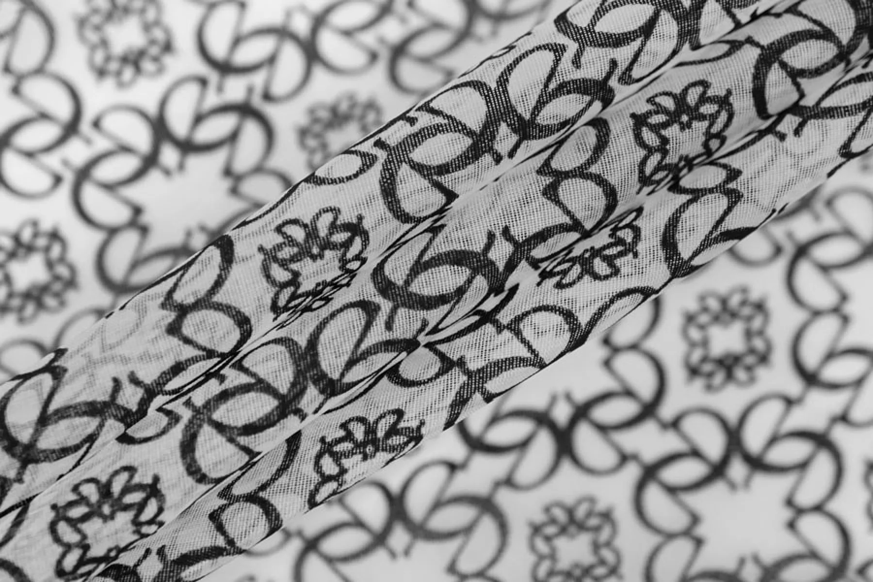 Органза шелковая ELIE SAAB Черно-белая орнамент-логотип TRC Н32 N50 17122489