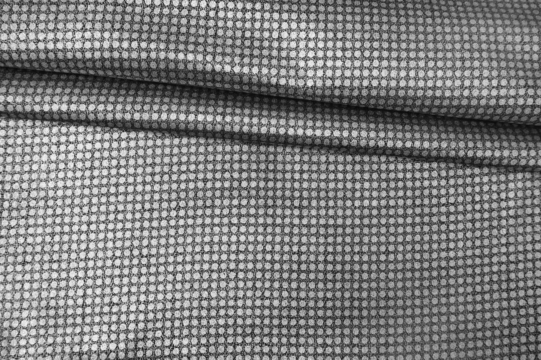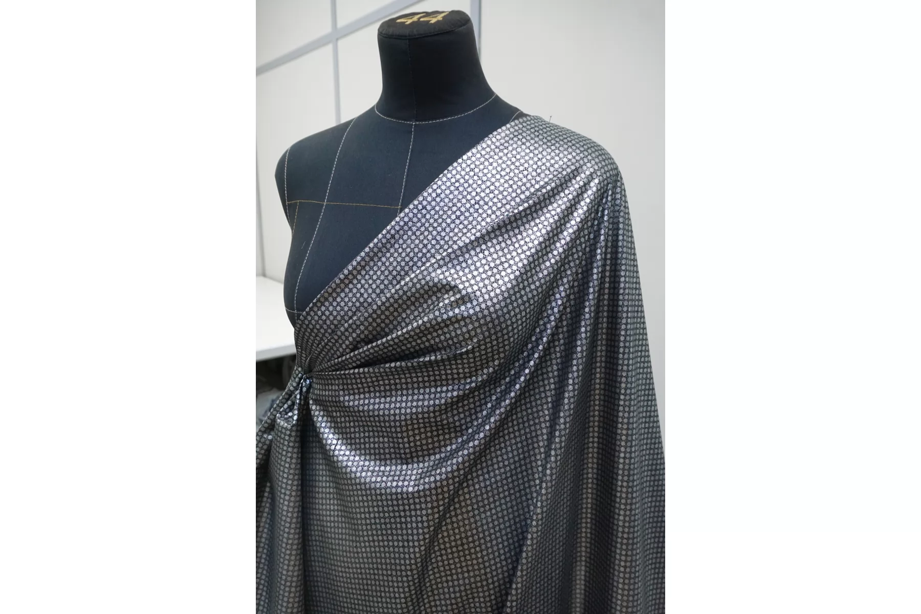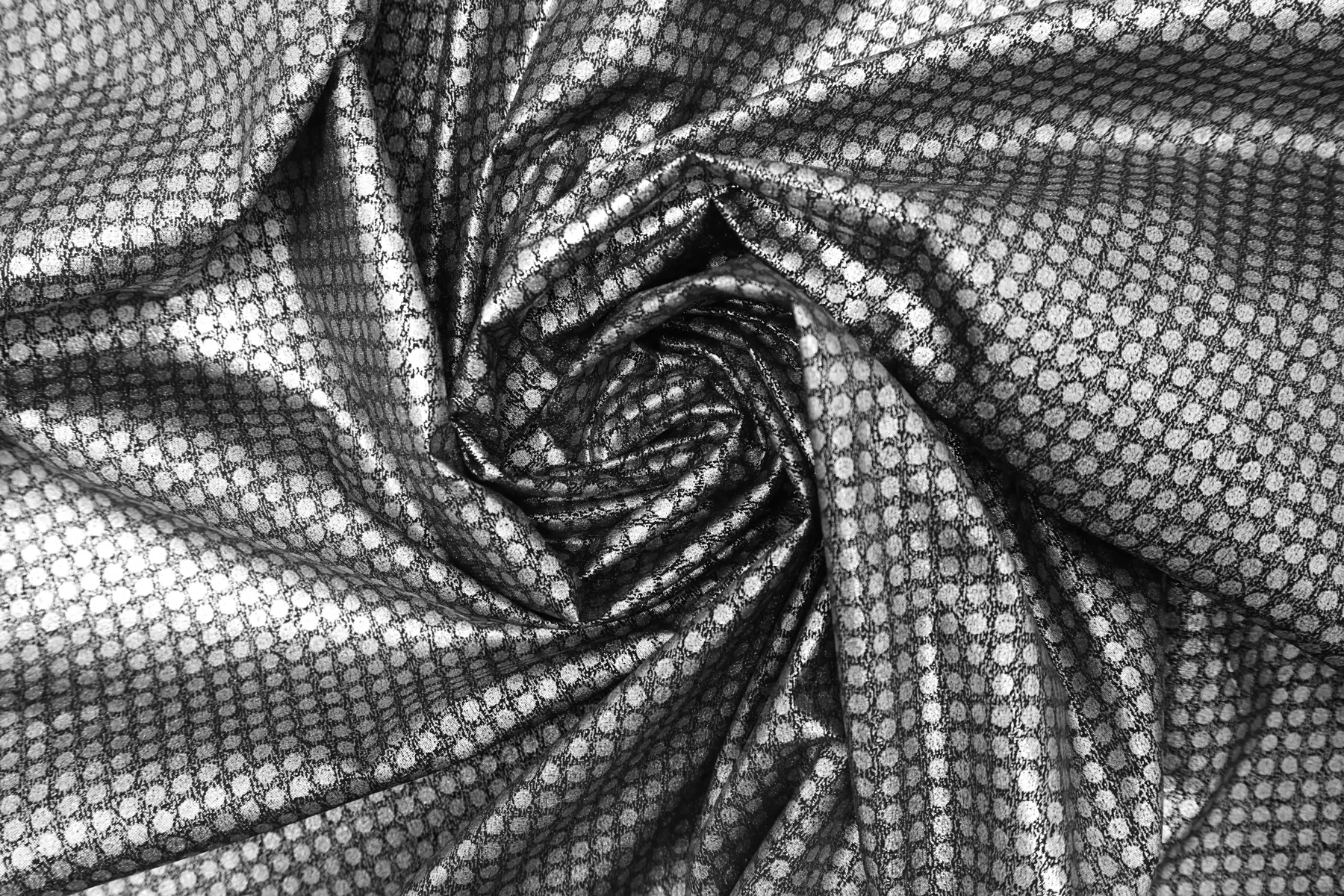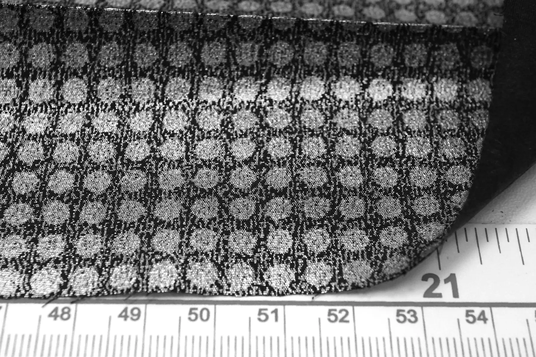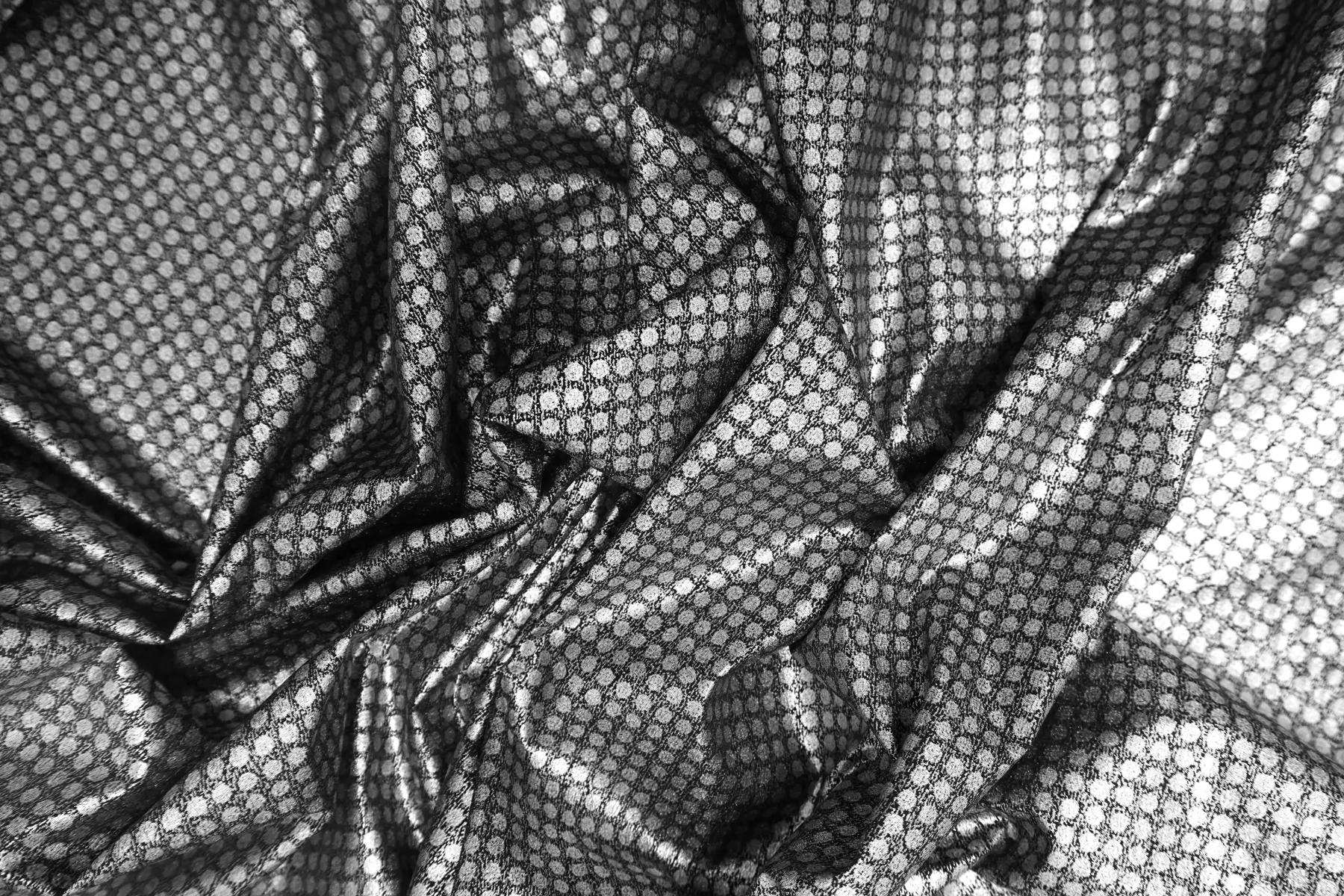 Органза шелковая с накатом плательно-блузочная TOM FORD Серебряные кружки на чёрном TRC Н32 O30 11122532