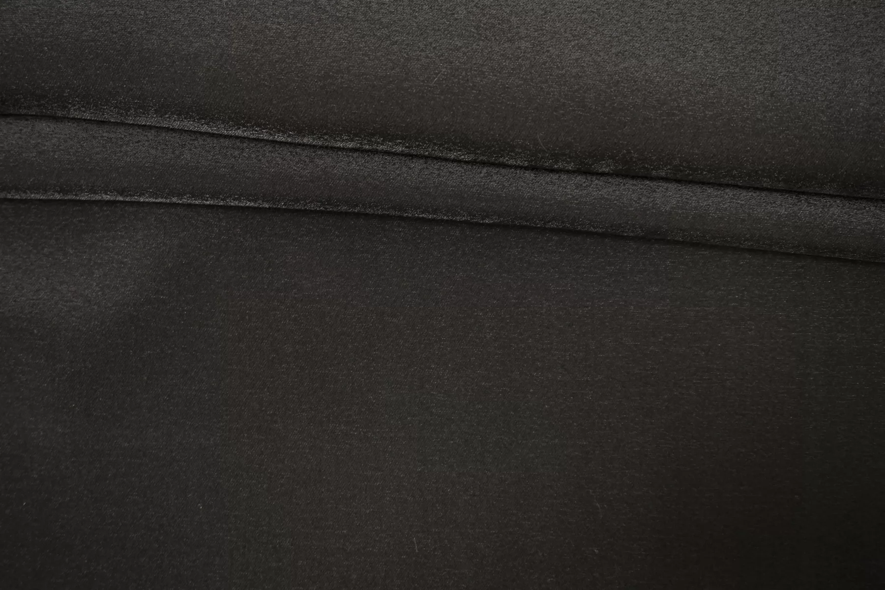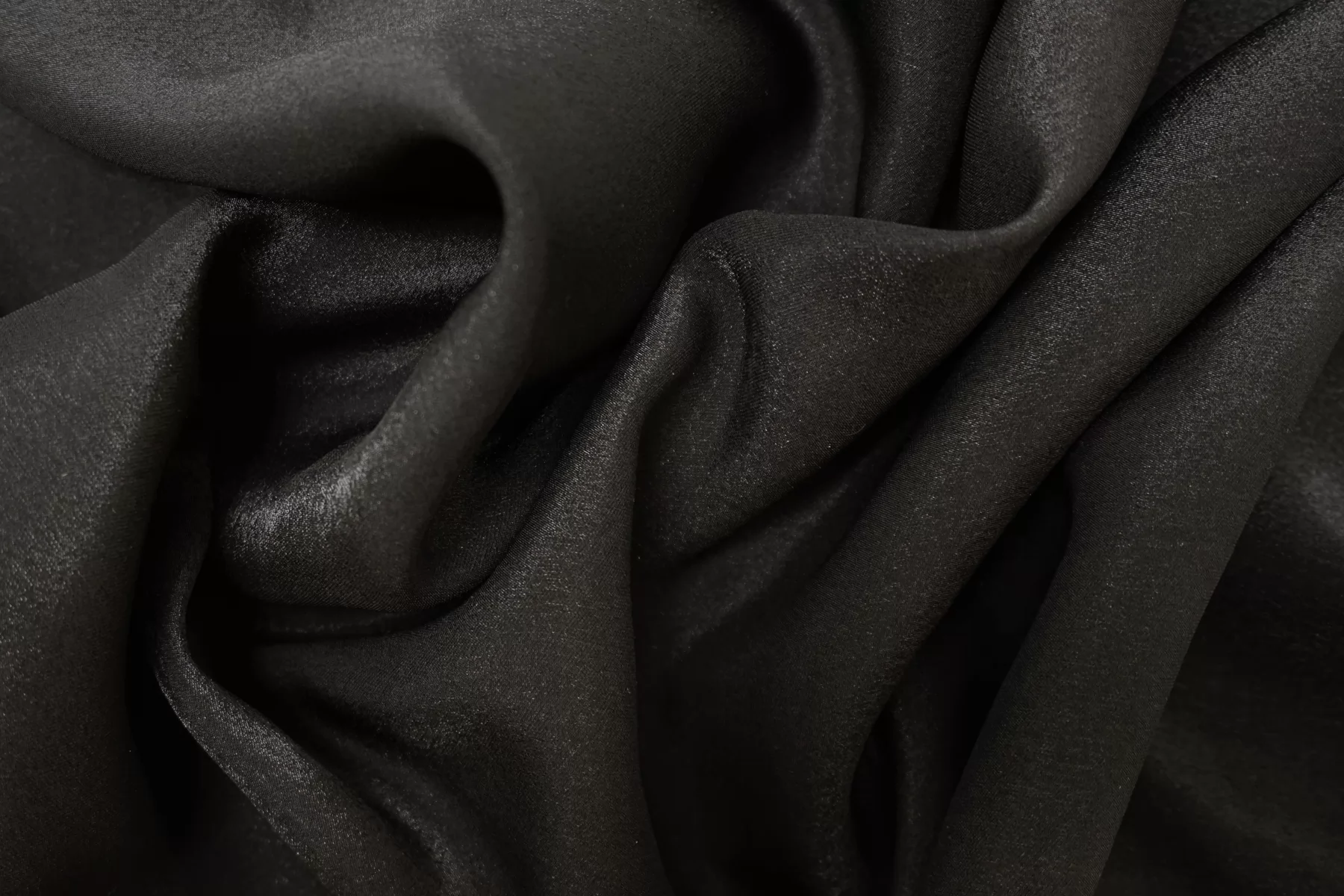 Органза из шёлка на капроне, плательной плотности в чёрном цвете, есть еле уловимый коричневый подтон. Благодаря нитям капрона создаётся мерцающий эффект. Пластичная, тактильно приятная, гладкая. Просвечивает в один слой, не тянется. Прекрасный вариант на платья, юбки, блузки и не только. При необходимости используйте подкладочный материал. Уход за шелком деликатный.