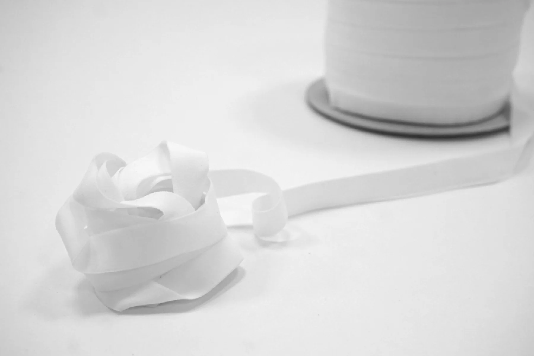 Отделочная эластичная резинка, мягкая, в белом цвете. Подойдет для декоративной обработки края и открытых срезов тканей.