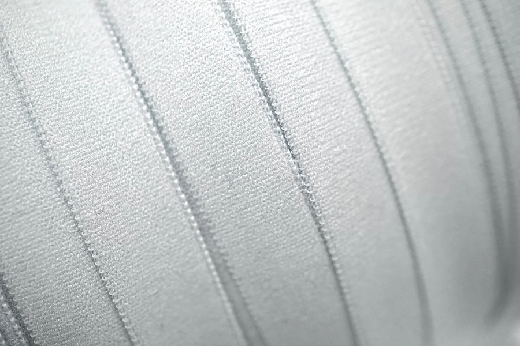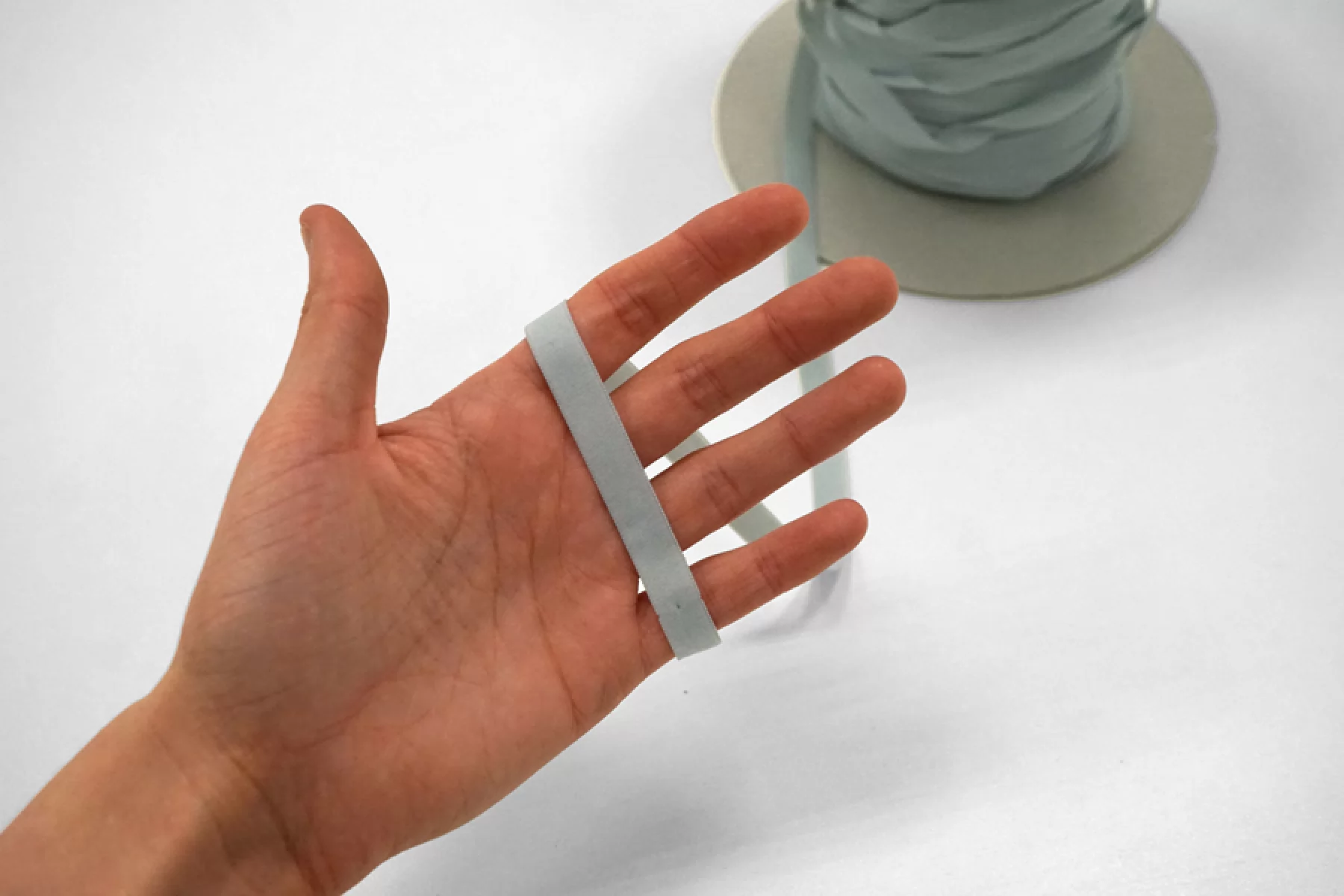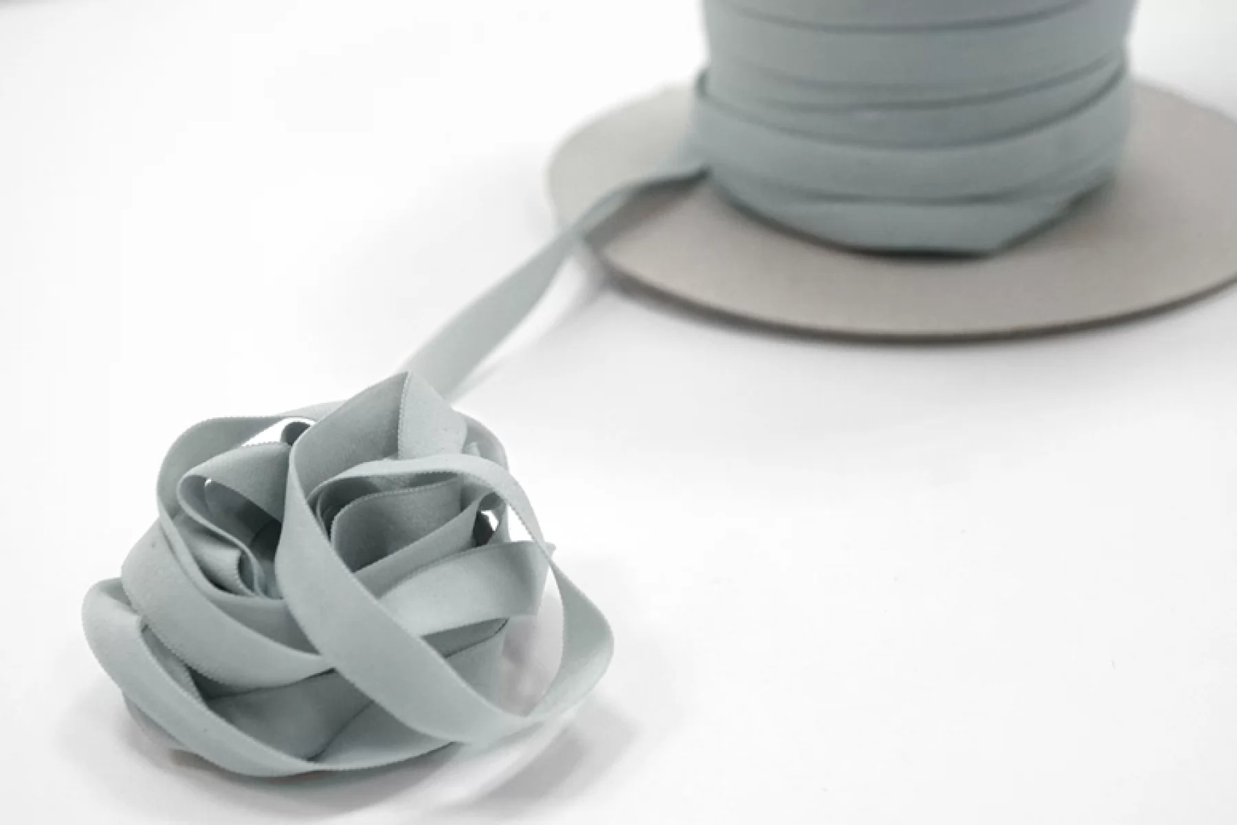 Отделочная эластичная резинка, мягкая, в серо-голубом цвете. Подойдет для декоративной обработки края и открытых срезов тканей.