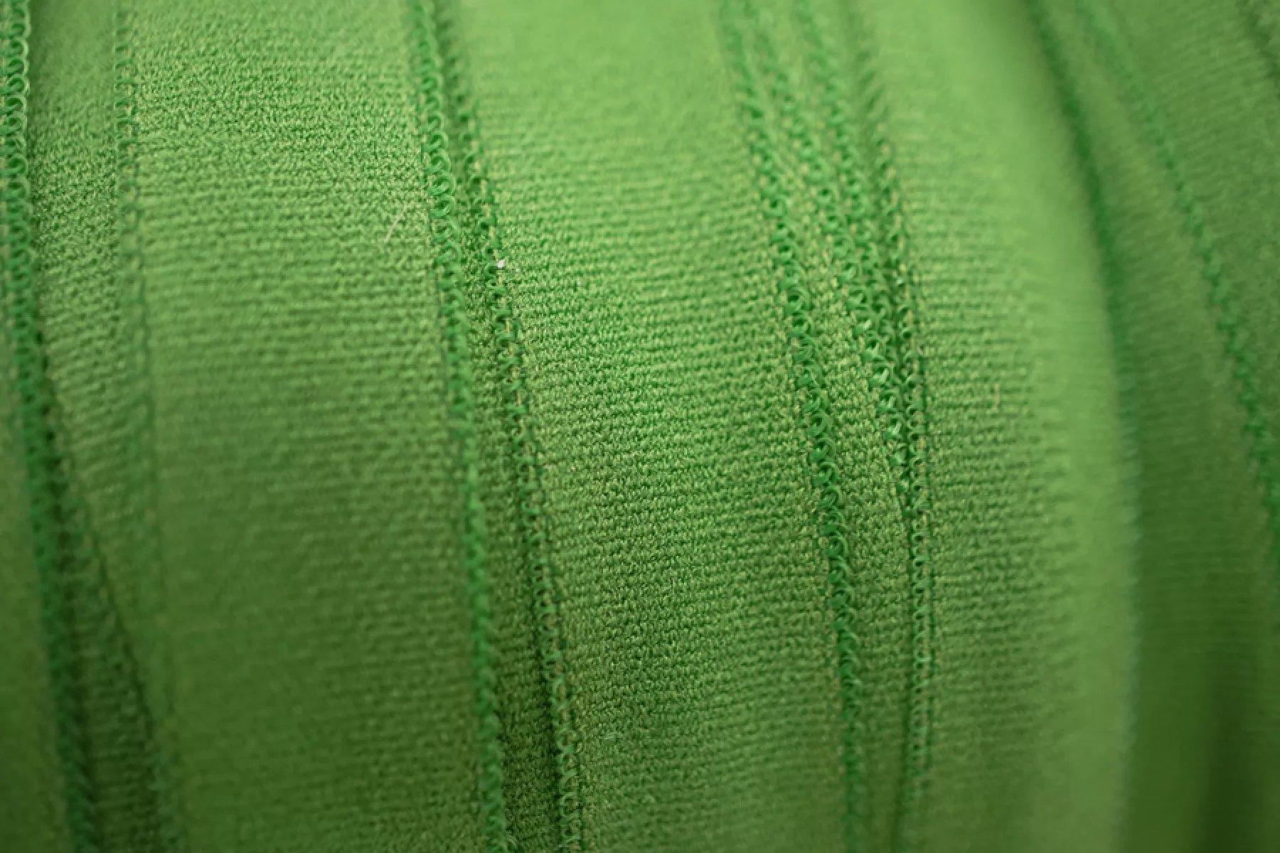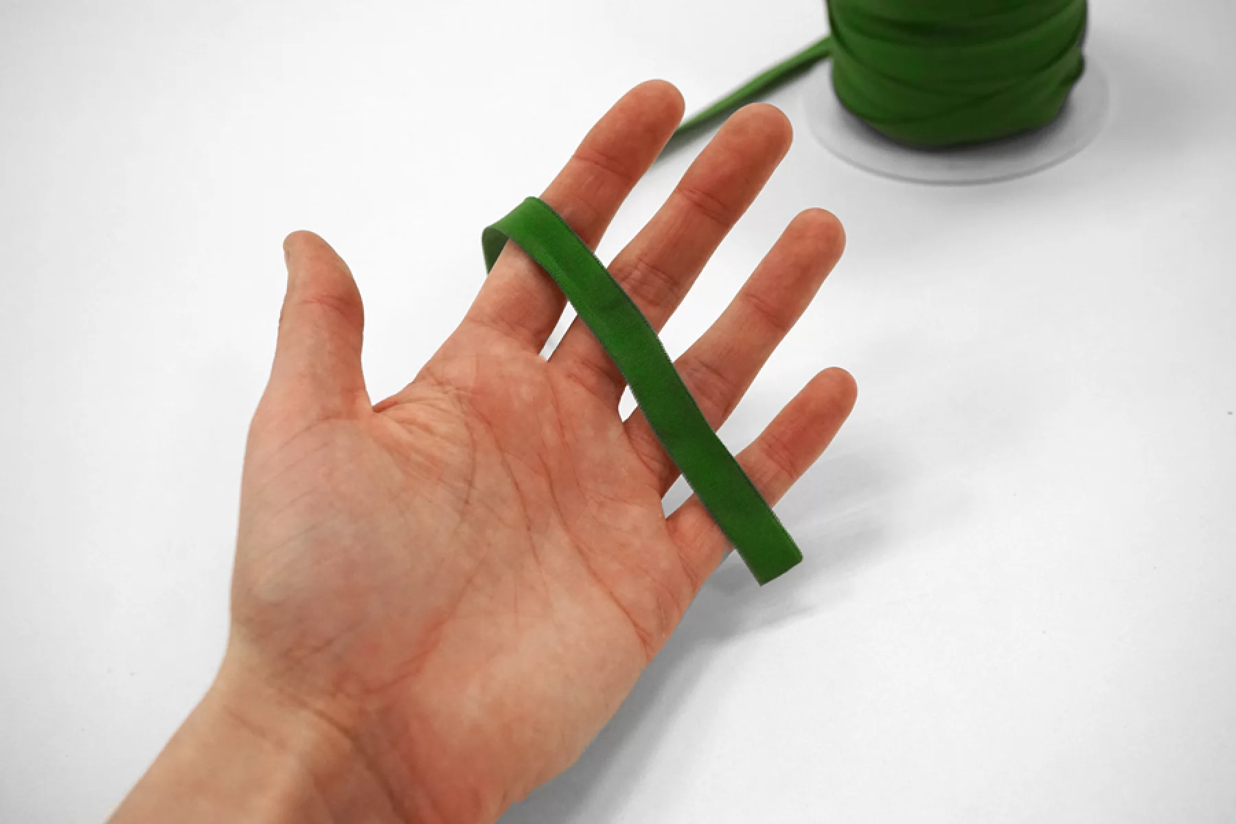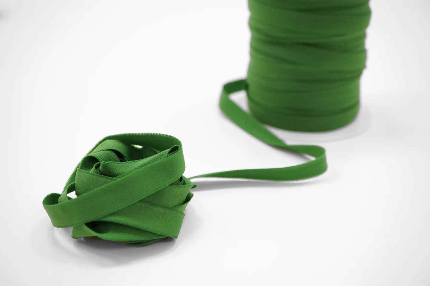 Отделочная эластичная резинка, мягкая, в зеленом цвете. Подойдет для декоративной обработки края и открытых срезов тканей.