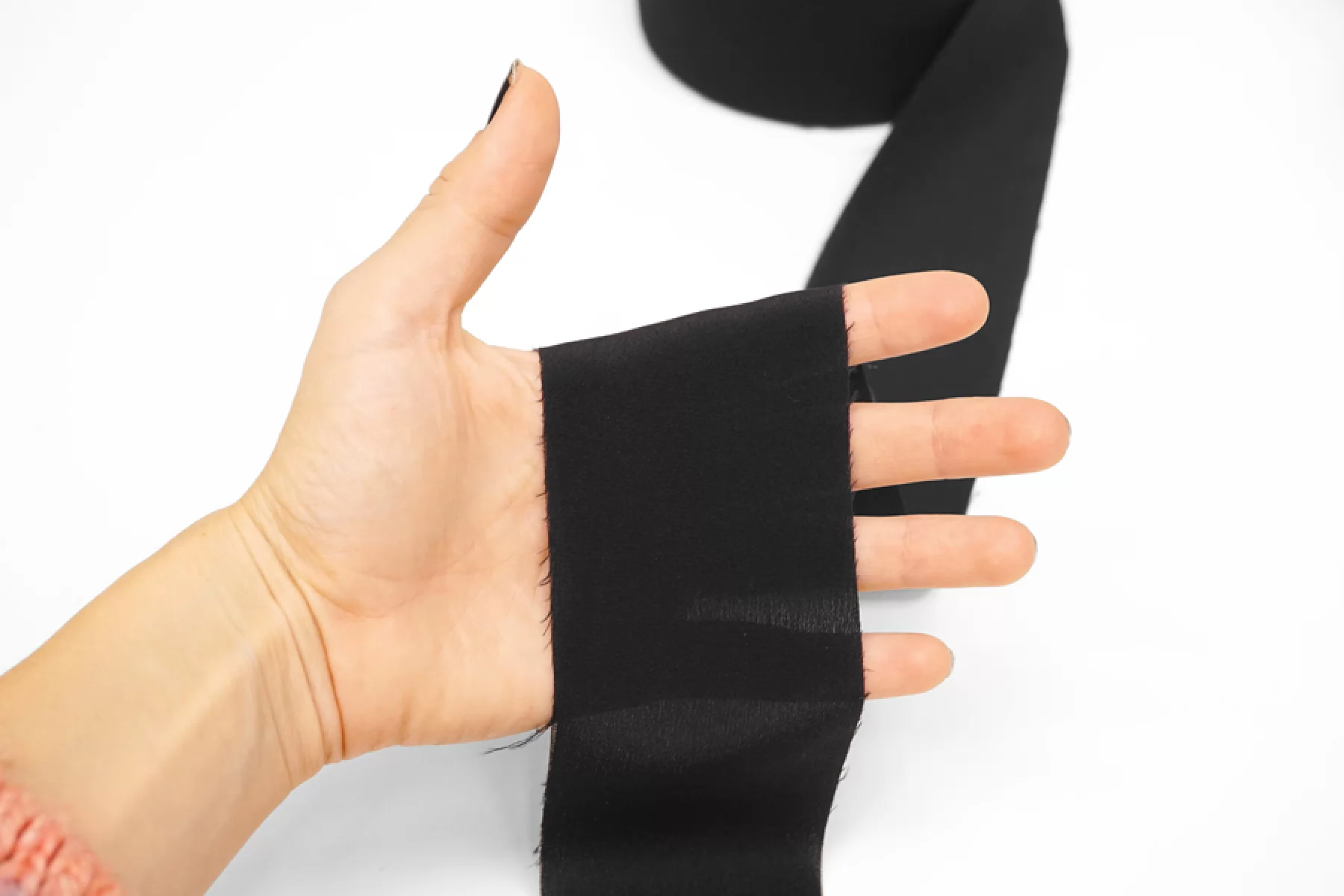 Цена указана за метр. Шёлковая лента чёрного цвета, ширина - 65 мм. Подойдёт для обработки срезов.