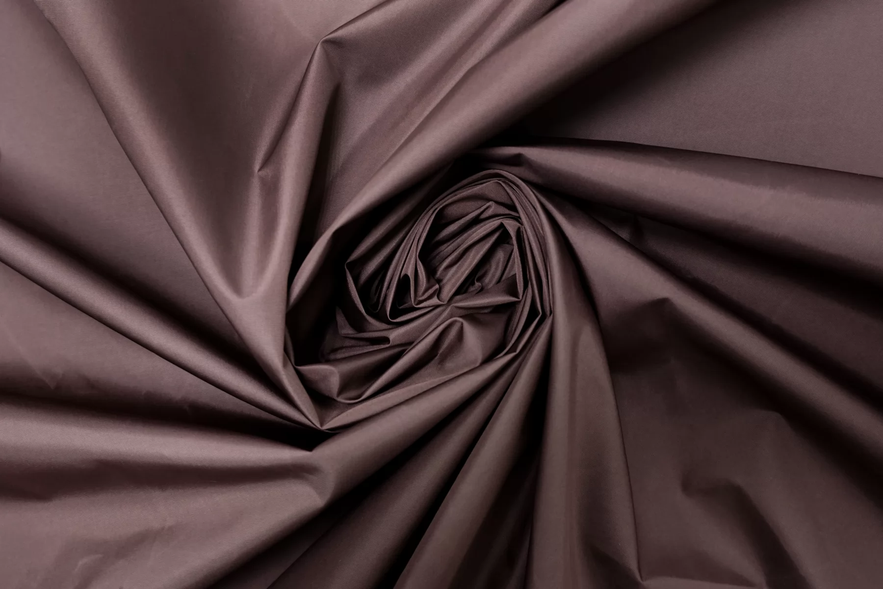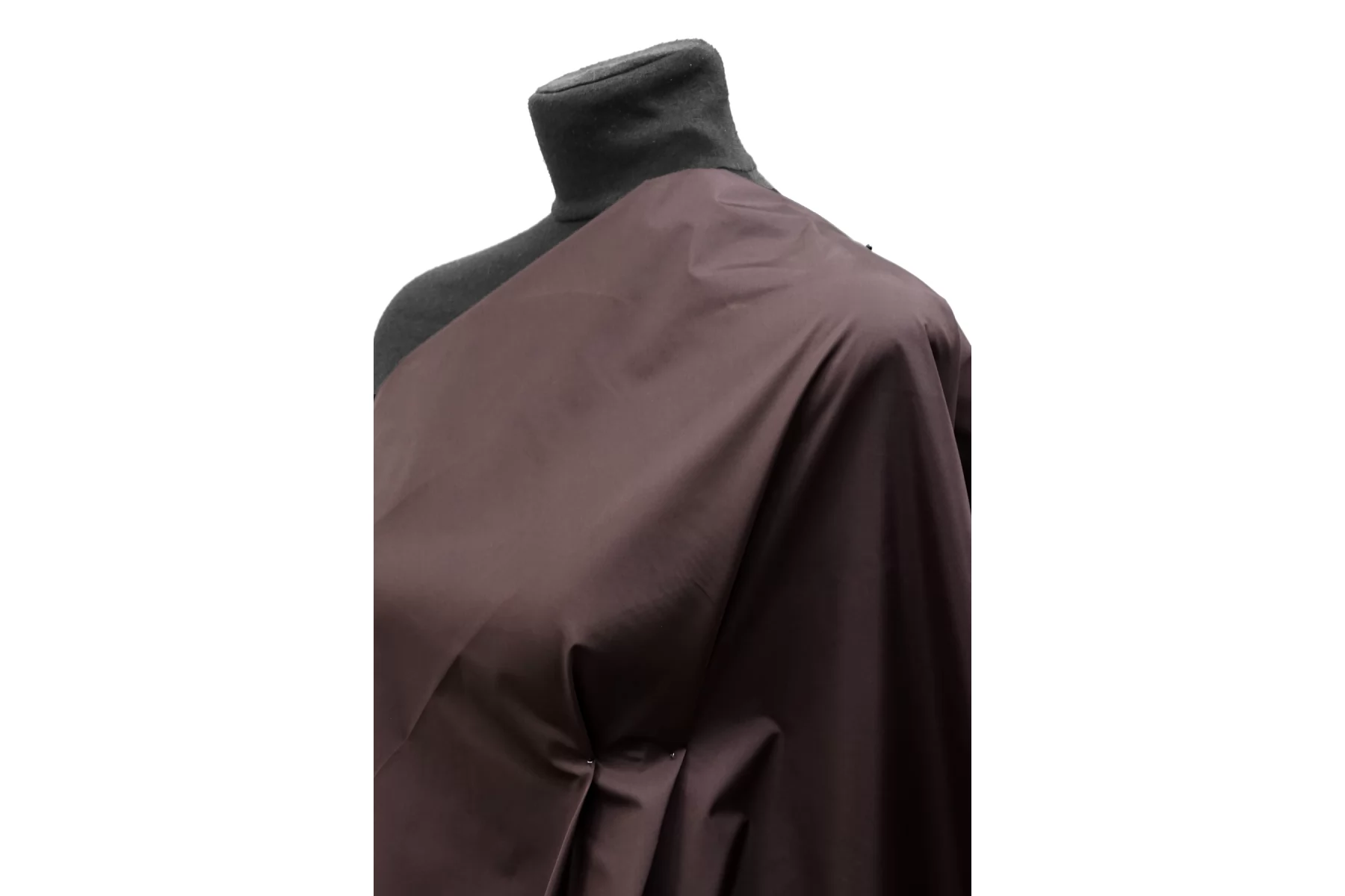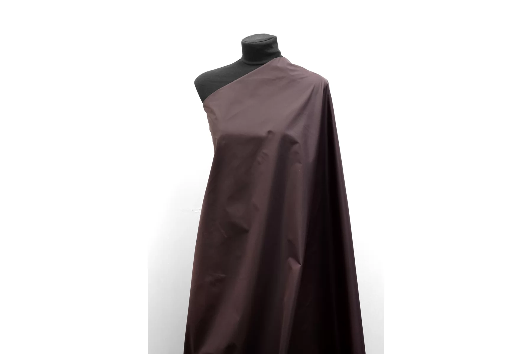 ЦЕНА УКАЗАНА ЗА ОТРЕЗ! (При заказе в метраже указывать 1) Плащевка тонкая, цвет приглушённый, спелой черешни от MAX MARA. Обладает матовым отблеском. Тактильно очень приятная, мягкая. Немного шуршит. Плотная, легкая. Ветрозащитная, вода скатывается с поверхности но под сильным дождем со временем начинает промокать. Сминается. Может слегка просвечивать силуэт. Слегка держит форму, пластичная. Прекрасно подойдет для пошива дождевика, куртки, плаща, жилета (простегать с наполнителем и подкладкой).