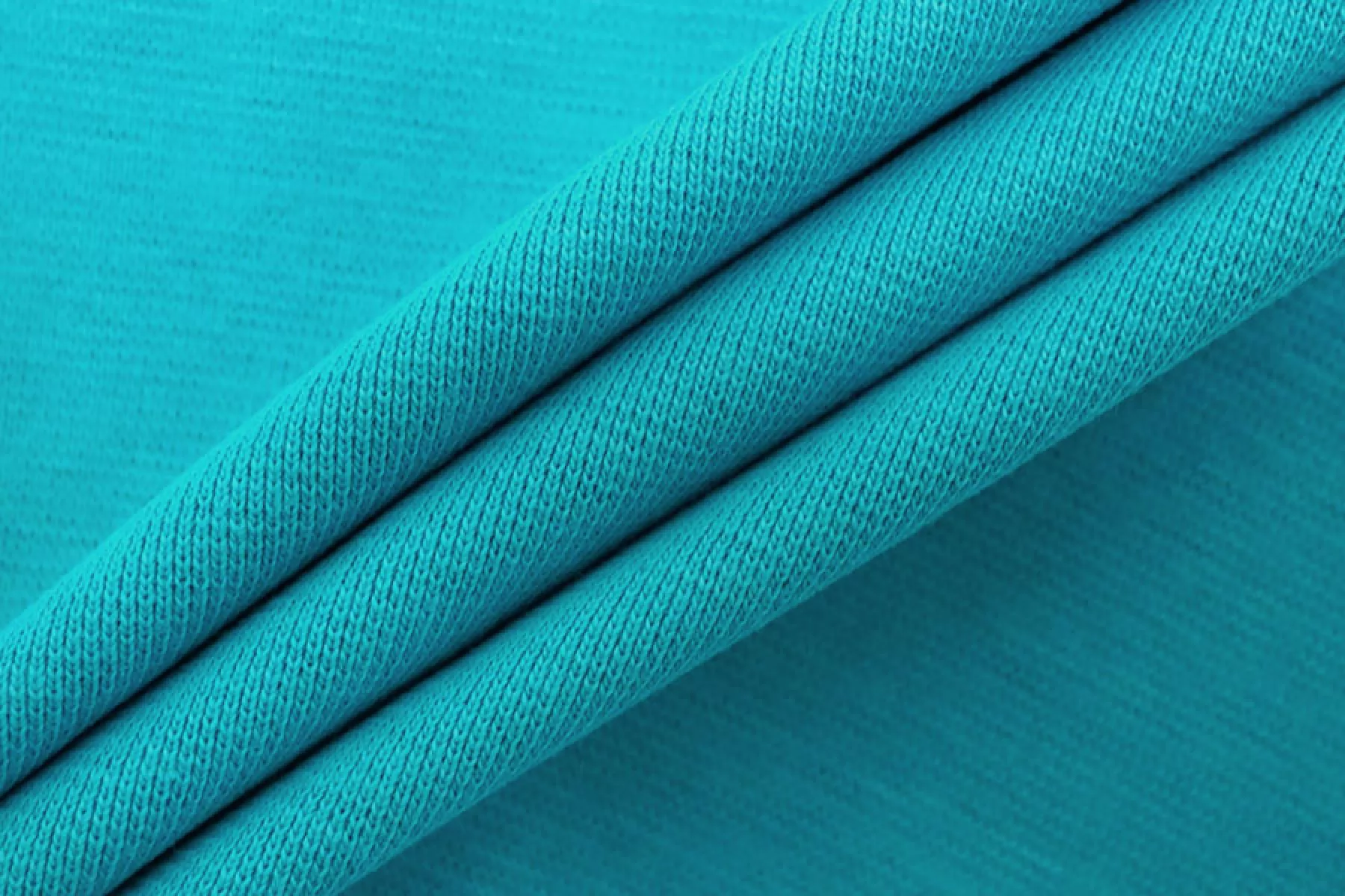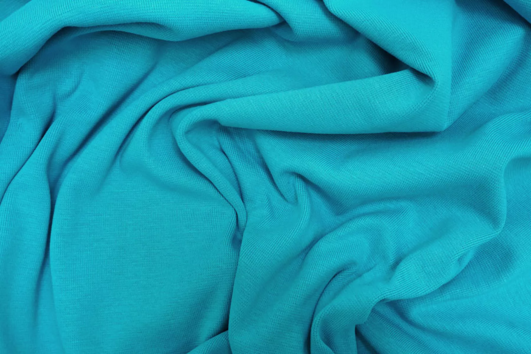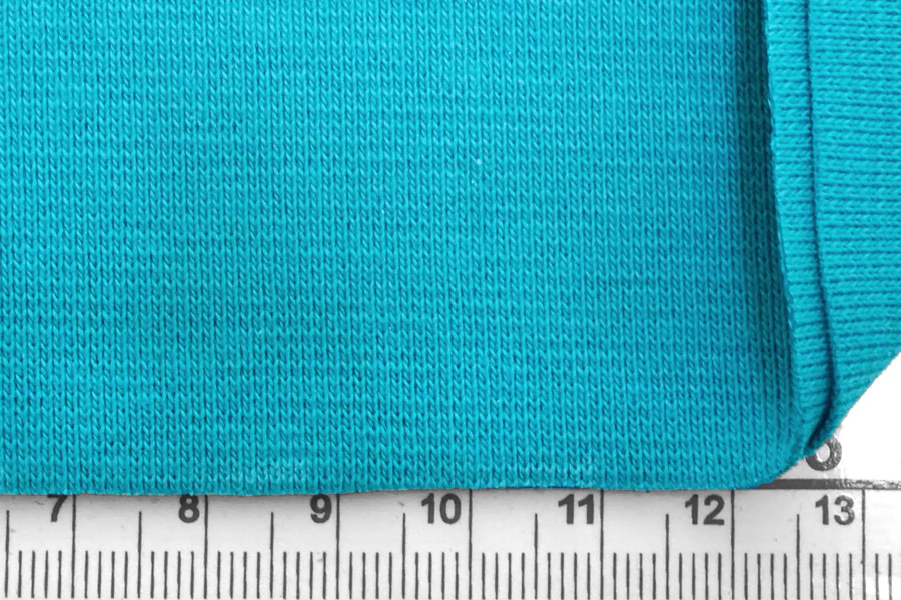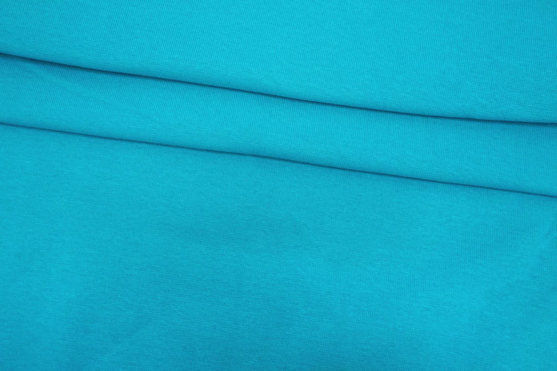 Внимание! По всей длине рулона проходит полоса в 10 см от кромки, см. фото. Итальянский хлопковый трикотаж в красивом, насыщенном бирюзово-голубом цвете, по вязке ближе к рибане. Материал пластичный, мягкий, гладкий. Плотный, но тонкий. Немного просвечивает. Практически не мнется. Отлично тянется. Подойдет для пошива майки, футболки, топа, а также манжетов, подвязов или воротников.