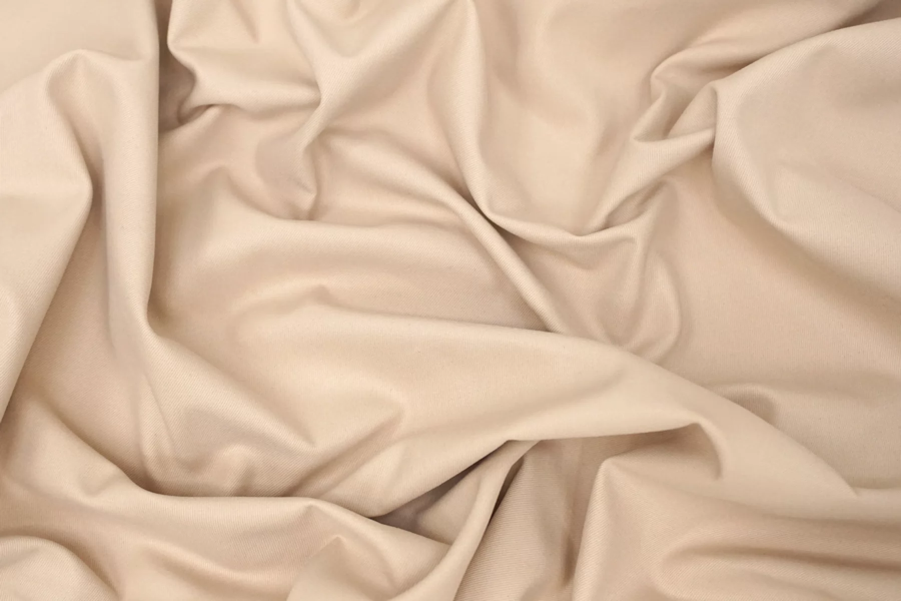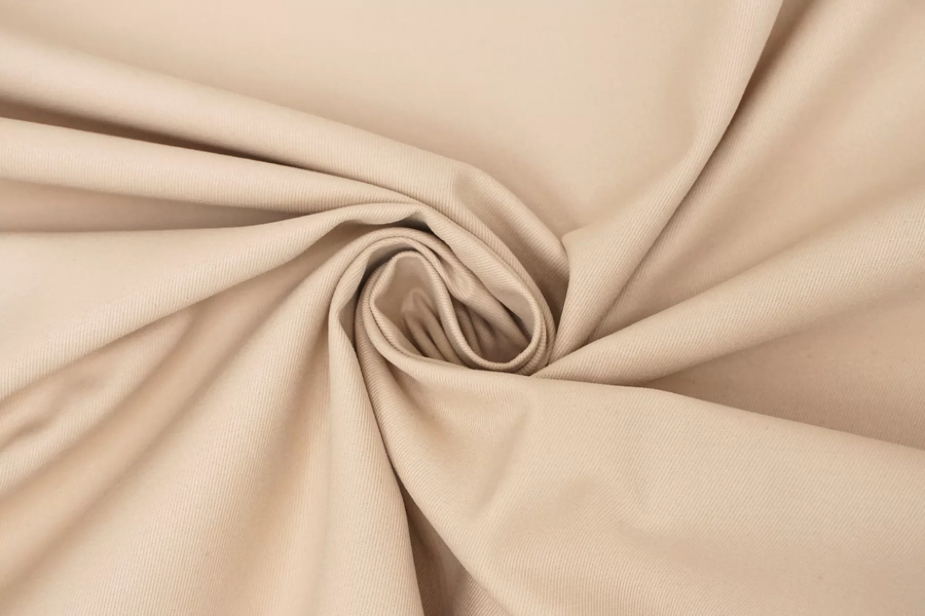 ЦЕНА УКАЗАНА ЗА ОТРЕЗ! (При заказе в метраже указывать 1) Отличный плащевый хлопок диагонального плетения, пыльного бежевого оттенка. Приятный, мягкий, гладкий, слегка суховатый и формодержащий. Обладает легким лоском. Сминается. Неплохо тянется за счет эластана. Плотненький. Не просвечивает. Отличный вариант на плащи, тренчи, жакеты, а также костюмные варианты, брюки и юбки.