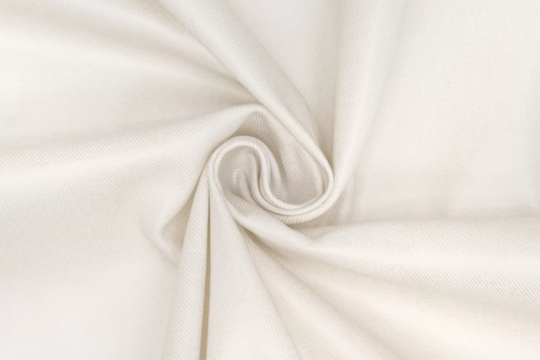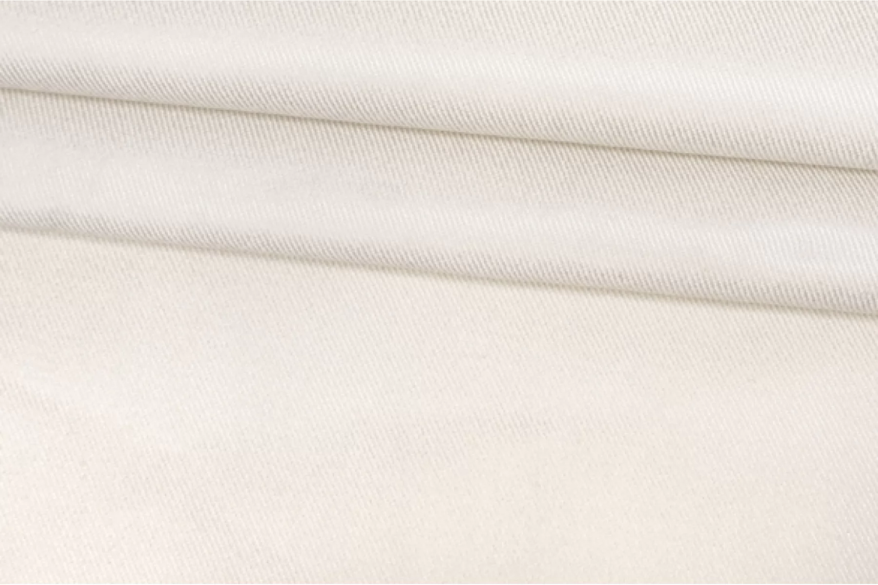 На отрезе следы от скотча с изн .стороны! Хлопковая джинса диагонального плетения от MOSCHINO в молочном оттенке с серебристым светлым накатом. Тактильно приятная. Слегка и упруго тянется за счет небольшого содержания эластана. Обладает красивым блеском. Прекрасно держит форму и складки. Не просвечивает, но может читаться силуэт темного. Сминается. Отлично подойдет на куртки, платья, юбки, джинсы, жакеты и не только.