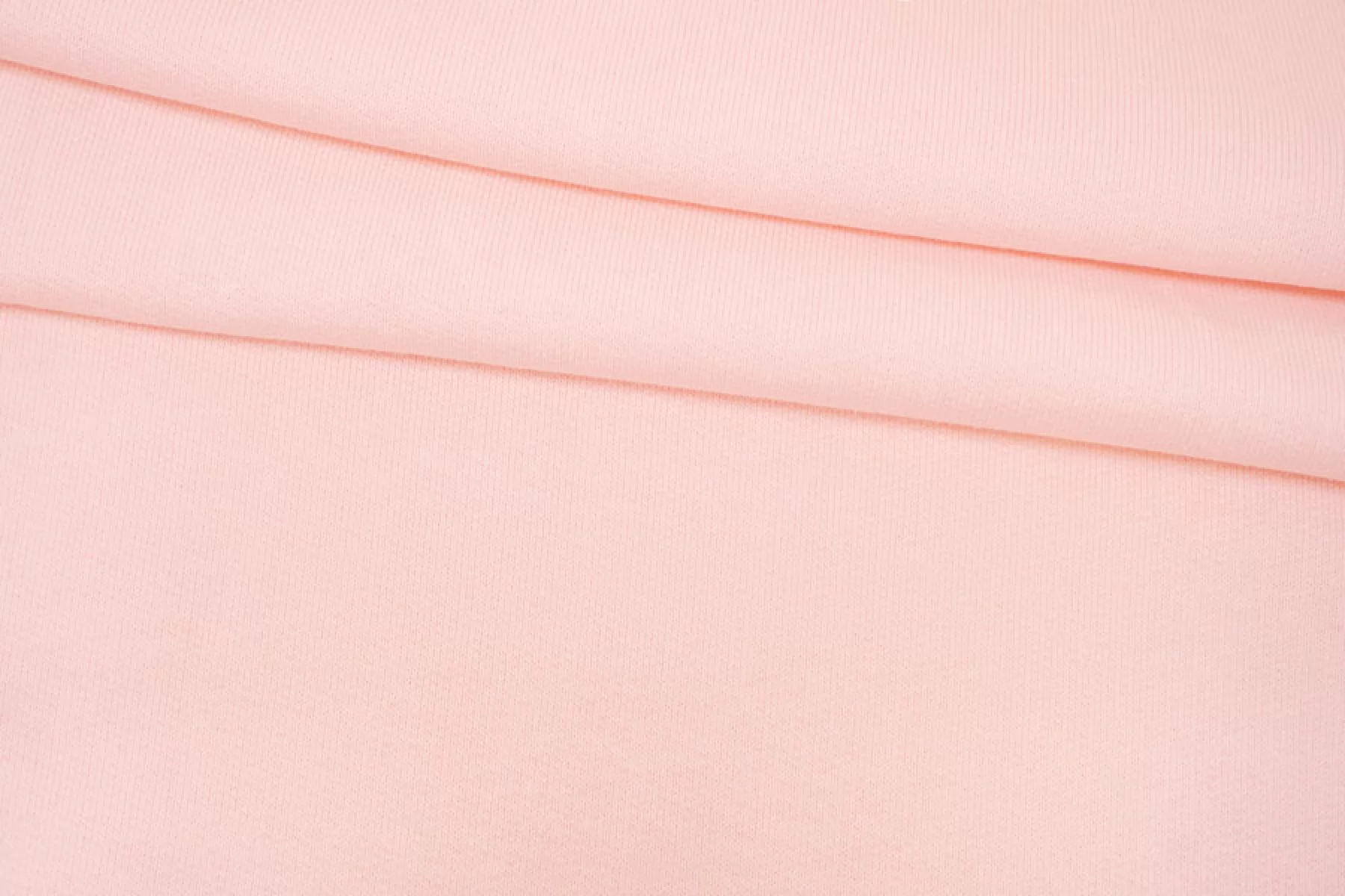 На отрезе следы от скотча с изн. стороны, грязные кромки и пятно в 20 см от среза! Прекрасный футер петля светло-розового цвета от бренда FENDI. Тонкий, тонкий, мягкий, приятный наощупь. Практически не тянется. Формодержащий. Не просвечивает. Достаточно пластичный. Слегка сминается, но восстанавливается практически полностью. Отличный вариант для худи, толстовки, свитшота, штанов и платья, а также спортивного костюма. Обратите внимание на отличную ширину!