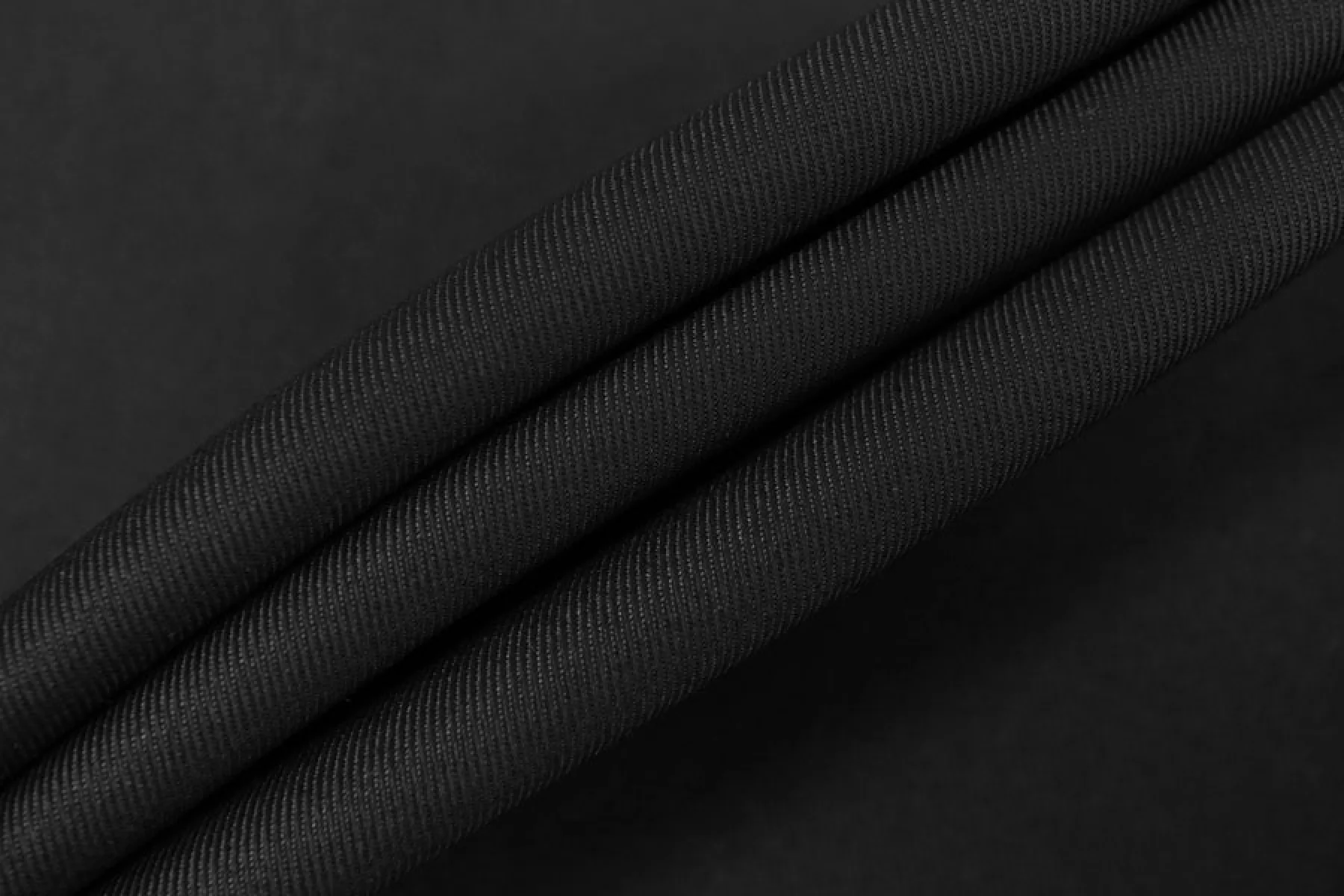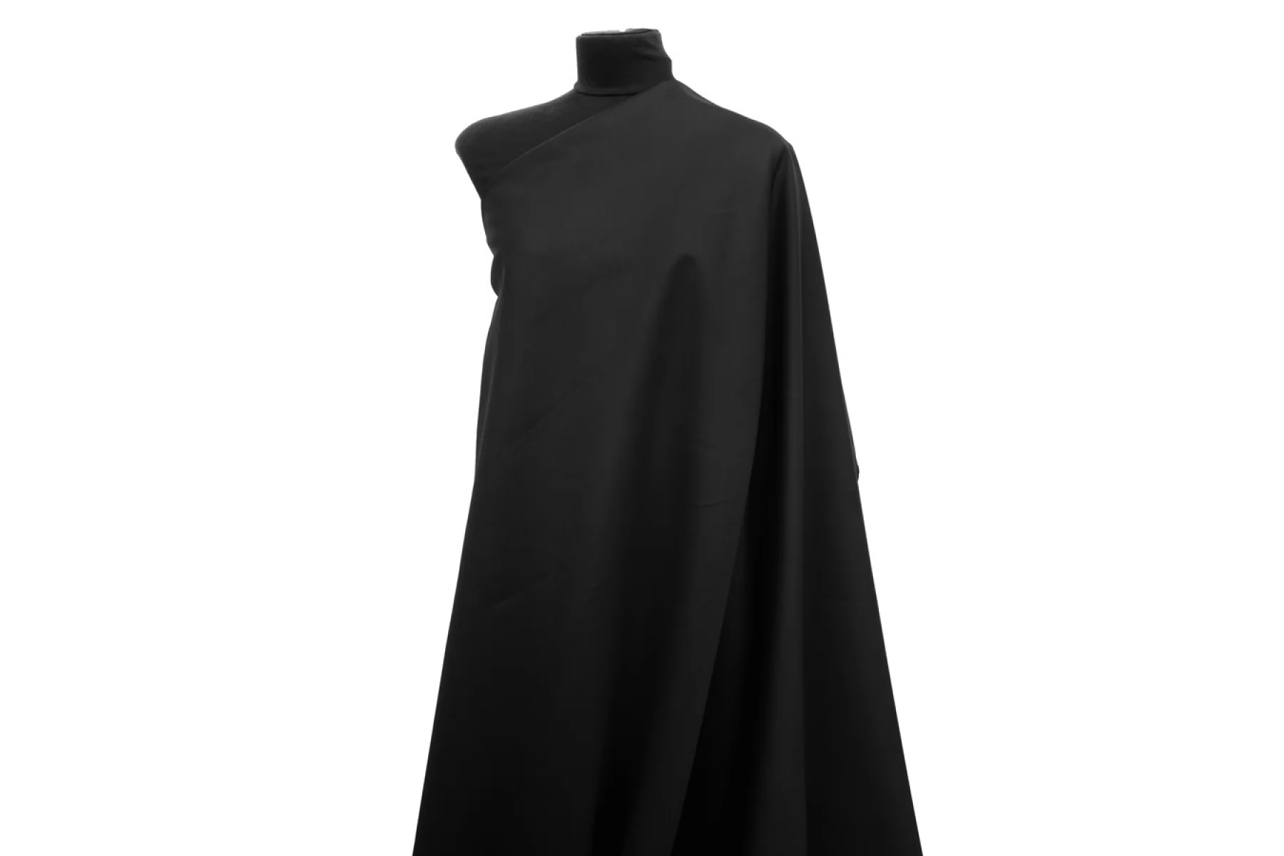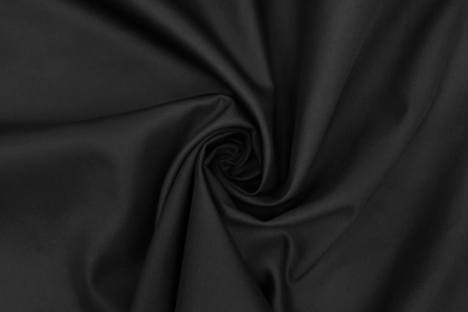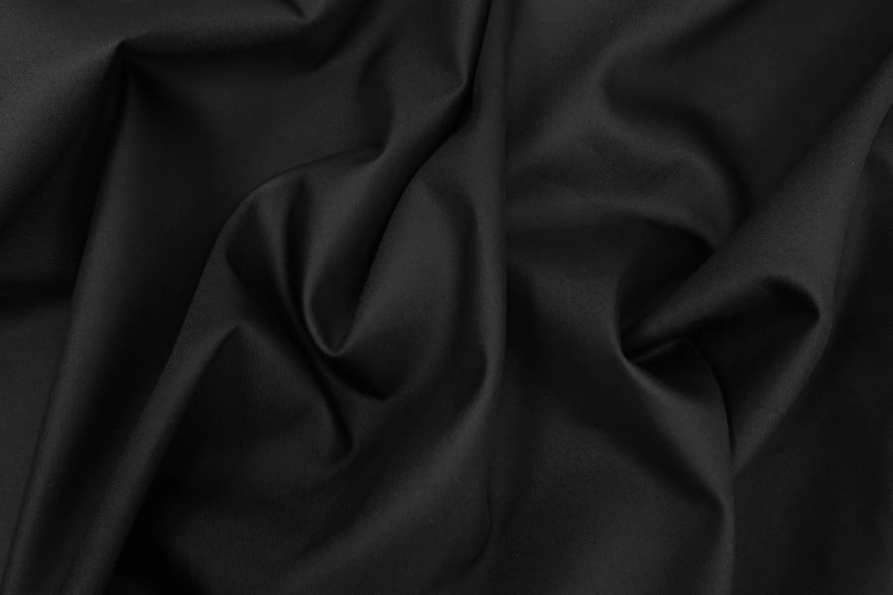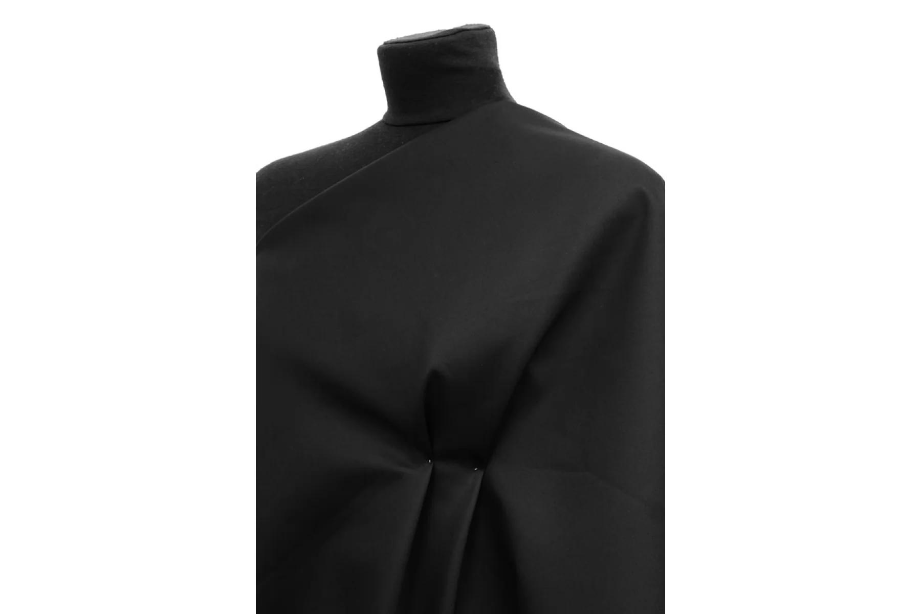 На отрезе бракованная кромка! Отличный плащевый хлопок BURBERRY диагонального плетения черного цвета. Тактильно приятный и мягкий, похрустывающий. Плотненький, но не толстый. С матовым лоском. Отталкивает и не впитывает воду. Ветрозащитный. Сминается, но частично восстанавливается. Слегка заметен контур силуэта на просвет. Классно подойдет на плащи, тренчи, жакеты, бомберы и другие варианты.