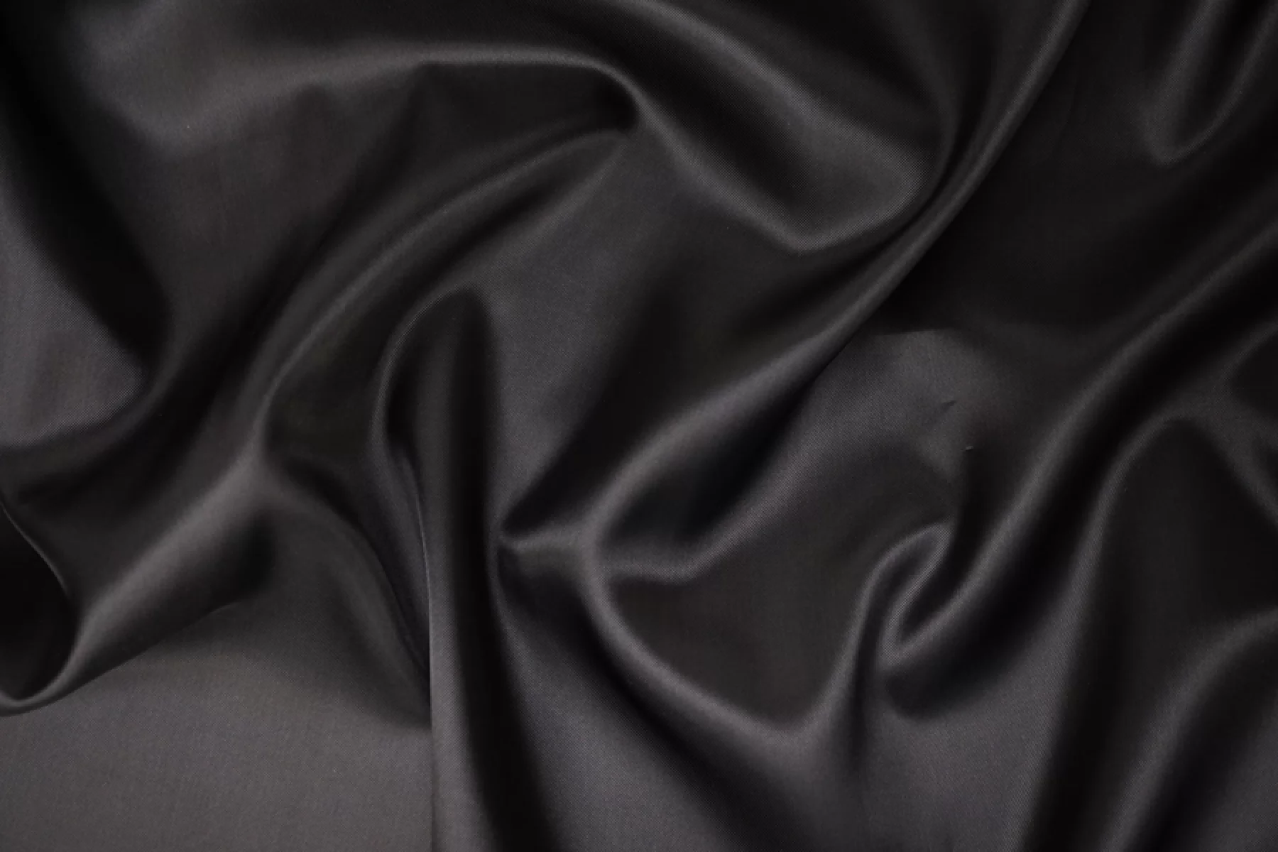 На отрезе стрелка поперек отреза! Подкладочная итальянская вискоза диагонального плетения в темно-графитовом оттенке. Гладкая, тактильно приятная, мягкая, с красивым блеском. Подкладочный материал достаточно плотный, немного просвечивает силуэт, если смотреть на просвет. Подойдет для изделий на костюмы: к пиджакам, жилеткам, юбкам и брюкам, а также на пальто и шубы. Обязательно учитывайте усадку 5-10%.