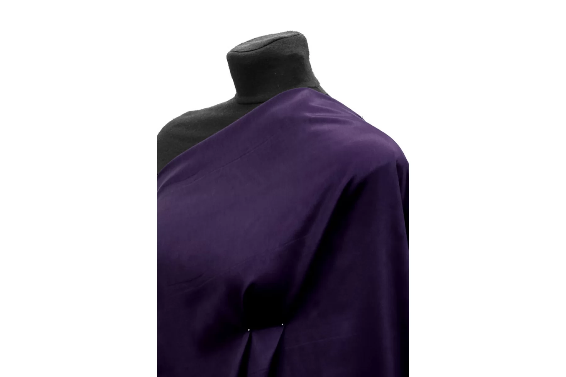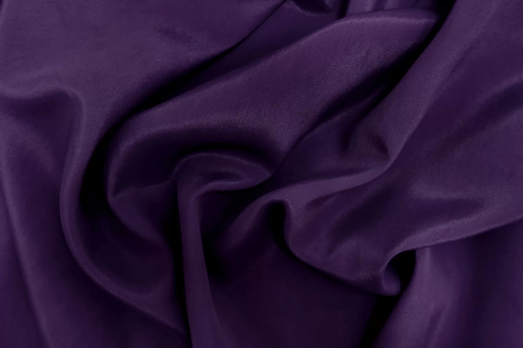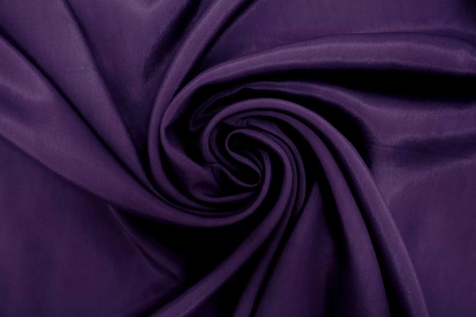 На отрезе в 20 см. от кромки белые пятна! Плательно-блузочный по плотности, крепдешин из шёлка с ацетатом в тёмном фиолетово-сливовом оттенке. Присутствует муарный эффект. Тактильно слегка шероховатый, легкий и воздушный. Не тянется. Красив в своей пластике и в складках. Немного просвечивает в один слой. Отлично подойдет на платья, юбки, туники и блузки. Уход - деликатный.