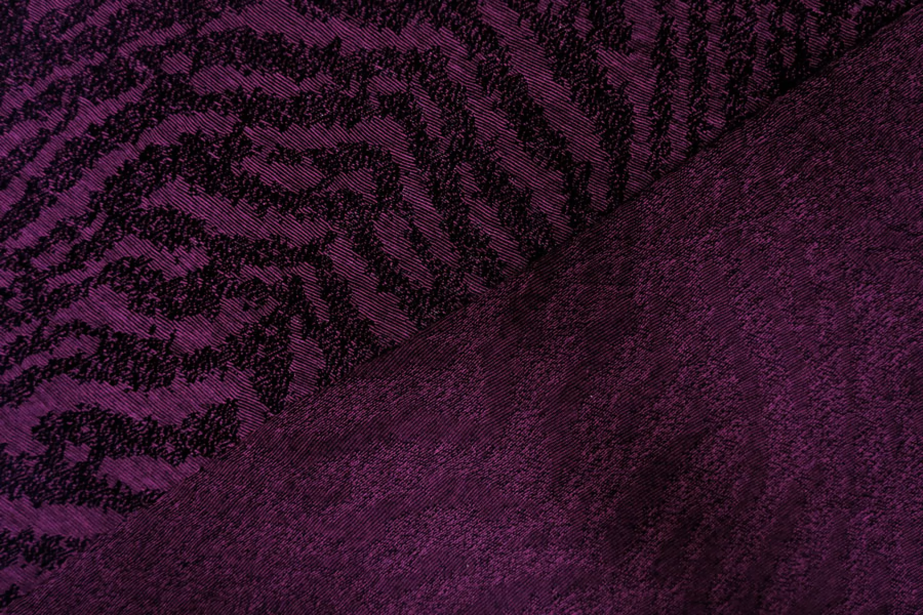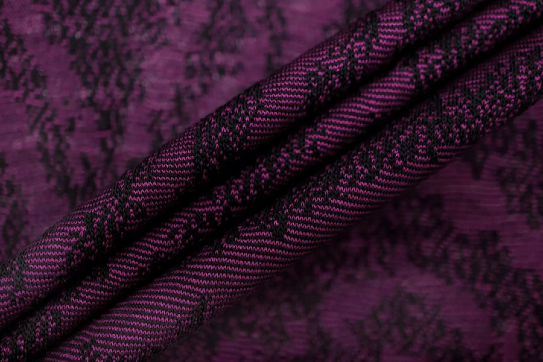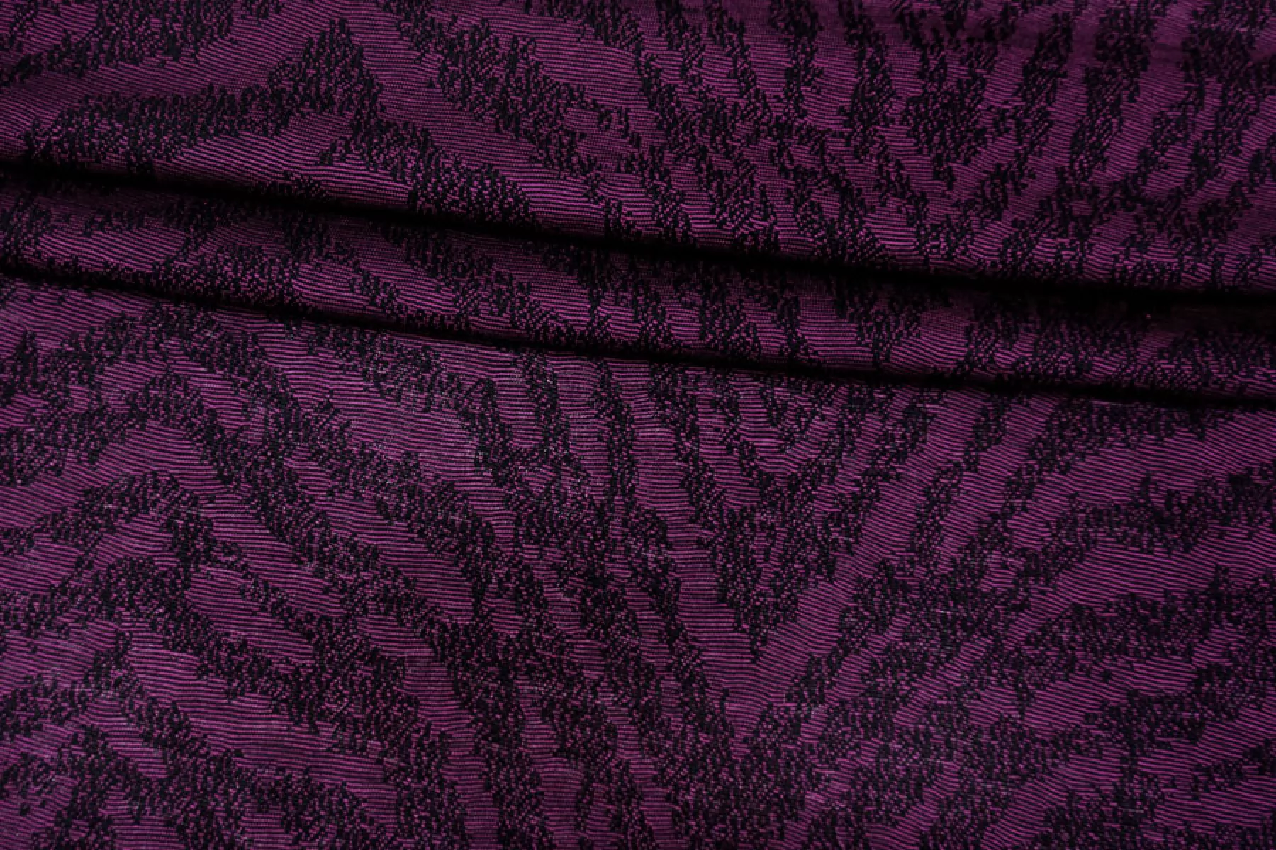 На отрезе мелкие дырочки! Тонкий трикотаж из шерсти с хлопоком, узор фактурный волнообразный из переплетения нитей черного и сливового оттенка. По плетению кулирная гладь. Мягкий, приятный, немного чувствуется фактура. Не колется. Трикотаж просвечивает, пластичный, эластичный. Подойдет для пошива майки, футболки, топа, тонкой водолазки. Уход деликатный.