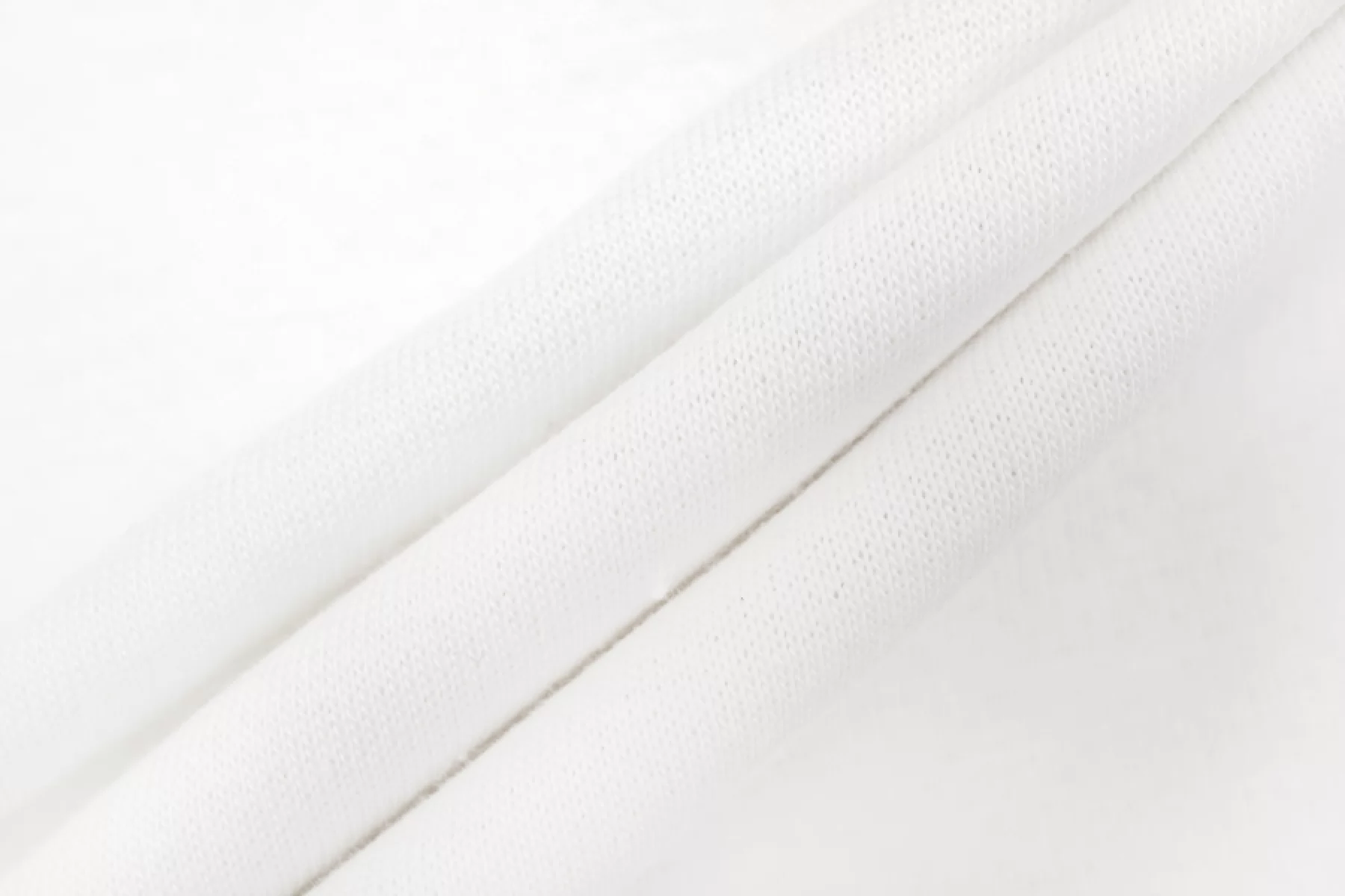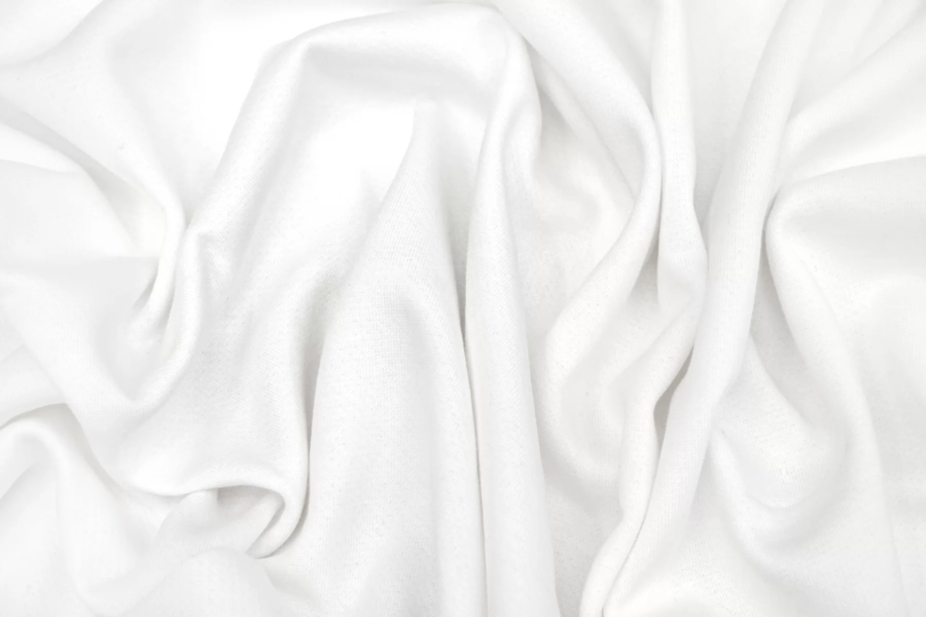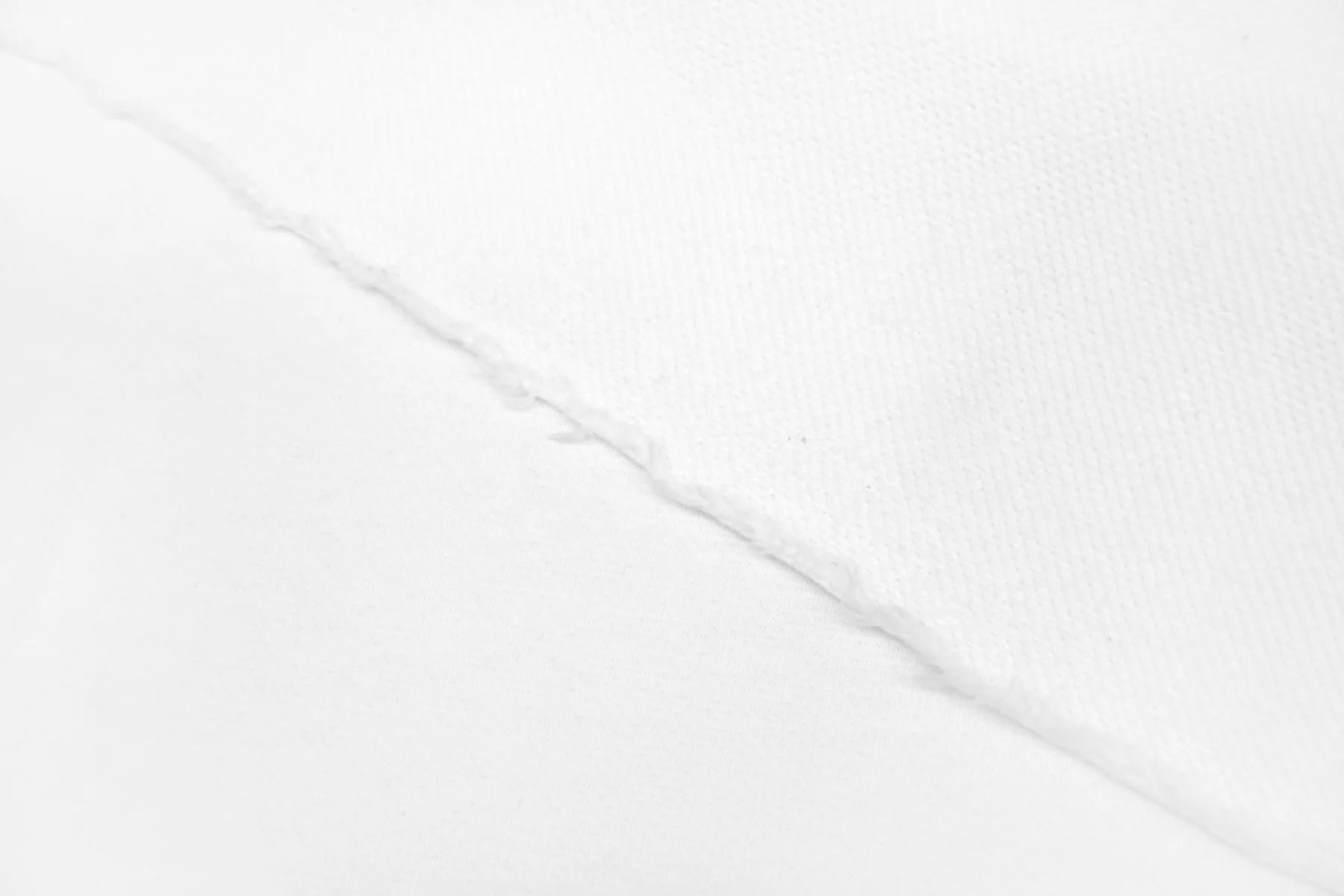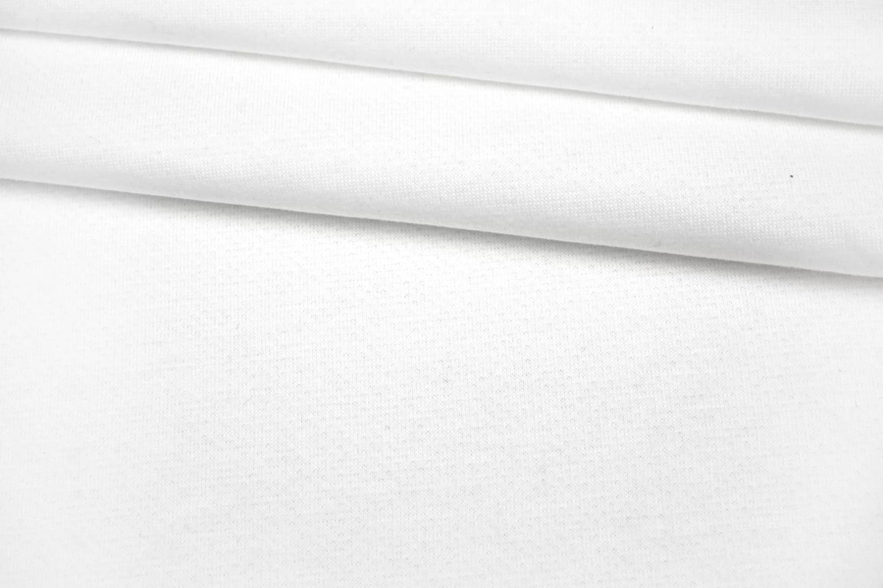 На отрезе загрязнения и следы от скотча! Трикотаж-футер 3-х нитка из хлопка белого цвета, изнаночный слой в петельку тоже из хлопка. Лицевая сторона тактильно приятная и гладкая. Футер слегка просвечивает. Материал натурального состава, поэтому дышащий, что делает его комфортным в носке. Подойдет для пошива худи, свитшота, платья, штанов и другой одежды в спортивном стиле.