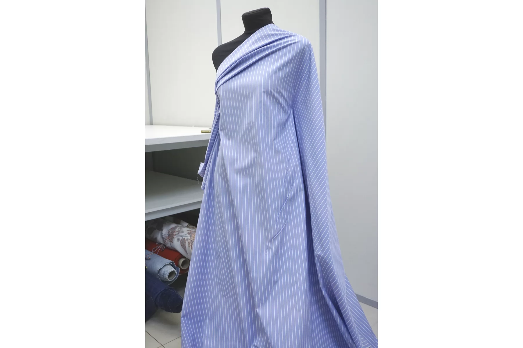 ЦЕНА УКАЗАНА ЗА ОТРЕЗ! (При заказе в метраже указывать 1) Итальянский хлопок от ALBINI рубашечной плотности, в бело-голубую полоску (проходит параллельно кромке) с вареным эффектом. Материал гладкий, мягкий, тонкий. Мнется. Минимально просвечивает силуэт в один слой, не тянется. Пластичный но при этом держит форму. Прекрасный вариант на рубашки, юбки, платья. Материал дает усадку.