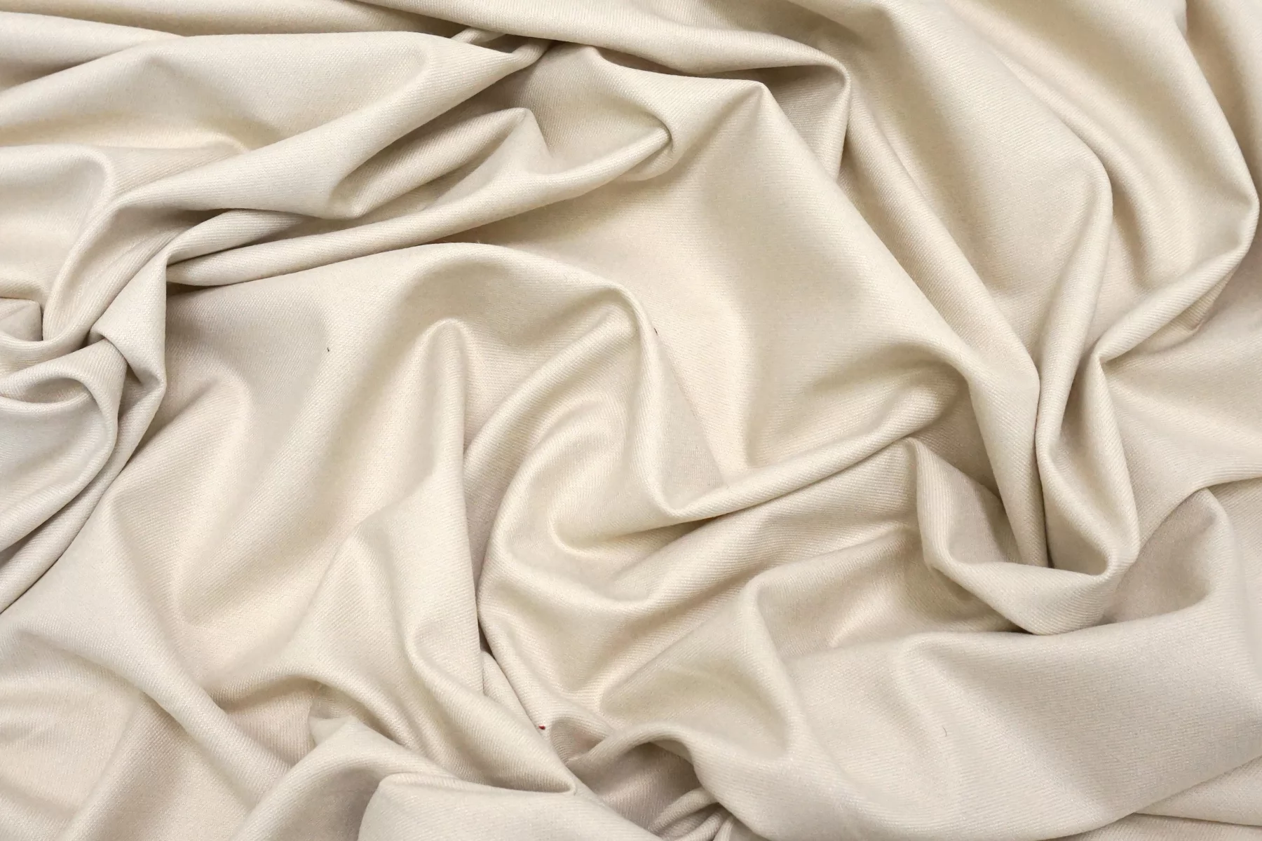 На отрезе загрязнения! Костюмно-плательная фланель поливискозная от бренда Max Mara, очень светлого молочно-бежевого цвета. Пластичная, мягкая и приятная тактильно. Не мнется. Не просвечивает. Хорошо пружинит за счет эластана. Поливискоза отличается хорошей износостойкостью и прочностью. Уход деликатный. Шьем платья, тёплые рубашки или шорты, брюки, костюмы мягкой формы.