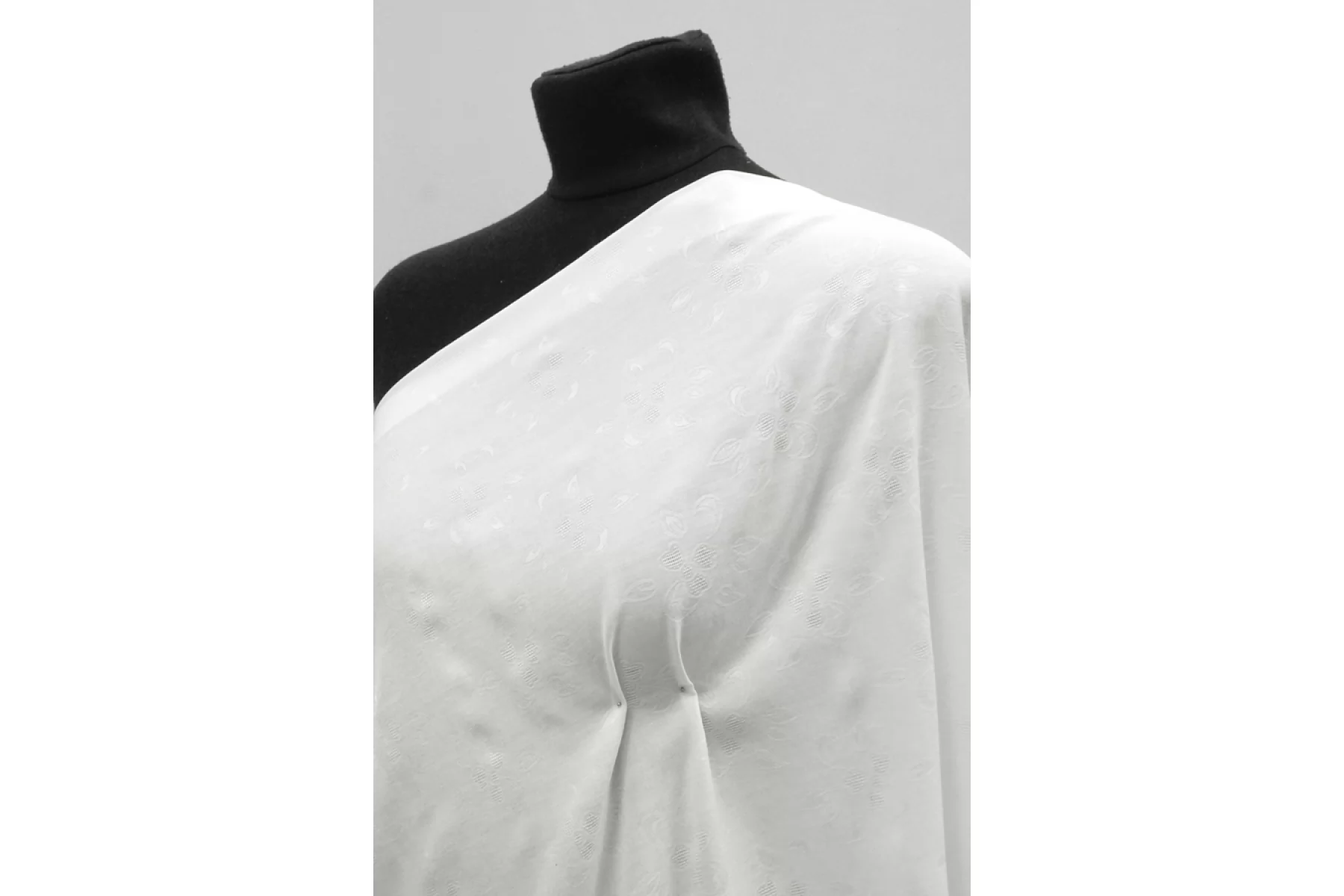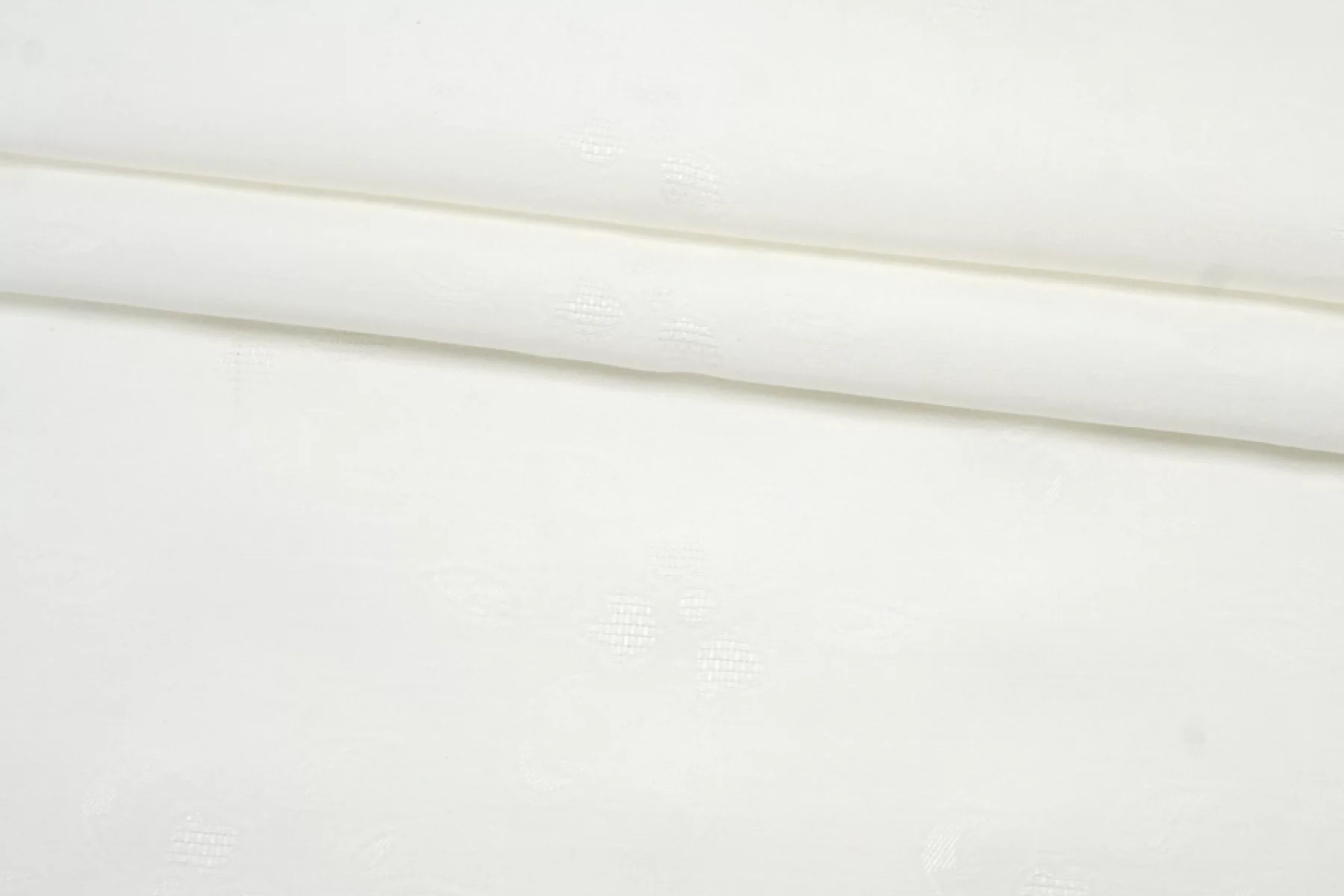 Внимание! Весь рулон в пыльных загрязнениях и пятнах каждые 30-40 см, возможно отстирается см. фото. Шикарного качества рубашечный жаккардовый хлопок с добавлением вискозы с выработкой в виде цветочного узора в молочном оттенке. Мягкий, гладкий, даже шелковистый наощупь. Пластичный, немножко держит форму. Просвечивает, не тянется. Сминается. Идеальный вариант для рубашки, сарафана. Учитывайте усадку материала на 7-10%.