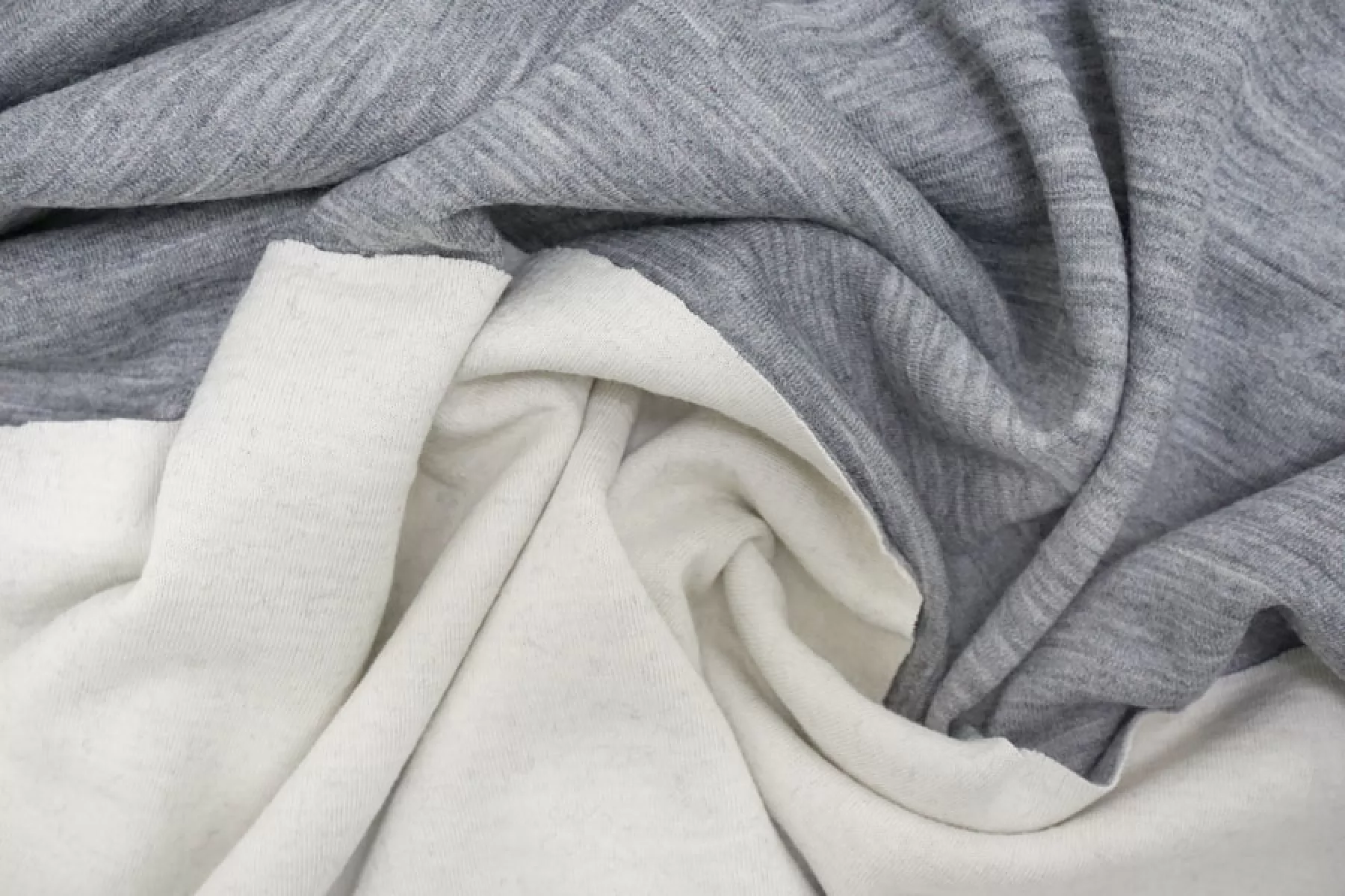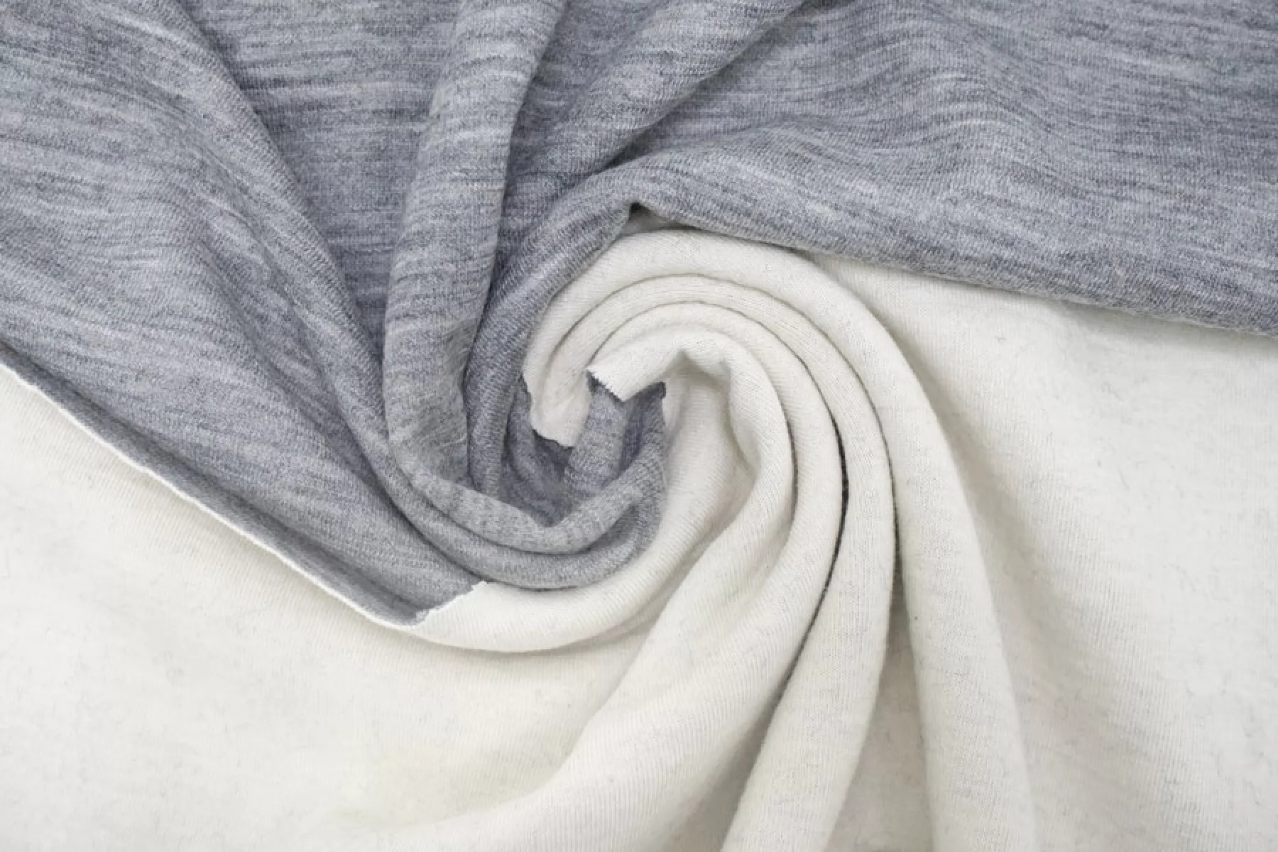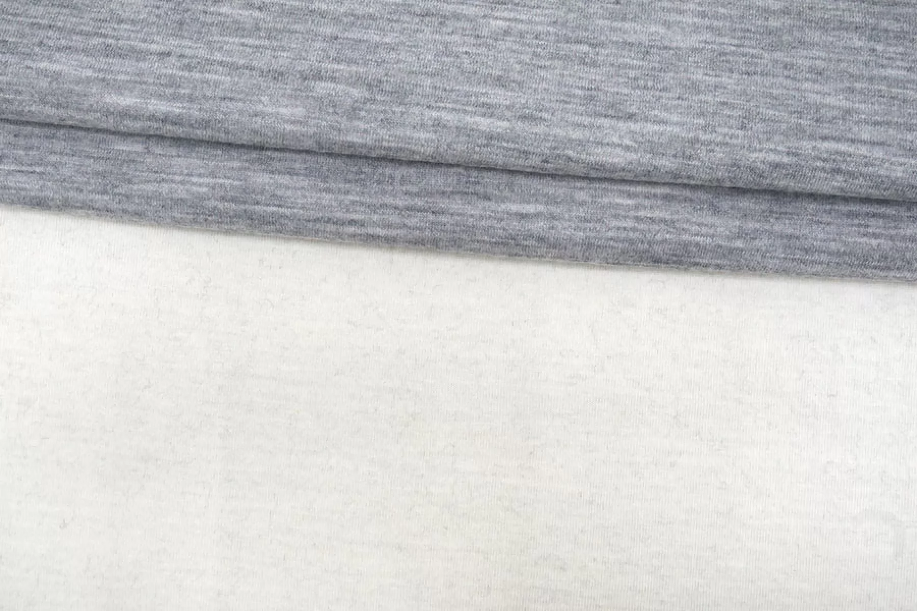 ЦЕНА УКАЗАНА ЗА ОТРЕЗ! (При заказе в метраже указывать 1) Отличный трикотаж двусторонний от FENDI, одна сторона хлопковая, другая шерстяная. Серого цвета - шерсть, молочного - хлопок. Плетение достаточно плотное, не просвечивает. Хорошо тянется. Гладкий и приятный наощупь. Форму немного держит. Подойдет для пошива майки, футболки, лонгслива, можно использовать в качестве подклада, греющей нижней юбки, водолазки. Уход деликатный.