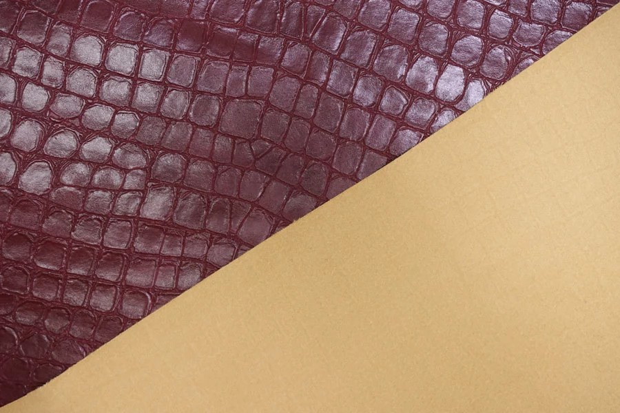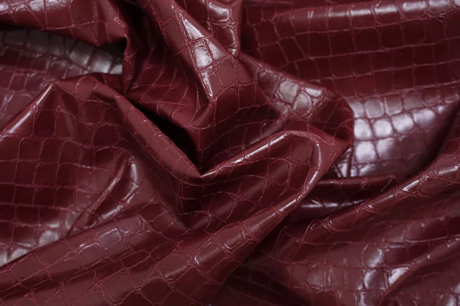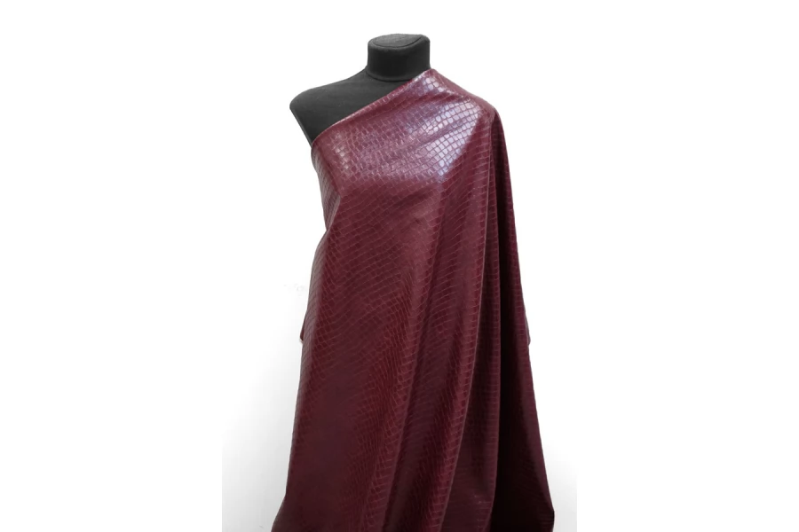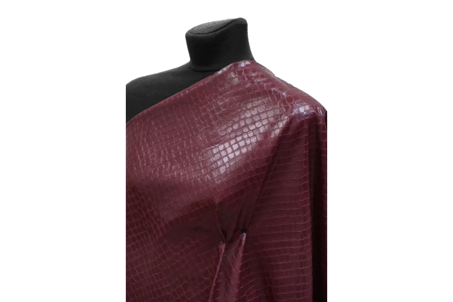 ЦЕНА УКАЗАНА ЗА ОТРЕЗ! (При заказе в метраже указывать 1) Итальянская фактурная экокожа в красивом, насыщенном оттенке марсала с тиснением под кожу крокодила. Изнанка - бежевый трикотаж, с приятным утеплением как у фланели. Приятная тактильно, тянется, не просвечивает, пластичная но при этом держит форму. Подойдет для пошива платья, плотных брюк, юбки, куртки, плаща, пальто-рубашки.