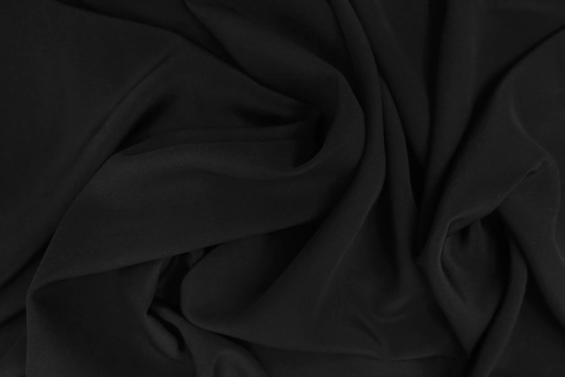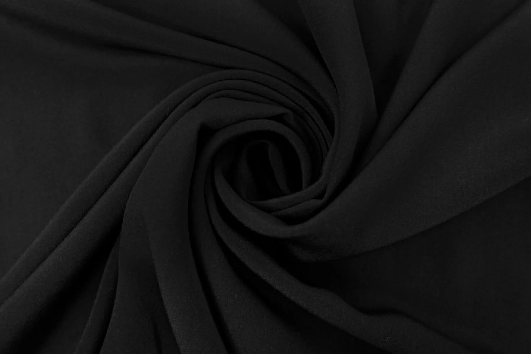 ЦЕНА УКАЗАНА ЗА ОТРЕЗ! (При заказе в метраже указывать 1) Великолепный итальянский шелковый крепдешин FENDI в классическом черном цвете. Тактильно приятный, очень мягкий, нежный и гладкий. Просвечивает силуэт на просвет. Тонкий, легкий, летящий, струящийся. Слегка сминается. Не тянется. С красивым шелковым лоском. Прекрасный вариант на платья, юбки, блузки и не только. При необходимости используйте подкладочный материал. Уход за шелком деликатный.