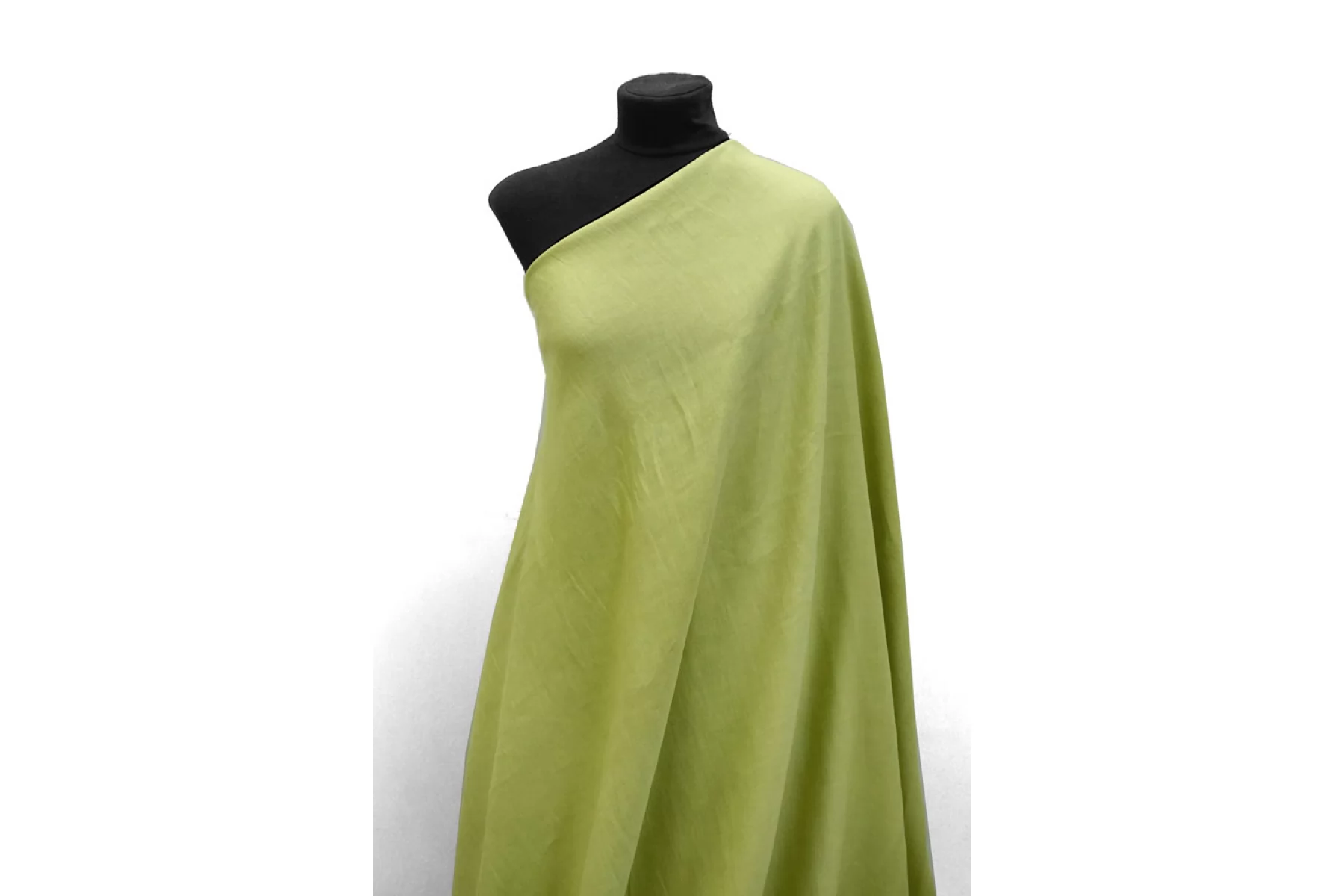 ЦЕНА УКАЗАНА ЗА ОТРЕЗ! (При заказе в метраже указывать ) Итальянский костюмно-плательный лён с добавлением вискозы в интересном салатовом оттенке. Тактильно мягкий и приятный, слегка суховатый. Плотный. Форм держит. Не просвечивает. Сминается. Не тянется. Идеально подойдет на летние дышащие костюмы, платья, брюки, накидки. Учитывайте возможную усадку.