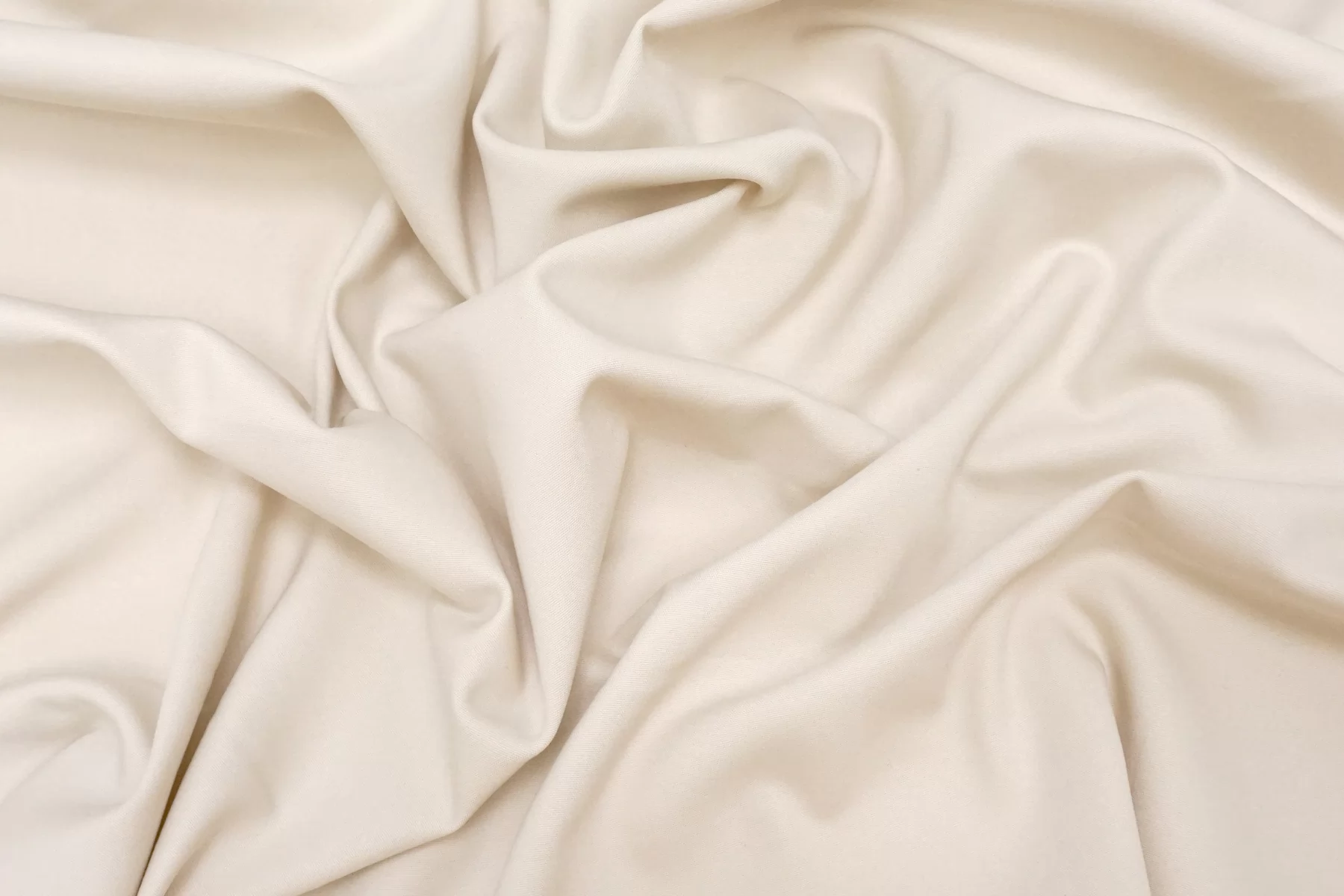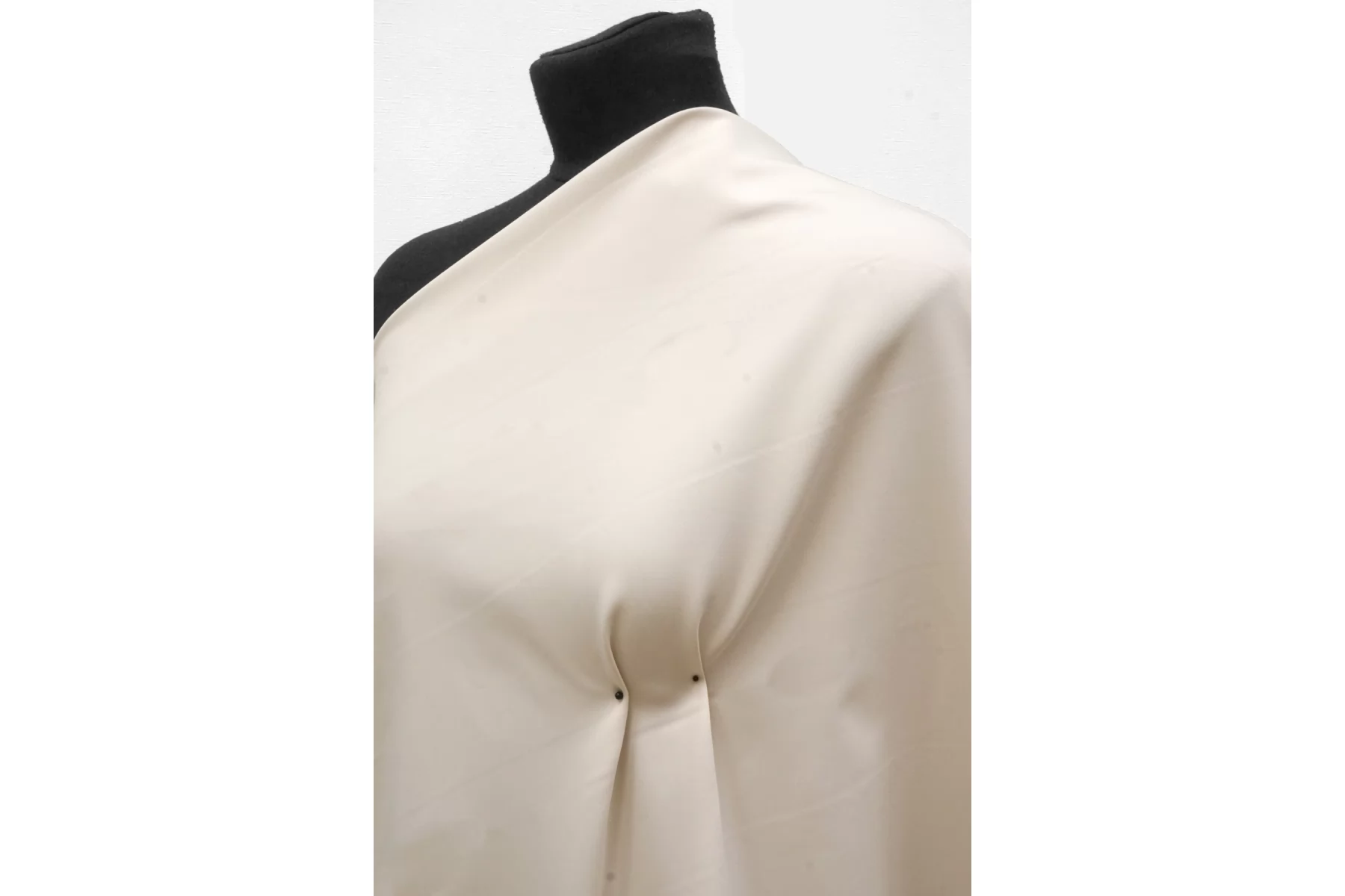 ЦЕНА УКАЗАНА ЗА ОТРЕЗ! (При заказе в метраже указывать 1) Отличного качества поликоттон, очень светлого бежевого цвета (можно еще описать как бежевый экрю), полотняного плетения от бренда Max Mara. Тактильно очень приятный, мягкий, гладкий. Достаточно плотный, хорошо тянется. Минимально просвечивает силуэт. Немного мнется. Упругая пластика, форму держит. Шьем костюмы, платья, юбки, брюки и не только.