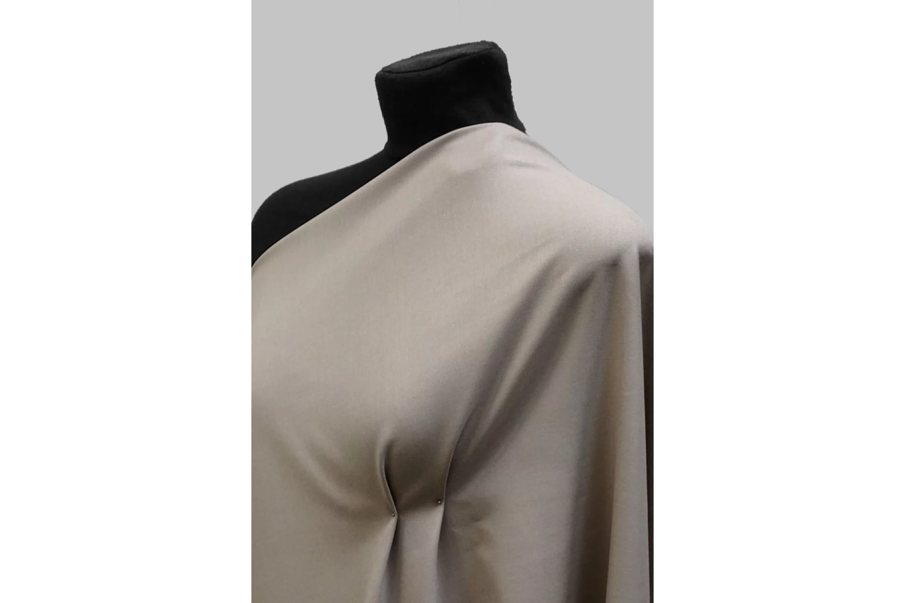 На отрезе встречаются уплотнения нити! Костюмно-плательная поливискоза от бренда Max Mara в красивом, светлом серо-бежевом оттенке (без желтизны), диагонального плетения. Пластичная, мягкая и приятная тактильно. Не мнется. Не просвечивает. Хорошо пружинит за счет эластана. Поливискоза отличается хорошей износостойкостью и прочностью. Уход деликатный. Шьем платья, брюки, юбки, костюмы мягкой формы.