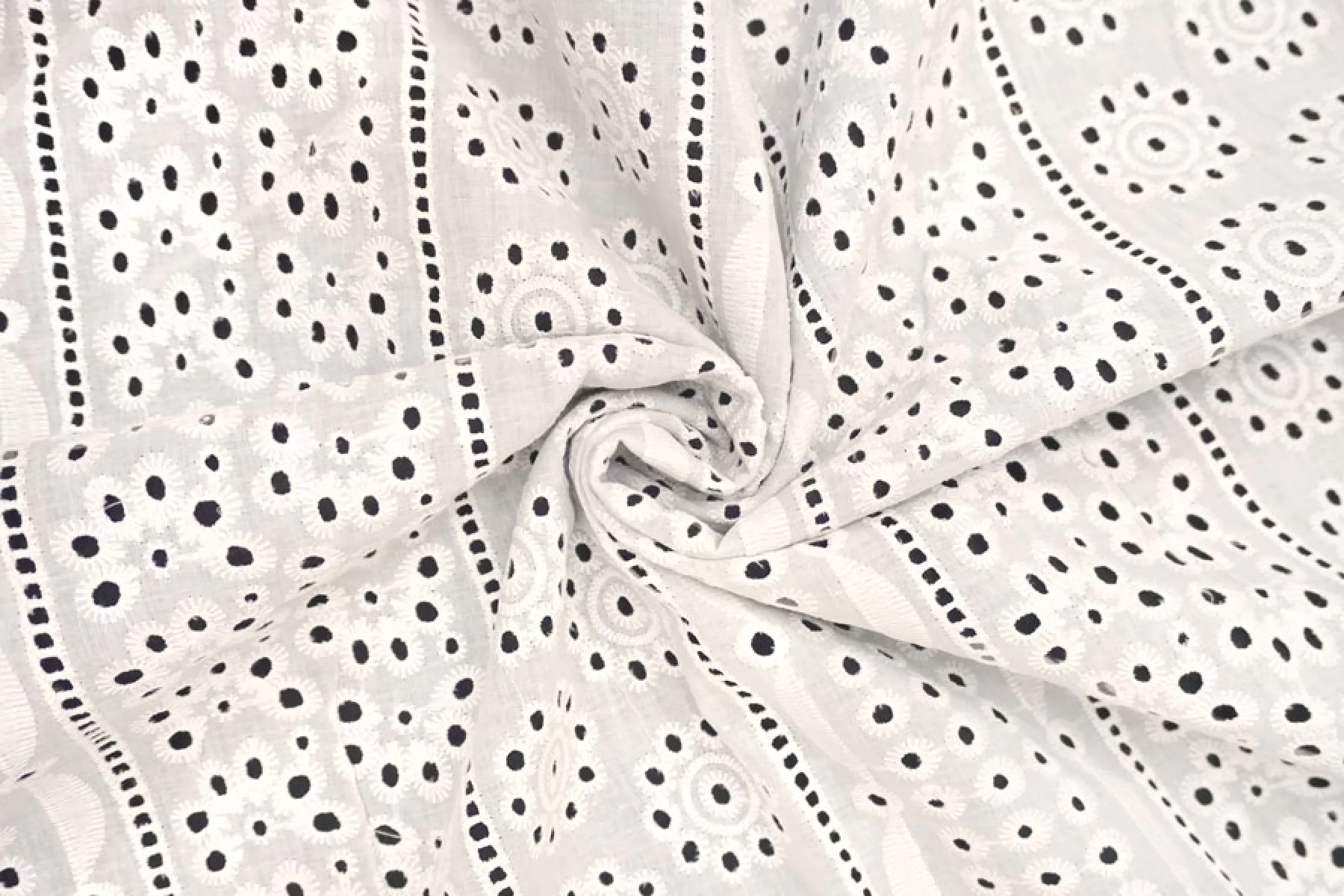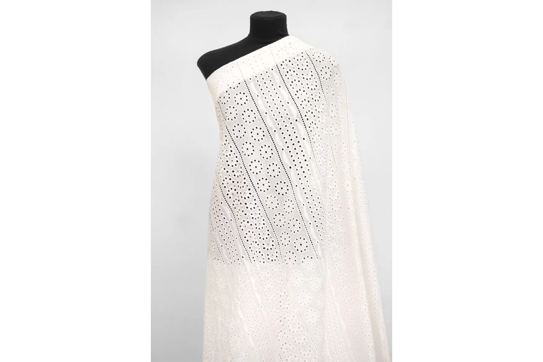 ОТРЕЗ 0,8 М Шитье хлопковое молочно-белое Цветочные узоры IDT (10) 28012456-1