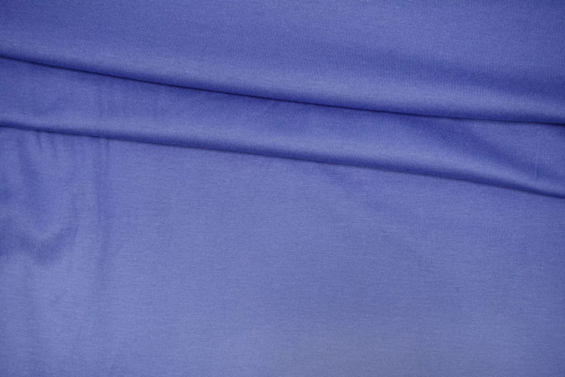 ЦЕНА УКАЗАНА ЗА ОТРЕЗ! (При заказе в метраже указывать 1) Хлопковый трикотаж, кулирная гладь, в сиренево-синем цвете. Тянется за счет плетения, просвечивает средне. Тактильно очень приятный, гладкий. Пластичный, форму практически не держит. Очень комфортный к телу. Можно использовать для пошива маек, футболок, платьев, туник и другого.