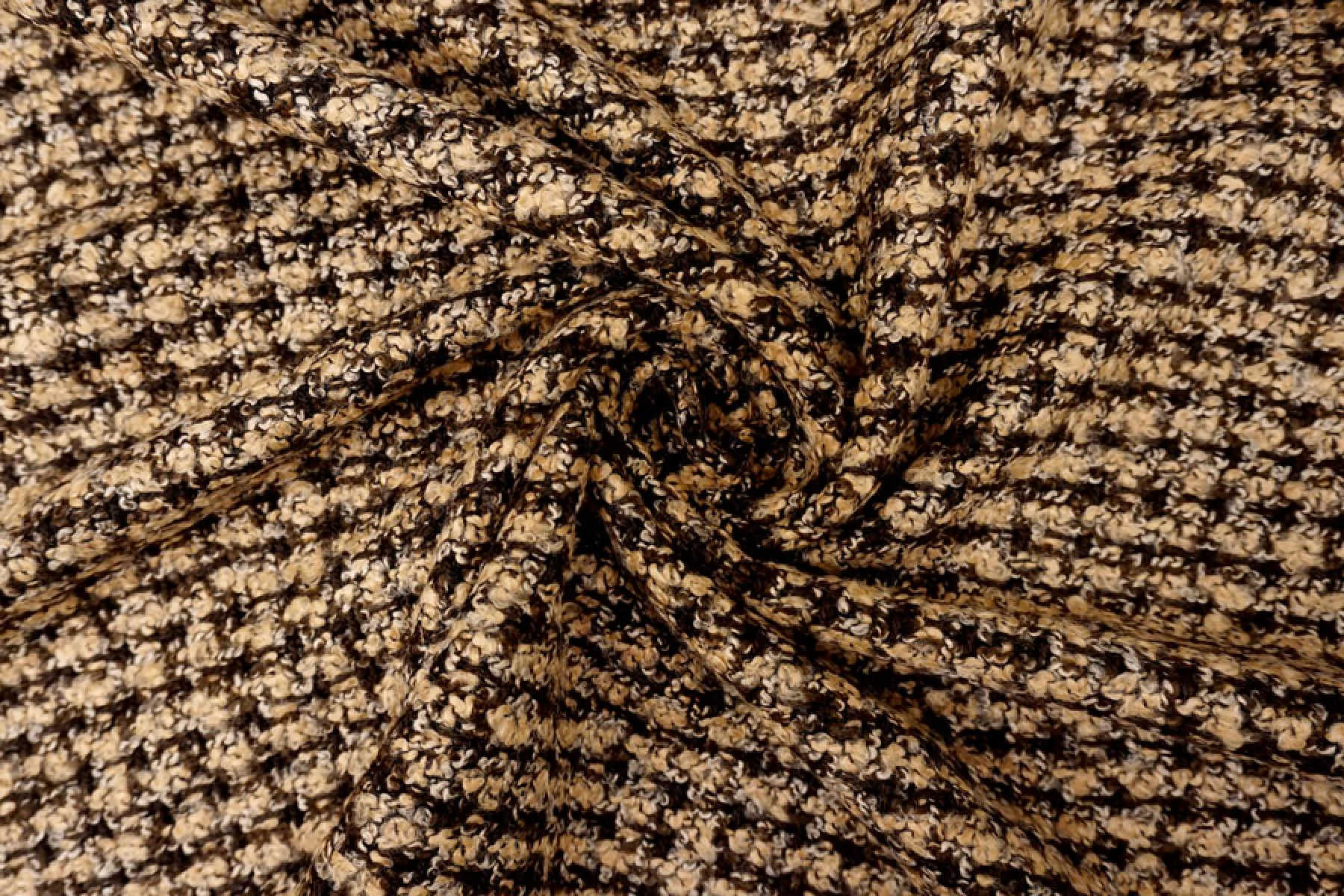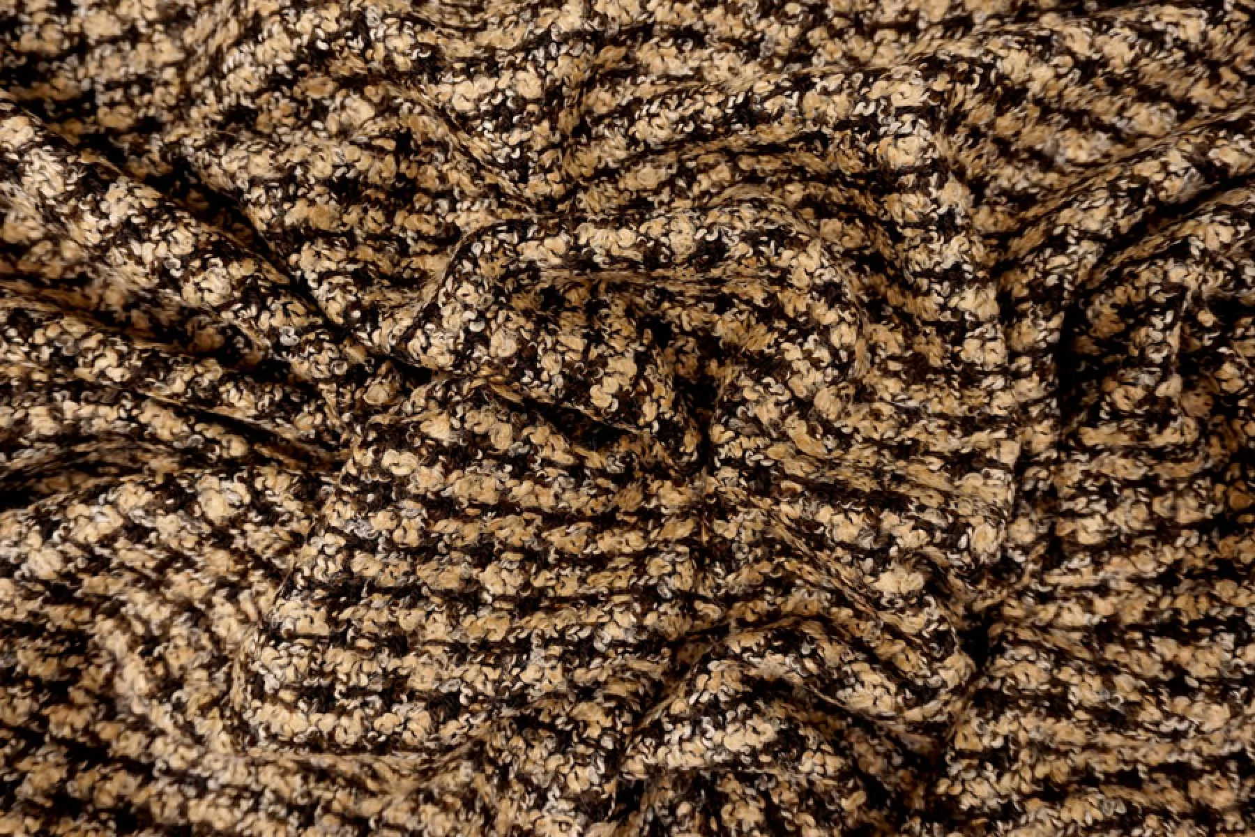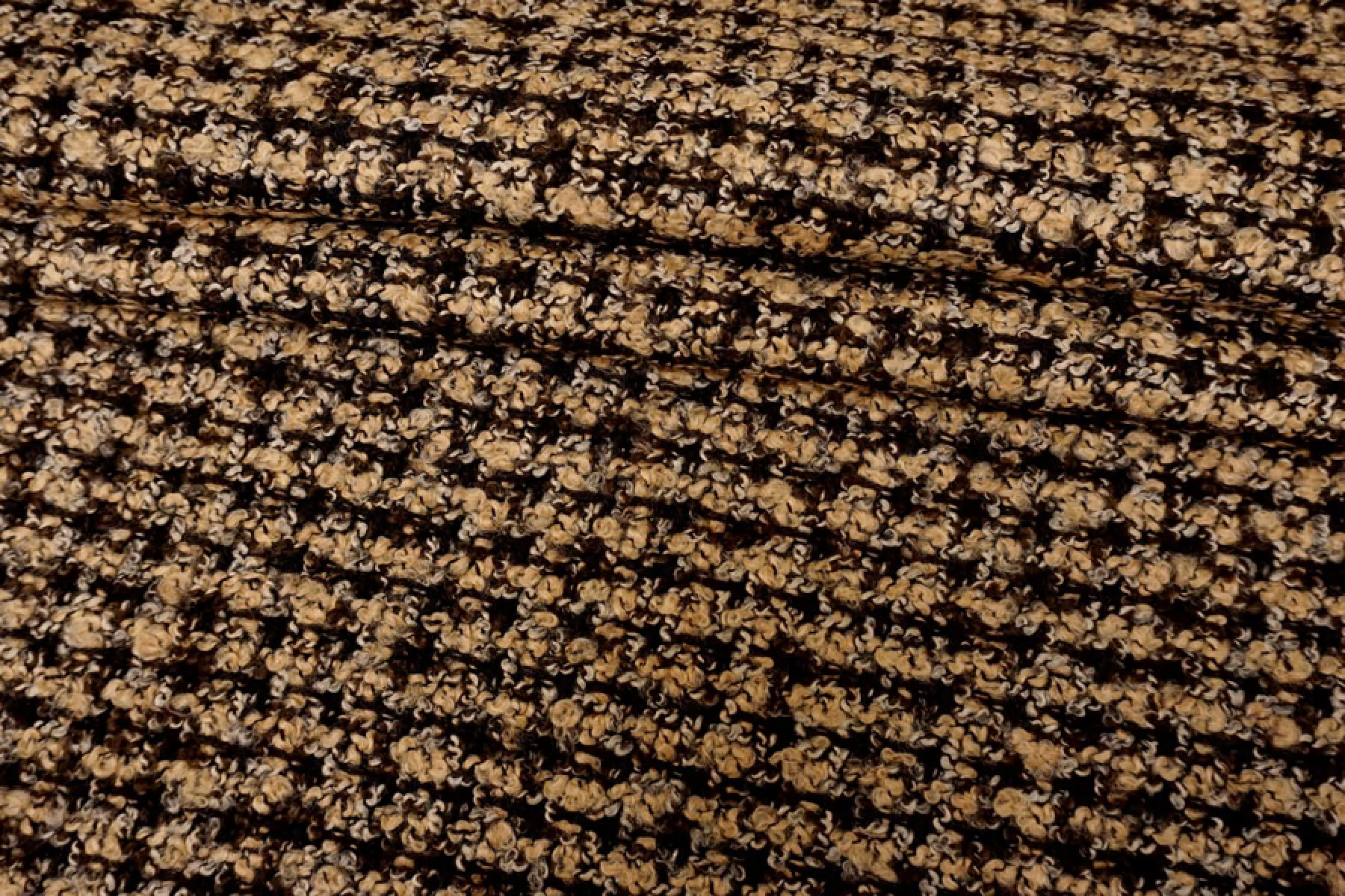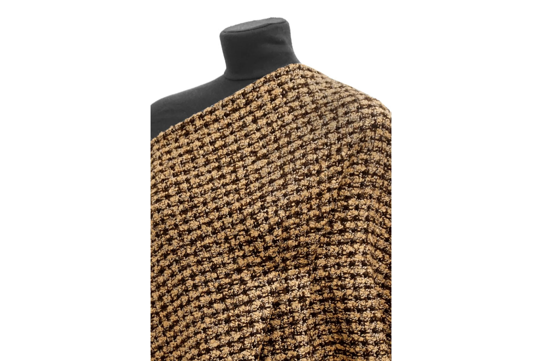 ЦЕНА УКАЗАНА ЗА ОТРЕЗ! (При заказе в метраже указывать 1) Шикарны костюмный твид с шерстью в красивом бежево-коричневом оттенке. Тактильно материал приятный, лицевая сторона мягкая, изнаночная слегка жестковатая, чувствуется фактурность. Немного покалывает. Пластичный. Форму держит. Не тянется. Не просвечивает. Не мнется. Шьем костюмные варианты, жакеты, рубашки, платья и не только. Уход деликатный.