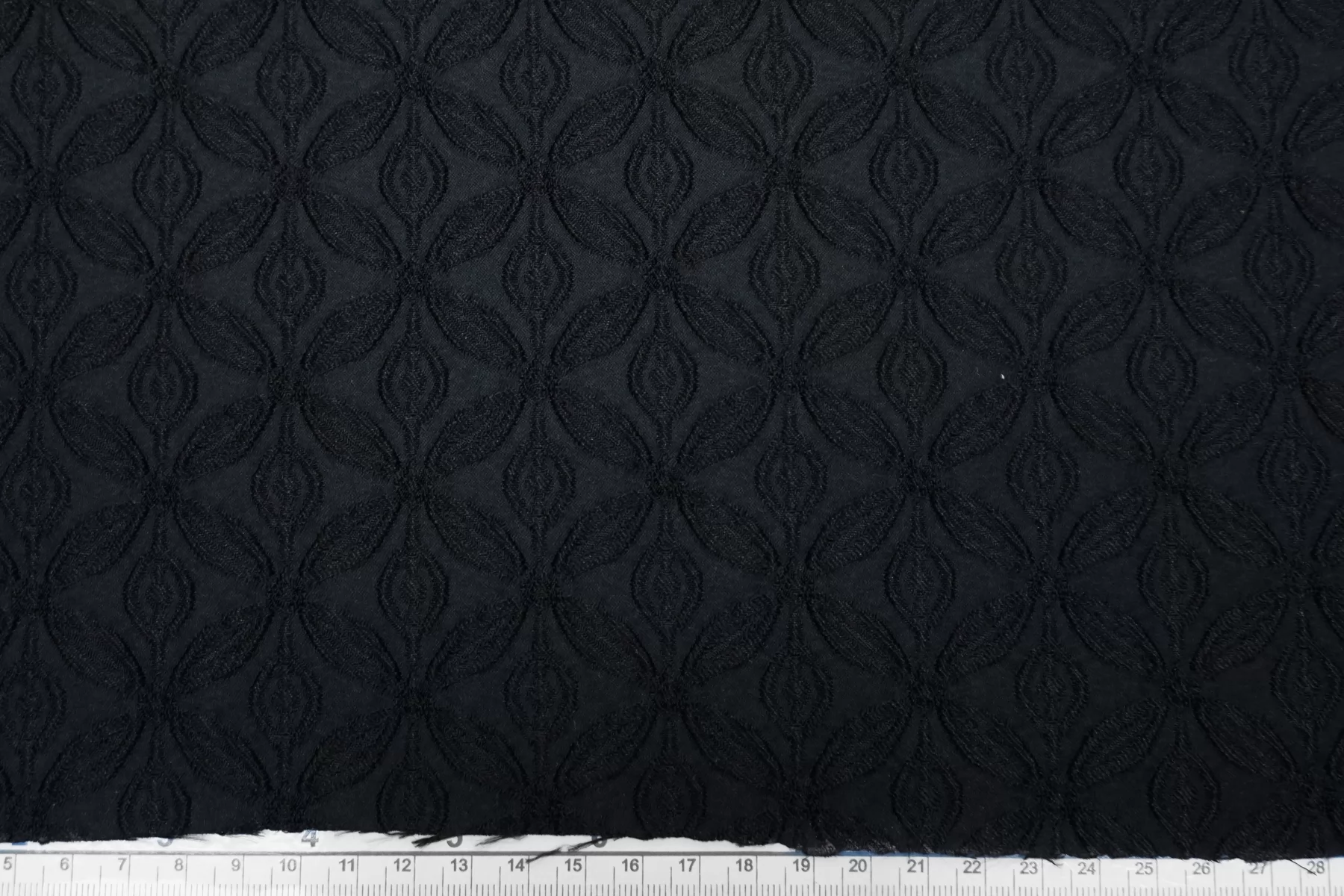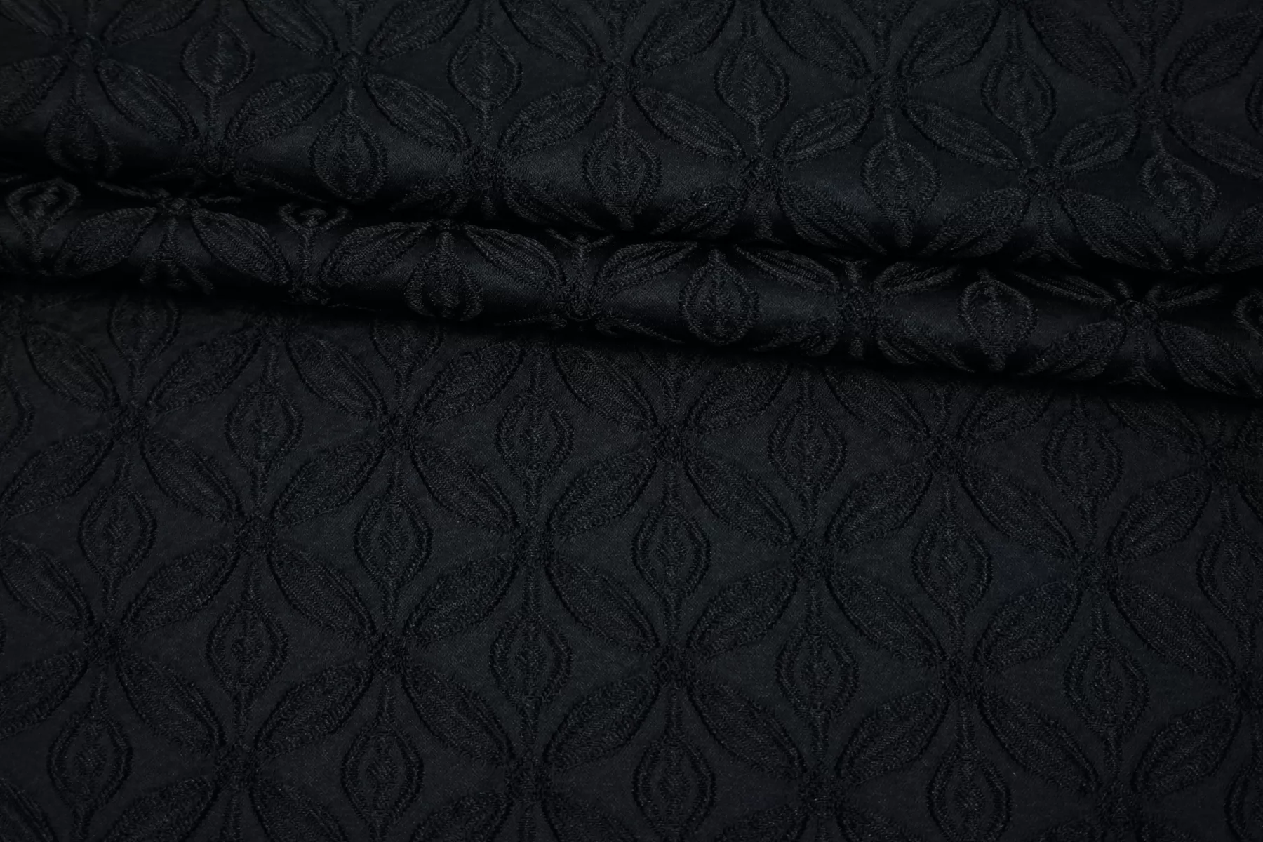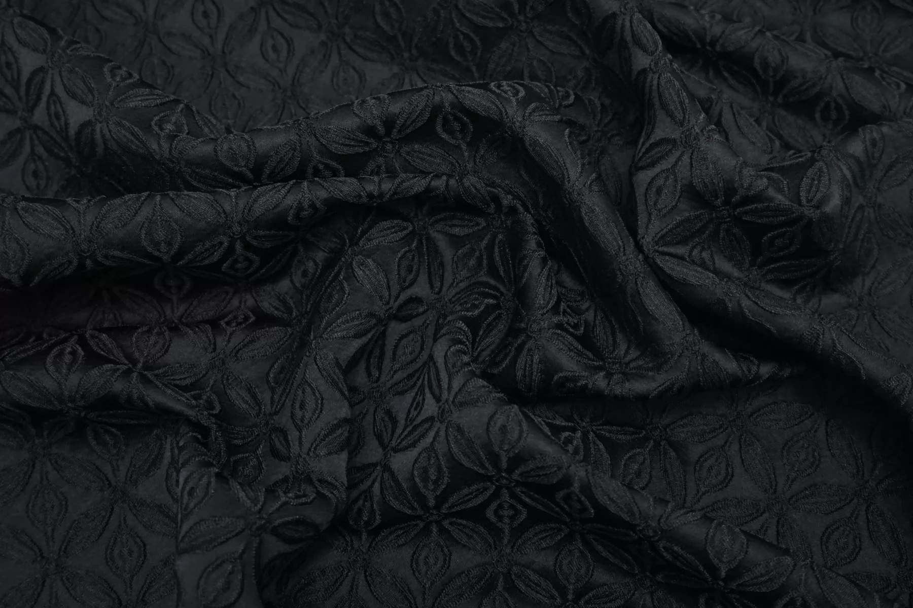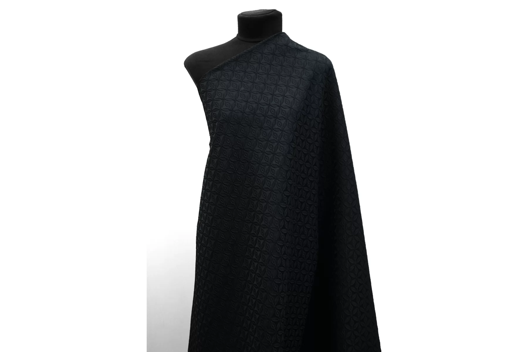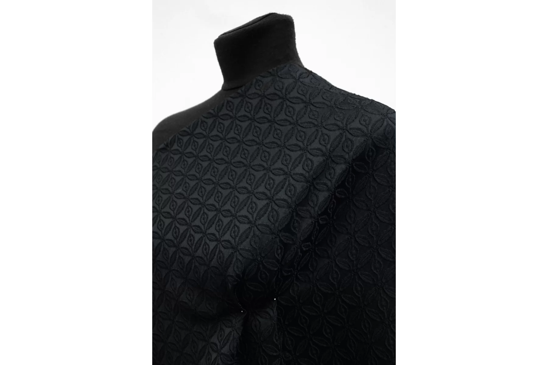 ЦЕНА УКАЗАНА ЗА ОТРЕЗ! (При заказе в метраже указывать 1) Жаккард черный костюмно-плательной плотности с выработкой цветочного орнамента среднего размера. Материал тактильно шероховатый, плотненький, но не толстый. Не тянется. Пластичный. Не просвечивает. Красиво смотрится в драпировках. Пластичный, немного держит форму. Шьем нарядные платья, юбки, мягкие жакеты.