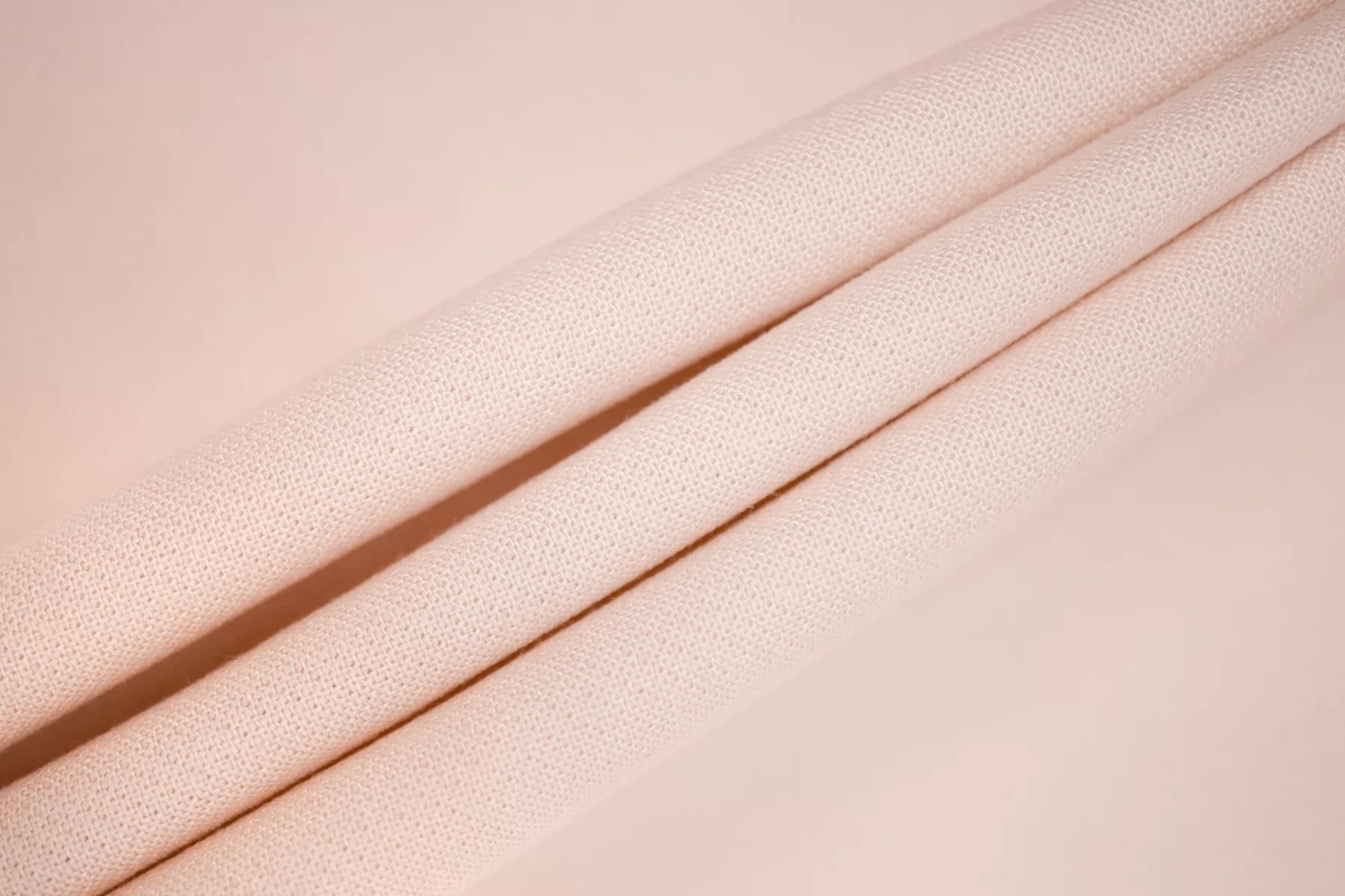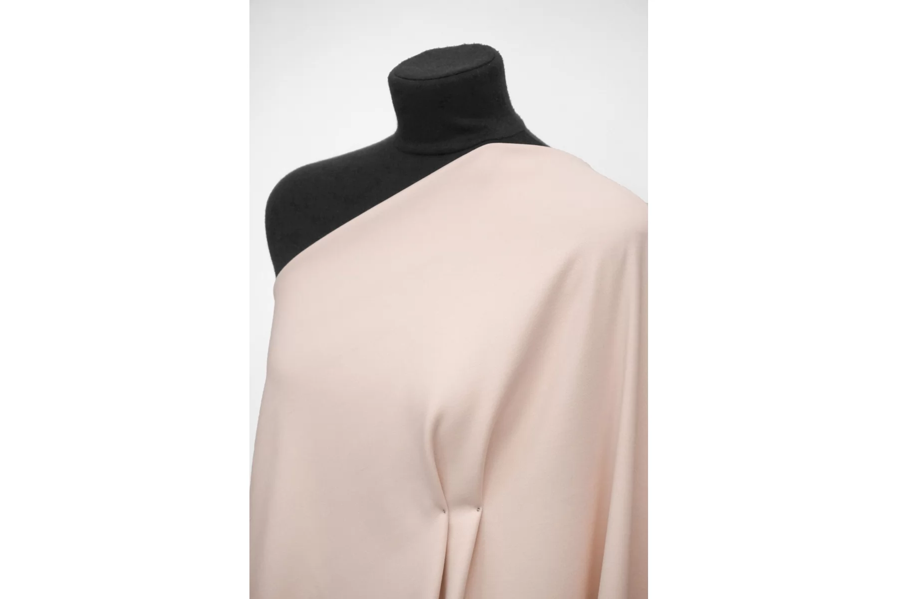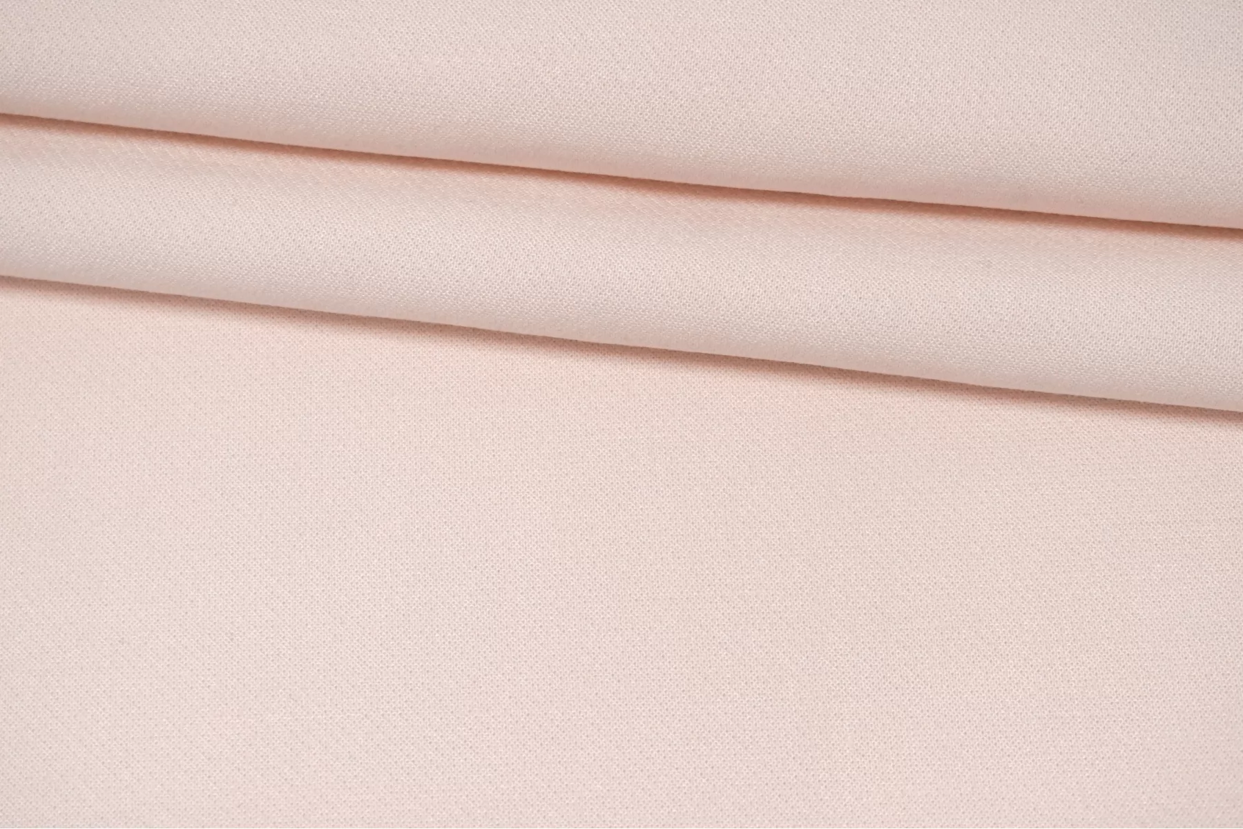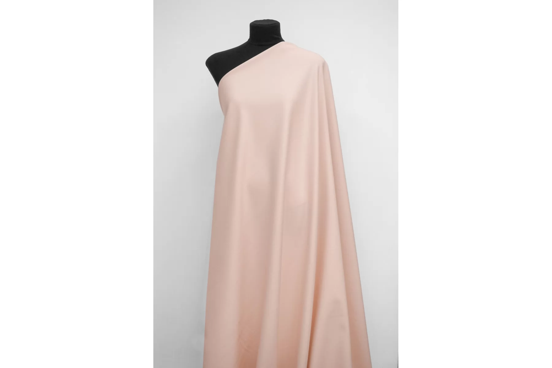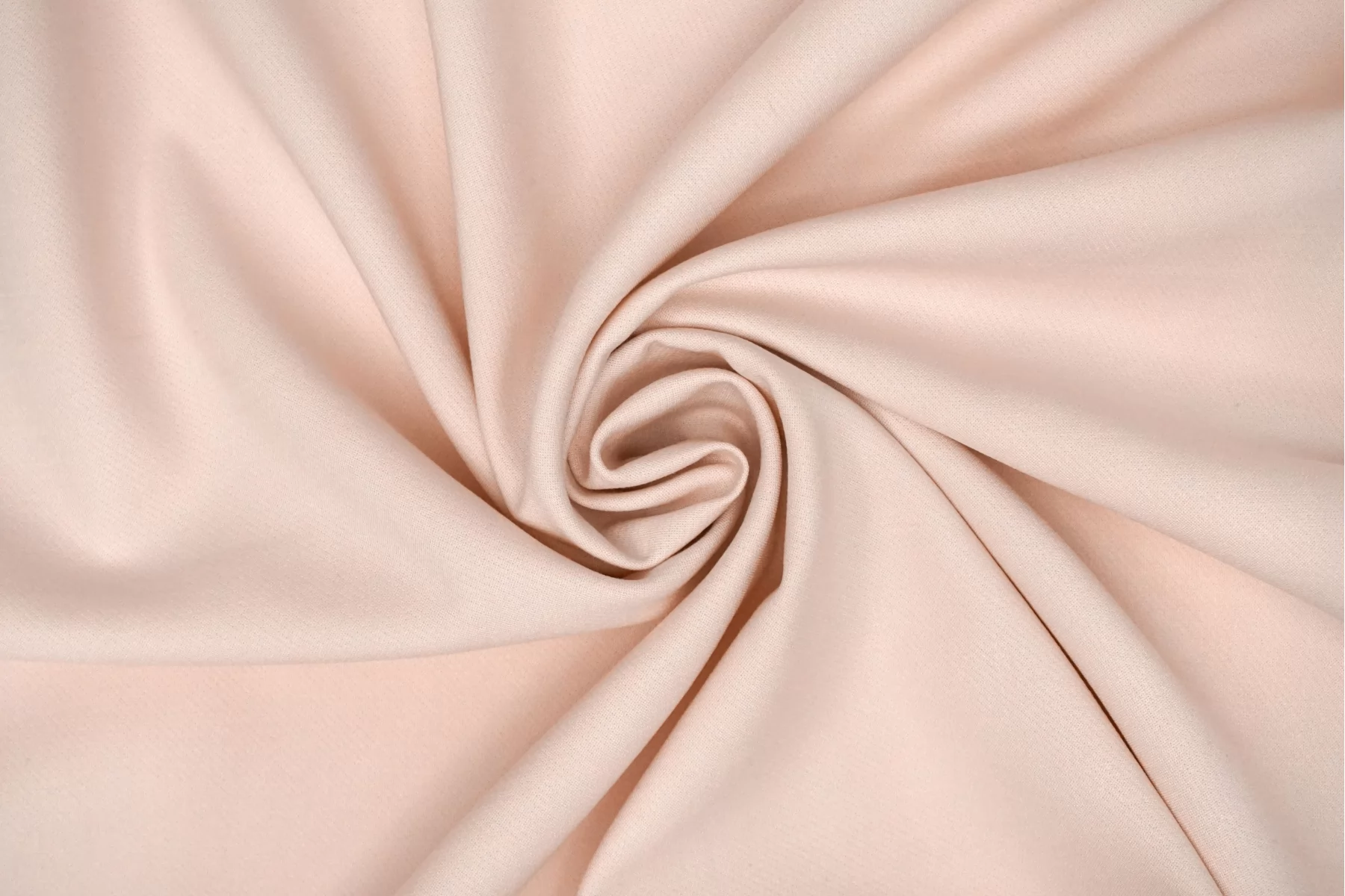 На отрезе пыльные загрязнения от хранения и вкрапления нити! Костюмная дабл вискоза с шерстью в приятном кремовом оттенк. Полотно состоит их двух тонких слоев, сшитых между собой, толщина материала примерно 1 мм. Очень приятная и мягкая тактильно ткань. Слегка шероховатая, ощущается креповость. Плотная. Не просвечивает. Хорошо и упруго, тянется за счет эластана. Пластичная. Не мнется. Хорошо драпируется, форму не держит. Уход деликатный. Вариант на костюмы, жакеты, платья, юбки и не только.